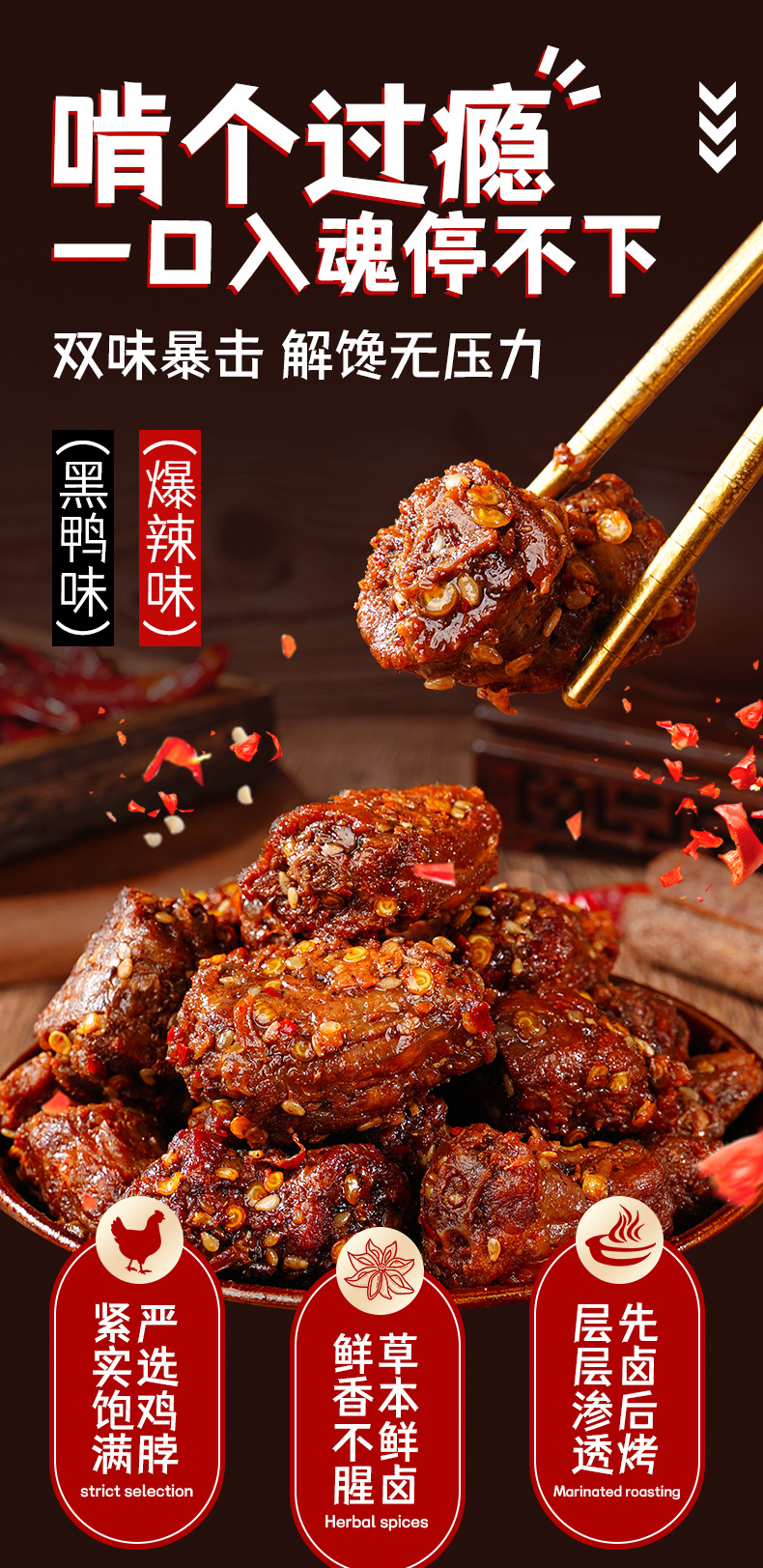 【鲜香麻辣❗️爆辣/黑鸭味烤脖】啃个过瘾「一口入魂停不下」甄选品质原料制作,肉厚有嚼劲,地道湖南味,回味悠长,卤味解馋休闲零食,纯手工追剧解馋宿舍即食小零食L