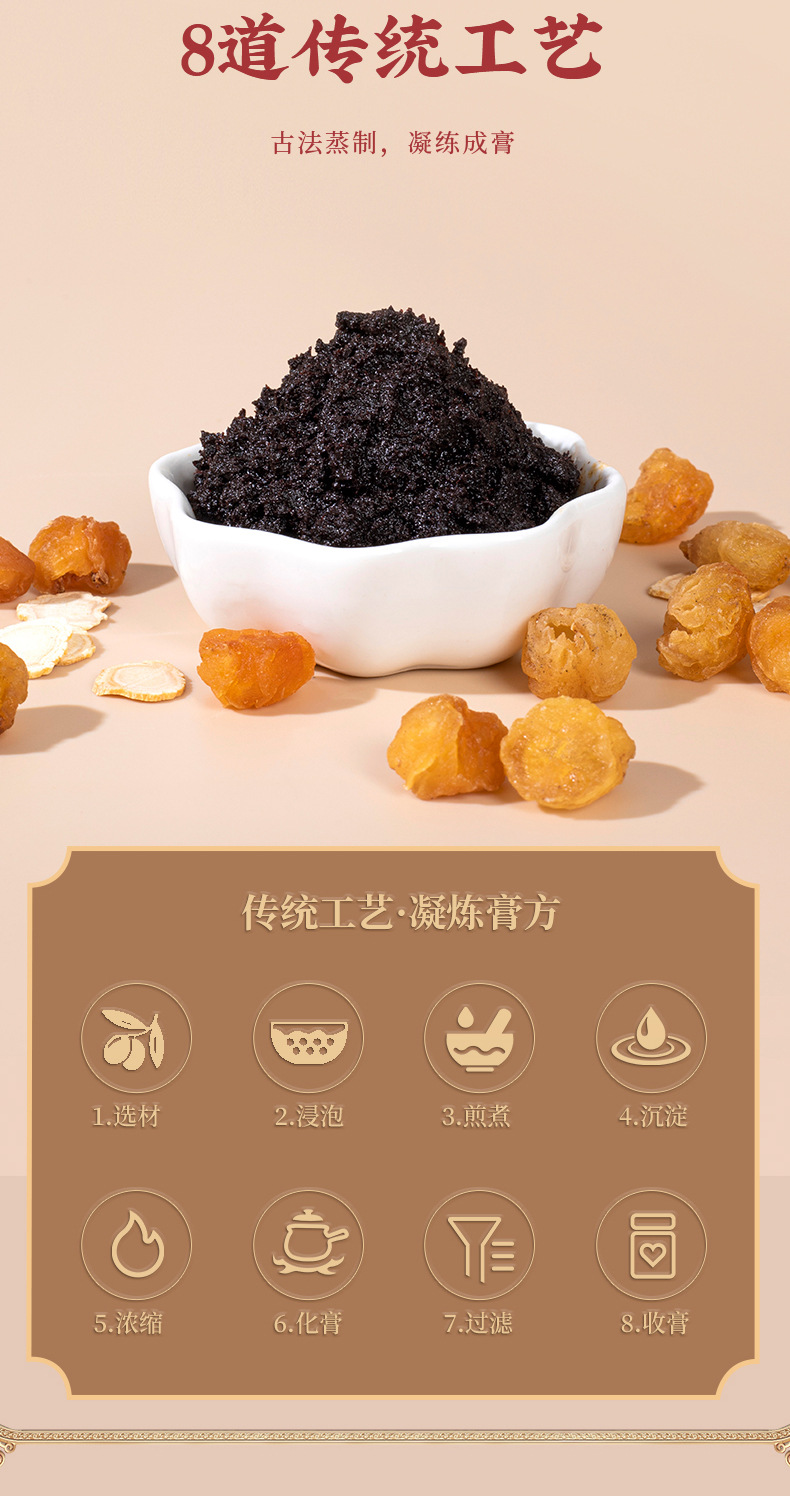 玉灵膏 古法蒸制桂圆人参龙眼肉西洋参无糖老牌子气血睡眠