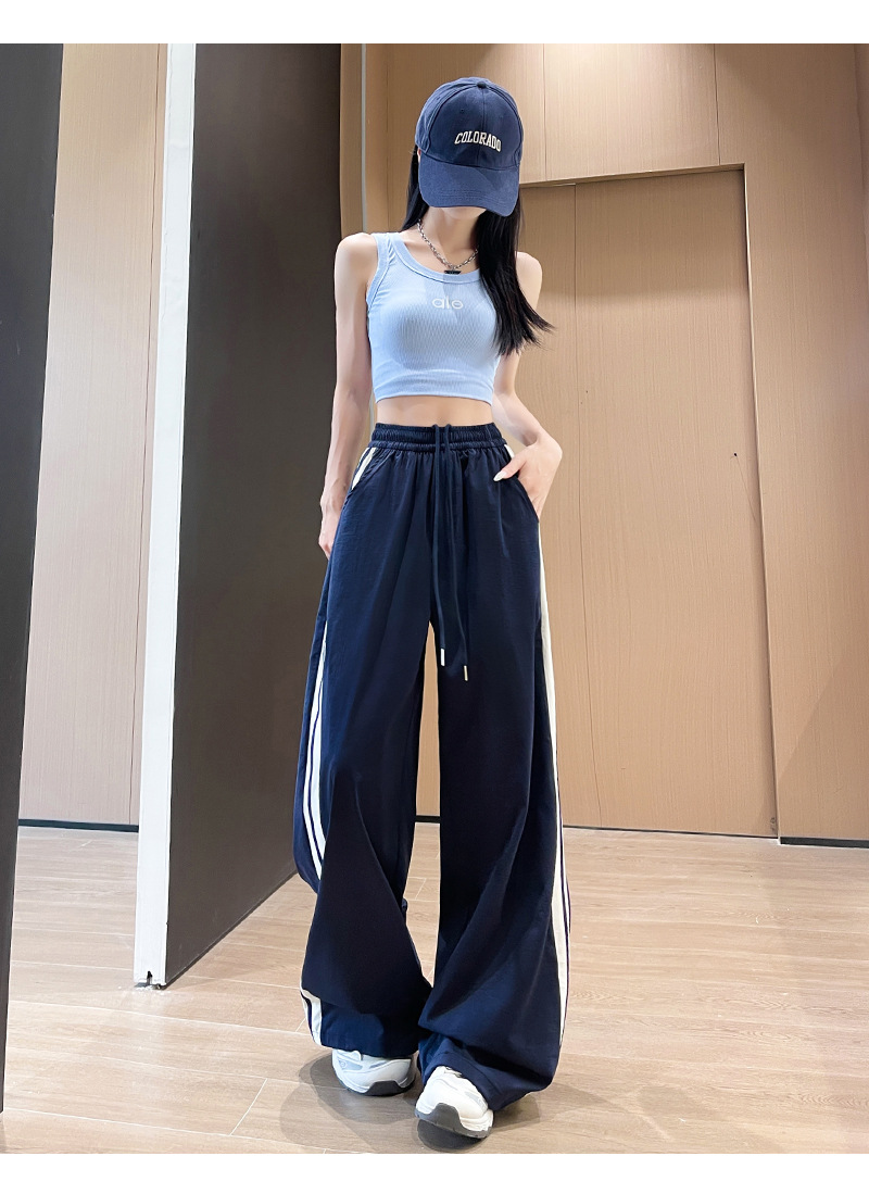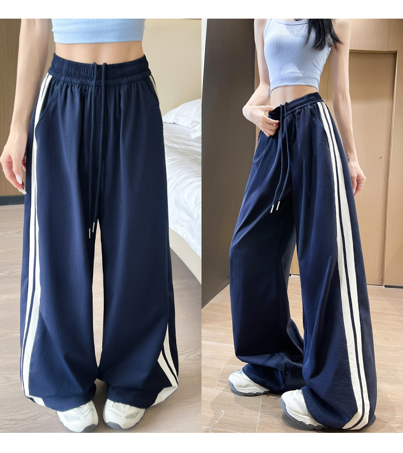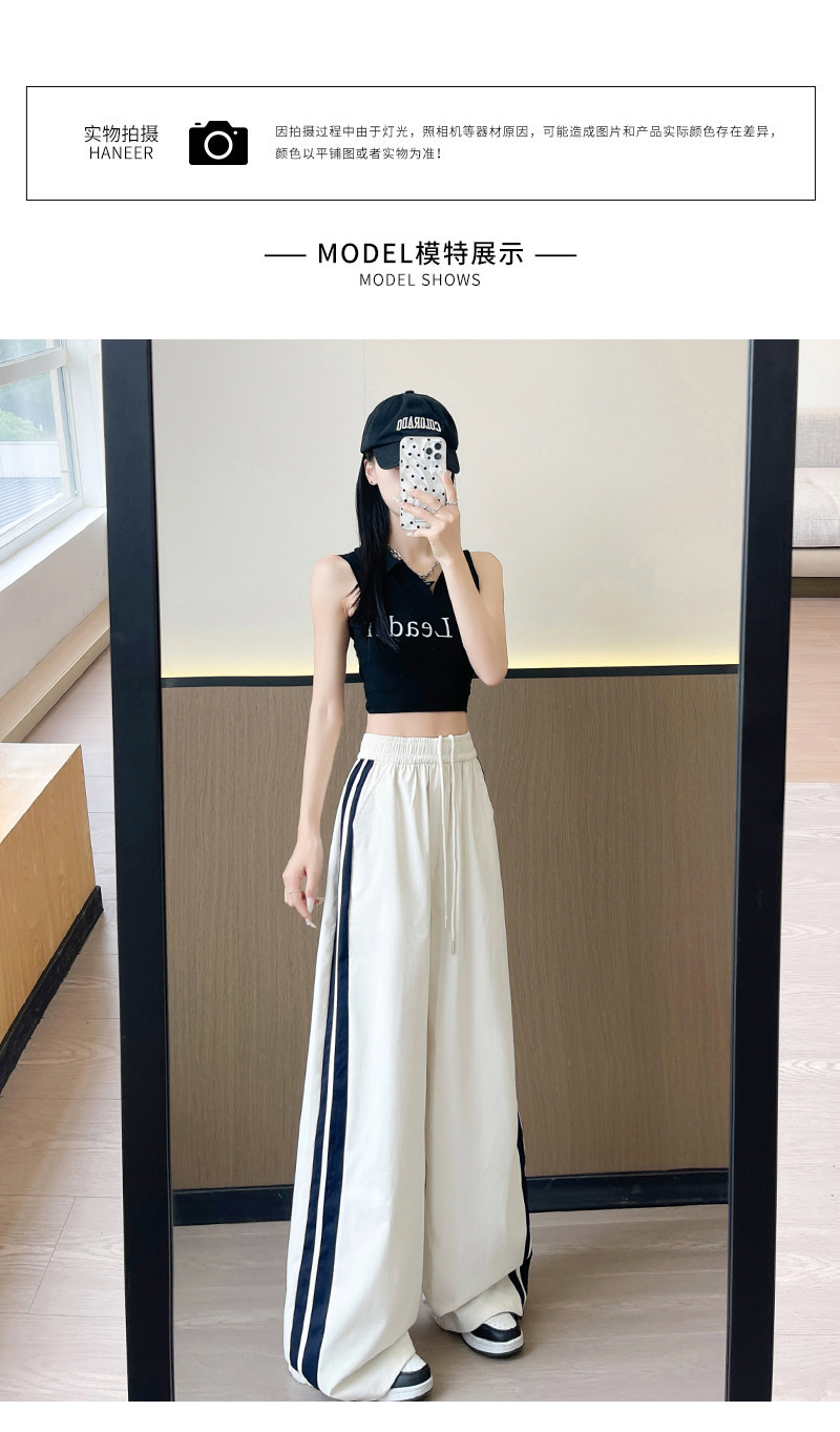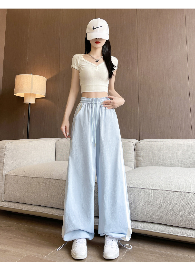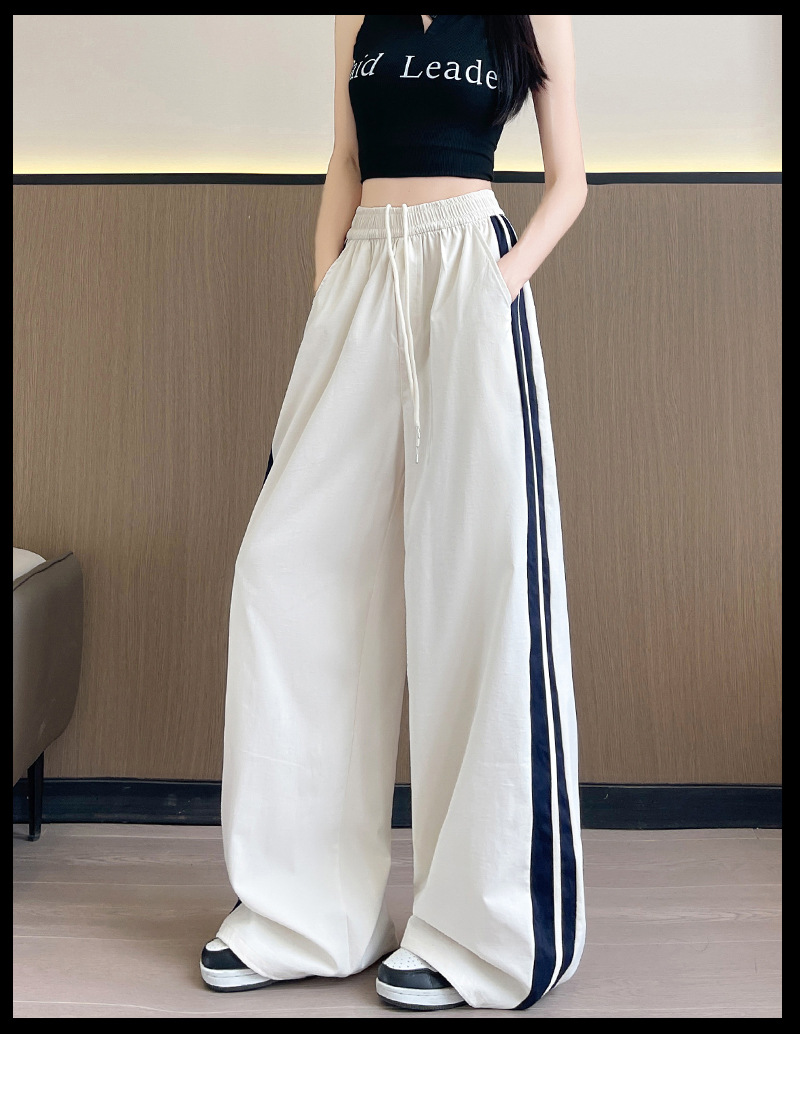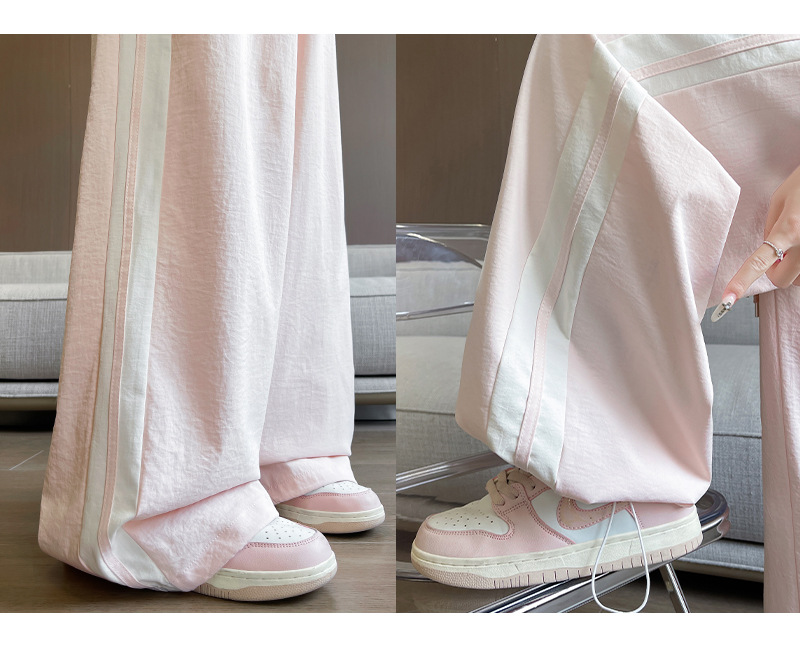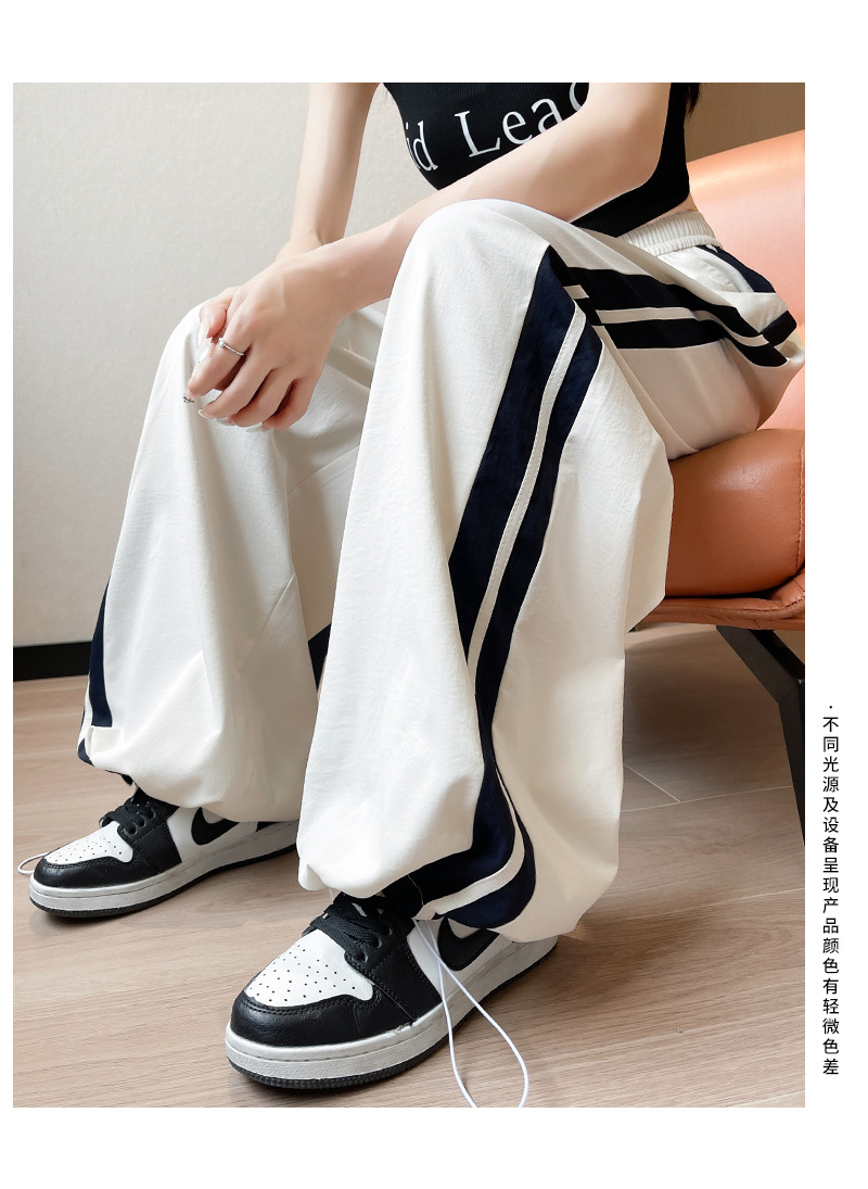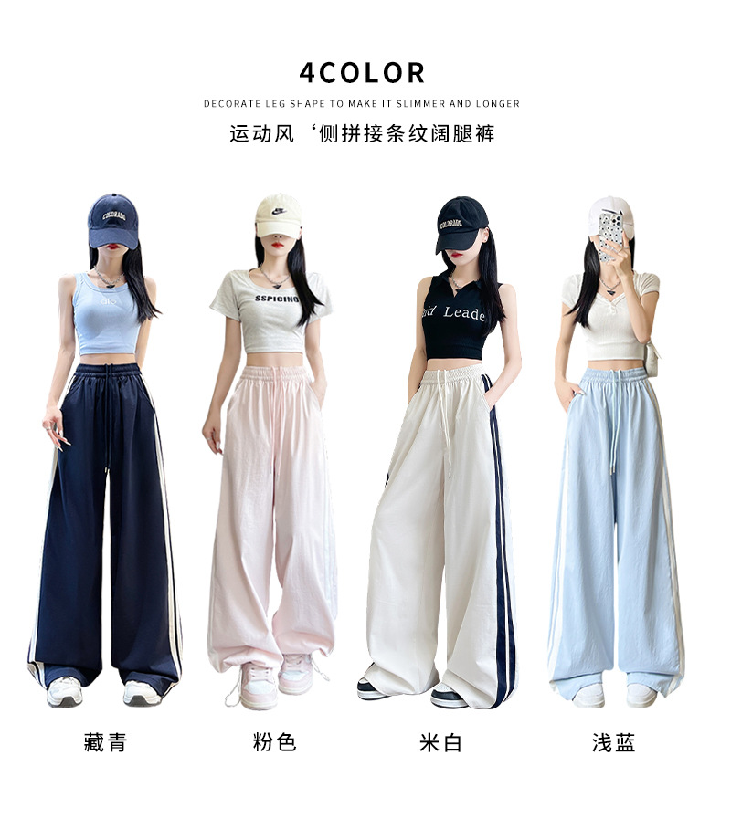 【YW】无忧购美式拼接侧拼条薄款小个子宽松高腰垂感休闲运动阔腿裤H-1842(截单后3-5天发货)