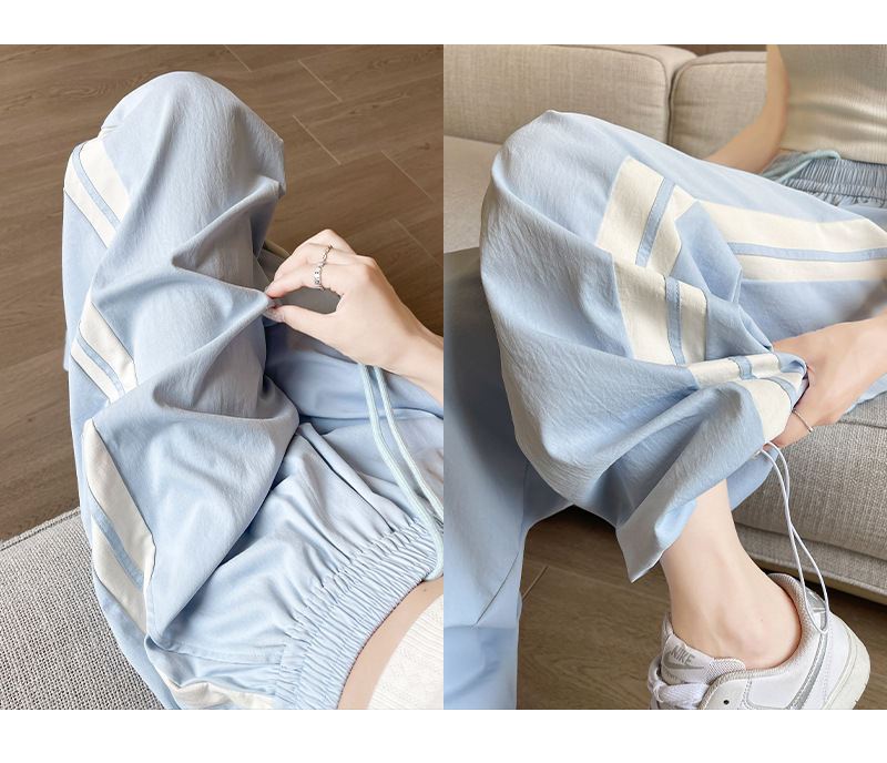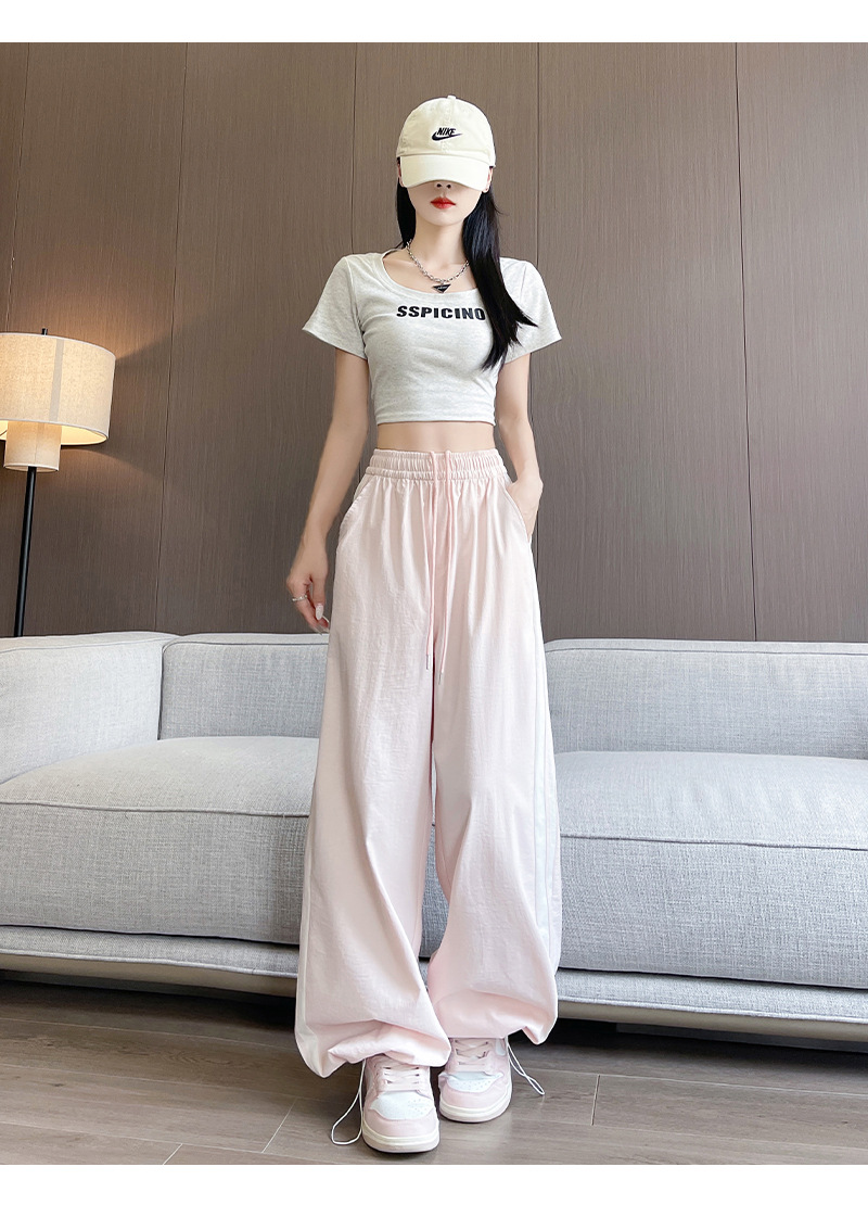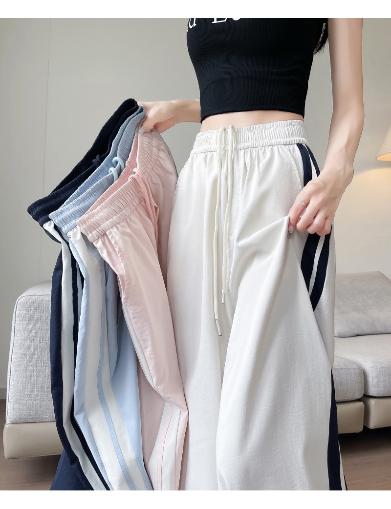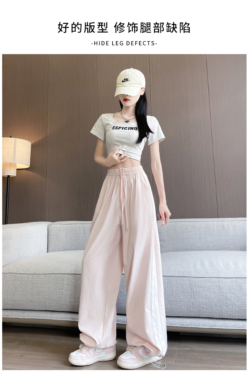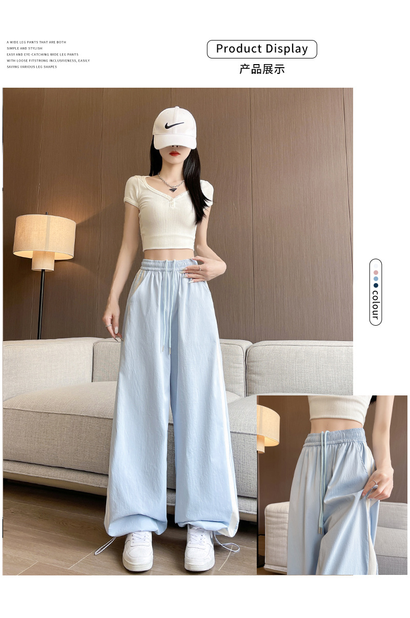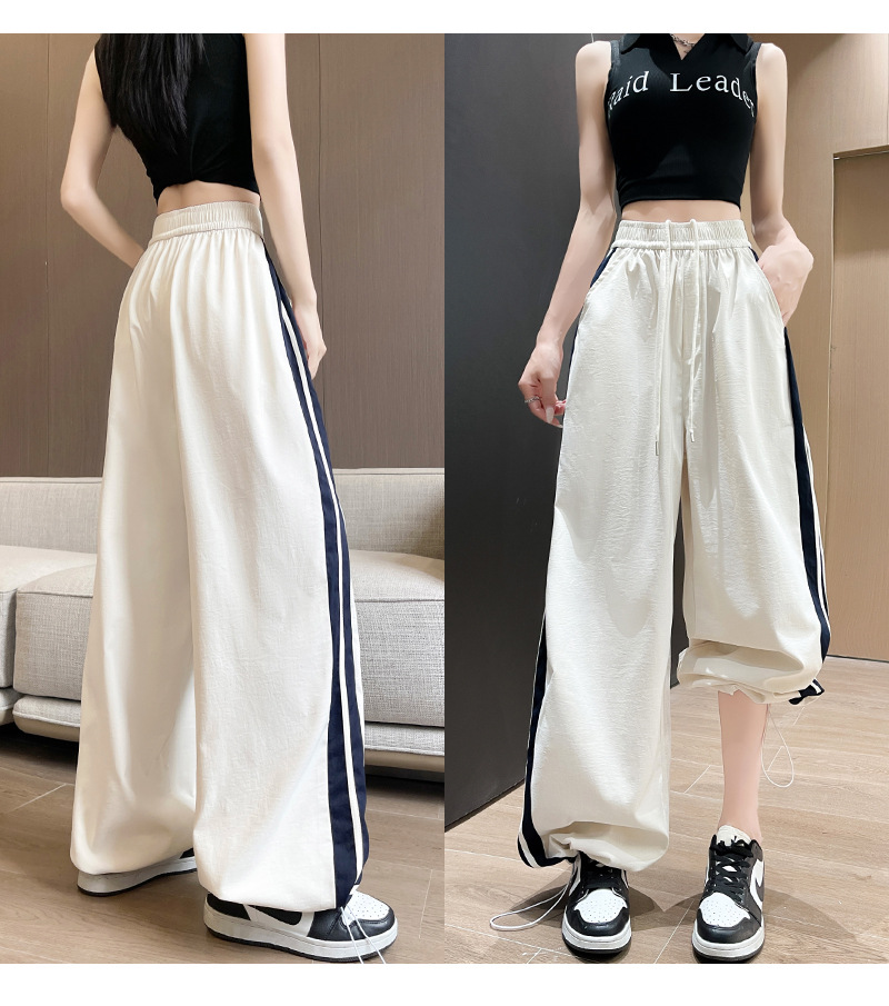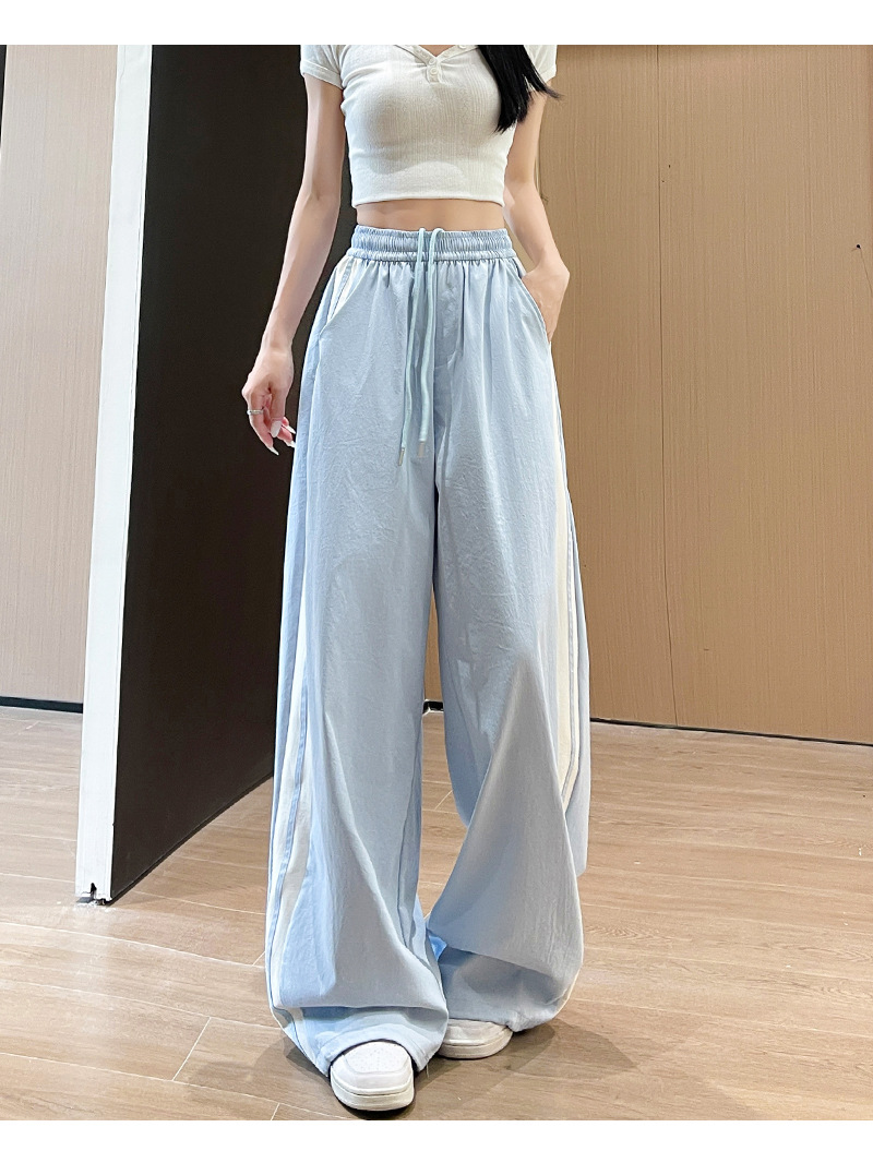 【YW】无忧购美式拼接侧拼条薄款小个子宽松高腰垂感休闲运动阔腿裤H-1842(截单后3-5天发货)