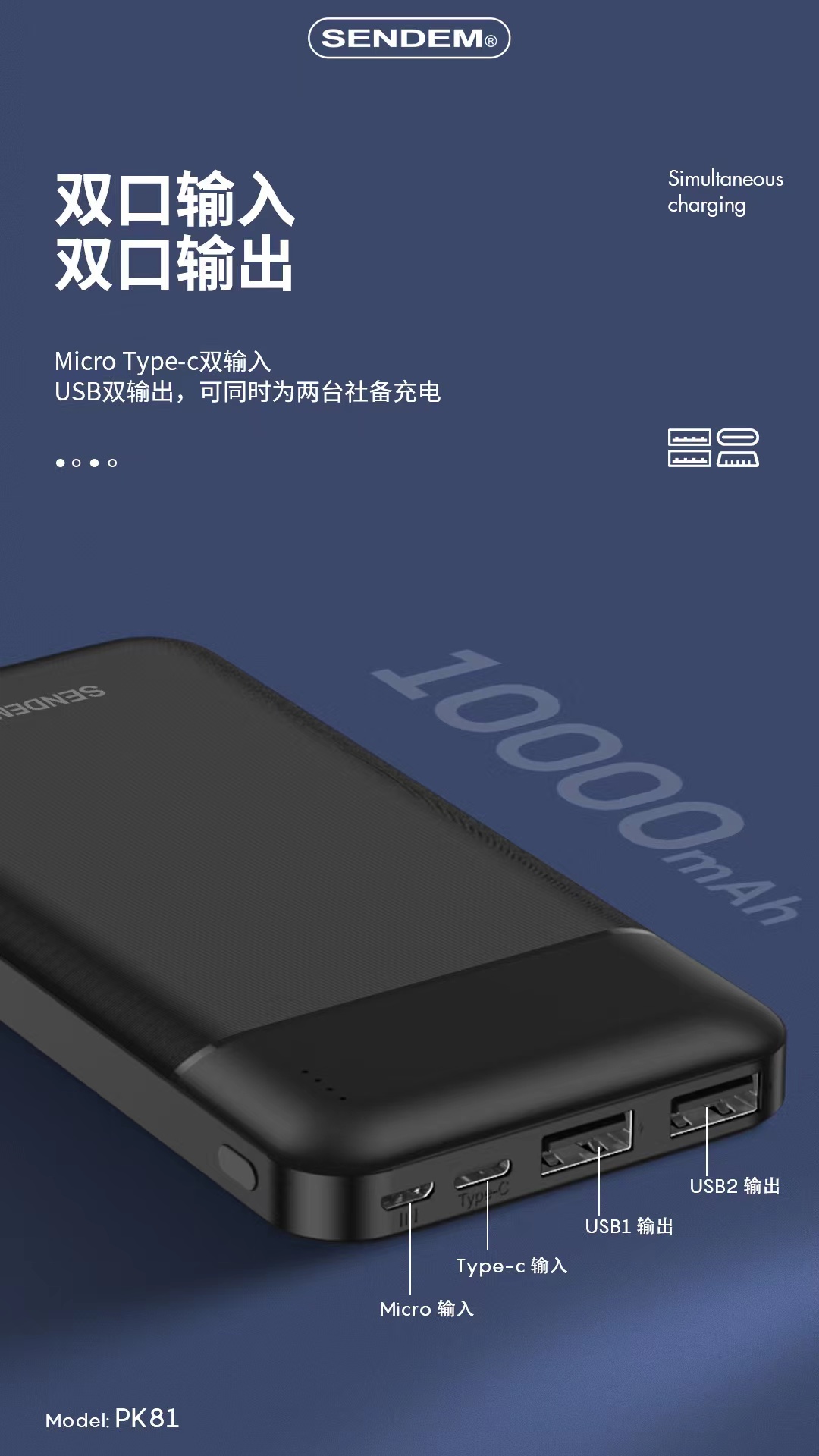 10000毫安移动电源锐客系列足量实标超薄便携式pk81