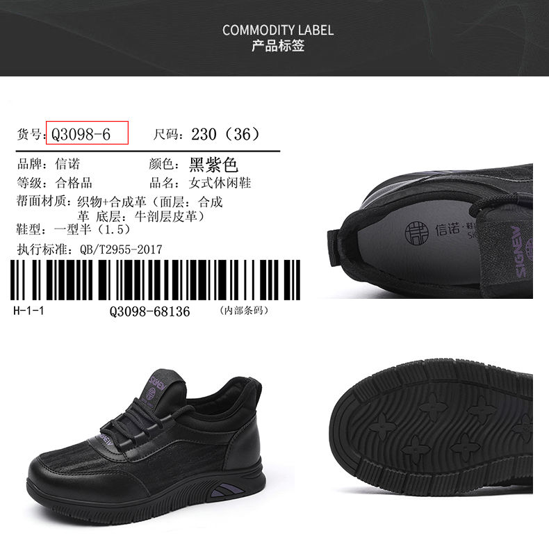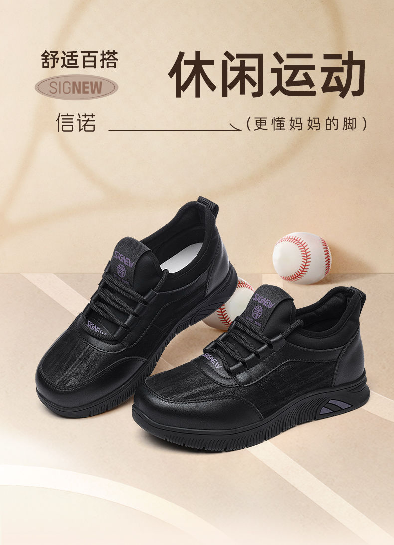 信诺女鞋经典百搭运动鞋2024新款秋季休闲旅游鞋中老年软底妈妈鞋Q3098-6