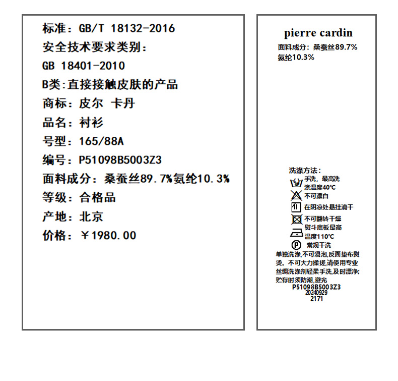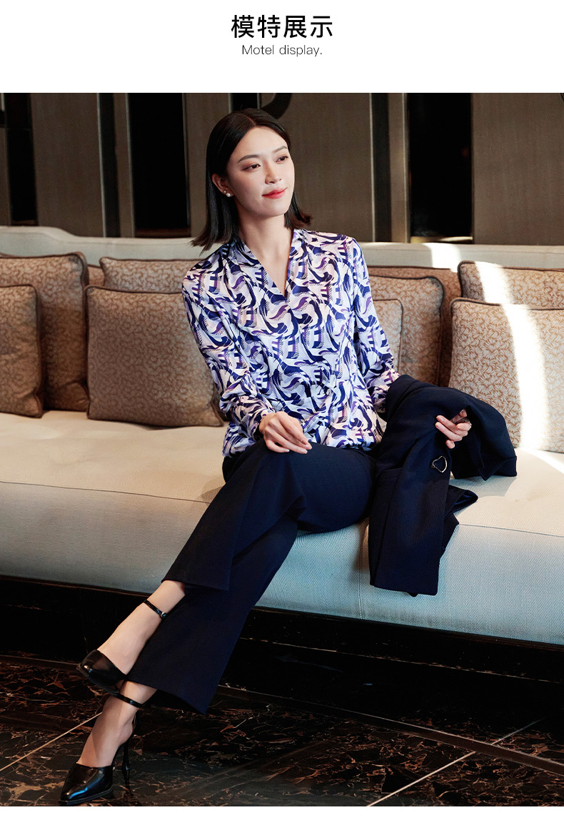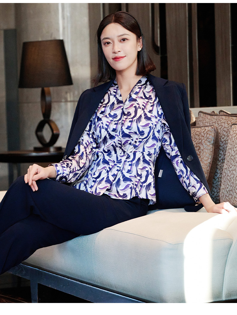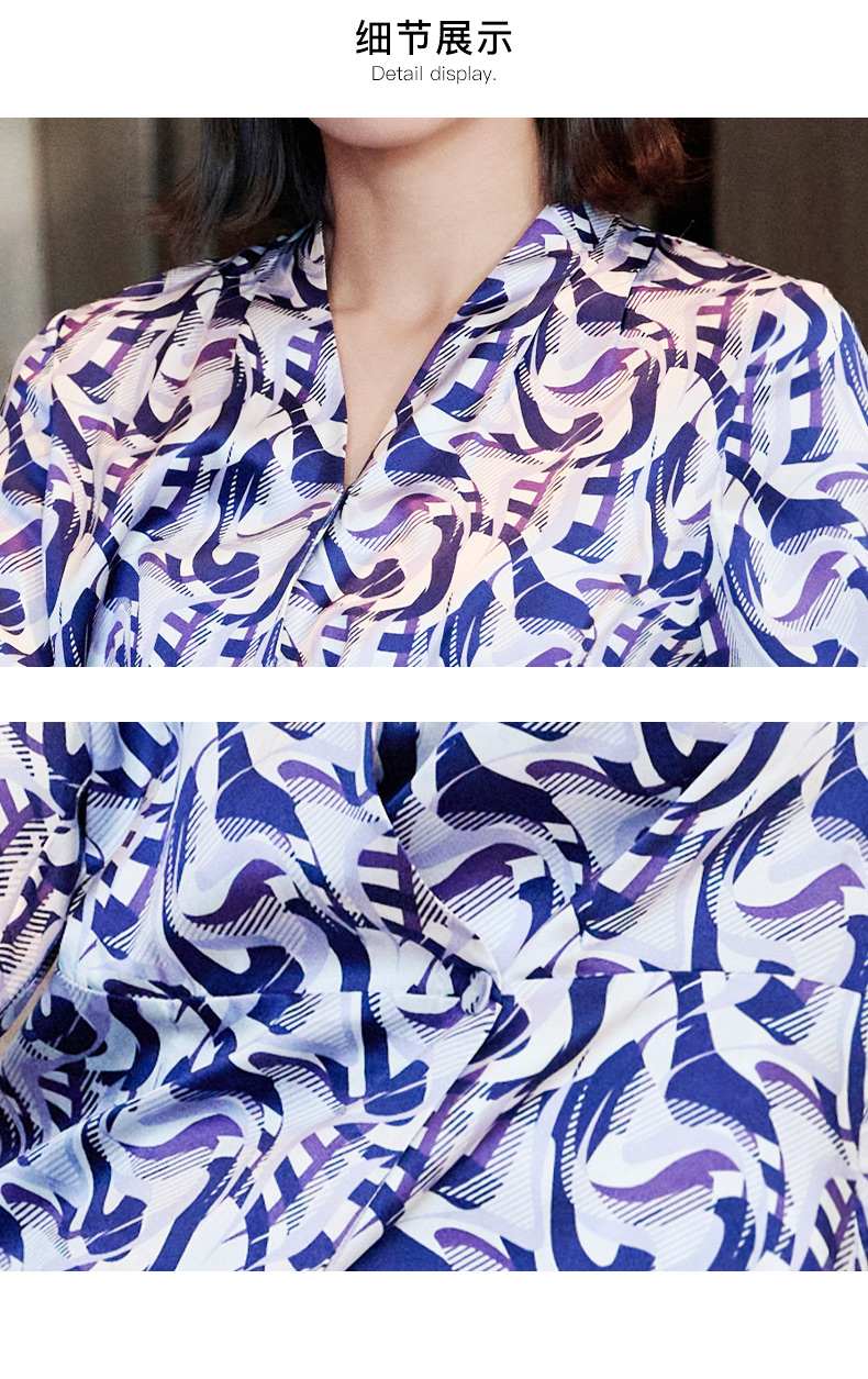皮尔卡丹女装印花桑蚕丝长袖衬衫P51098B5003Z3
