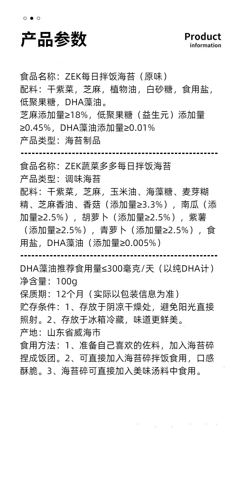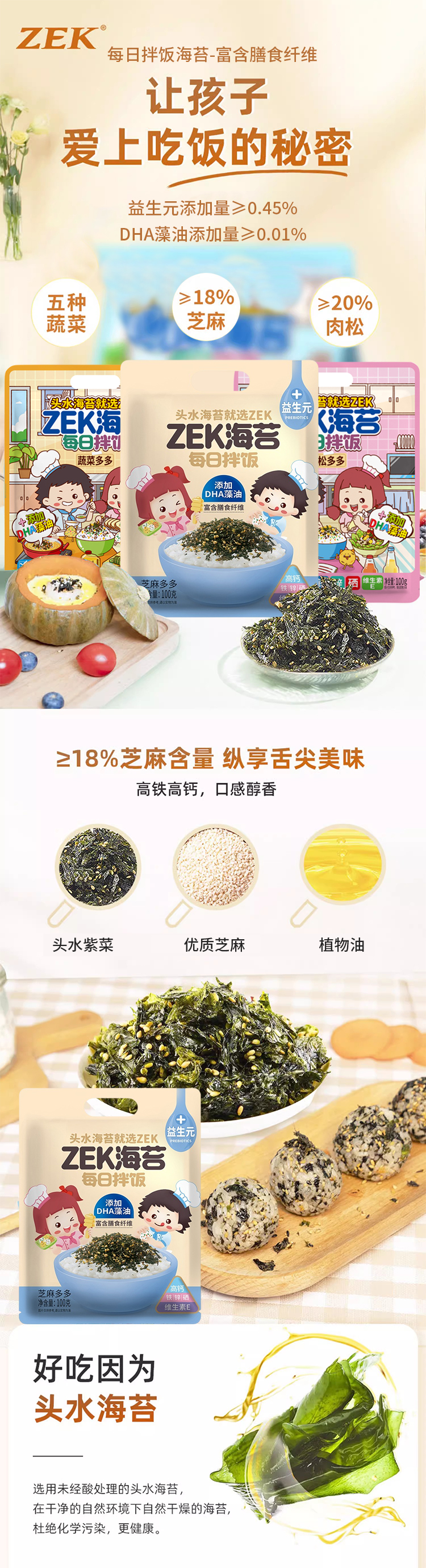 ZEK每日拌饭海苔【芝麻多多/肉松味/蔬菜多多】100g