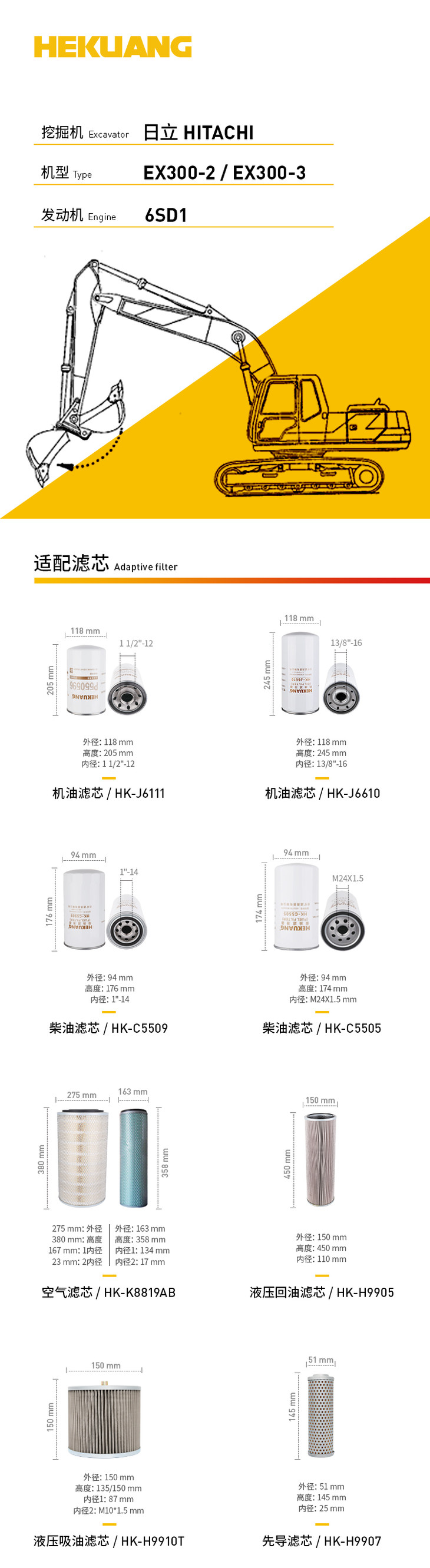 日立EX300-2 EX300-3(6SD1)挖掘机滤芯 机油柴油空气滤芯 液压油先导滤芯