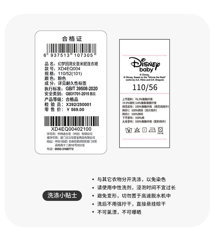 迪士尼魔法派对连衣裙米奇国风冬季女童长袖连衣裙XD4EQ004