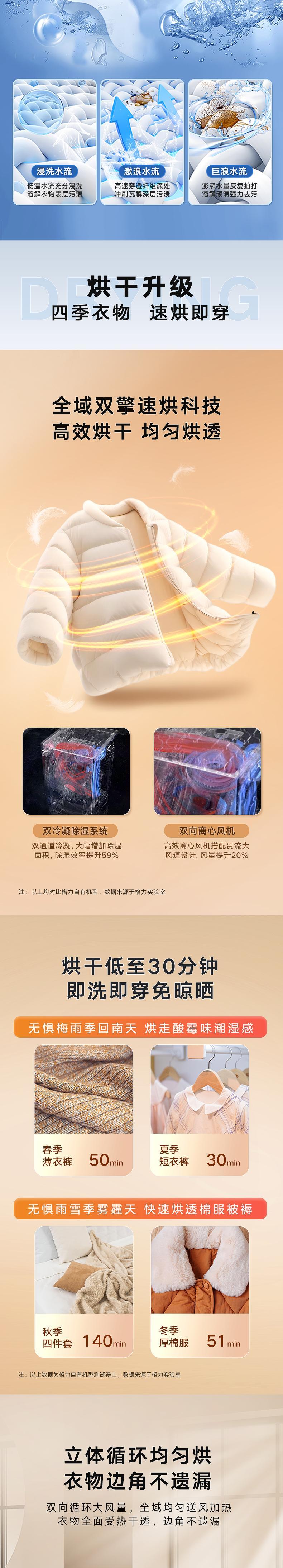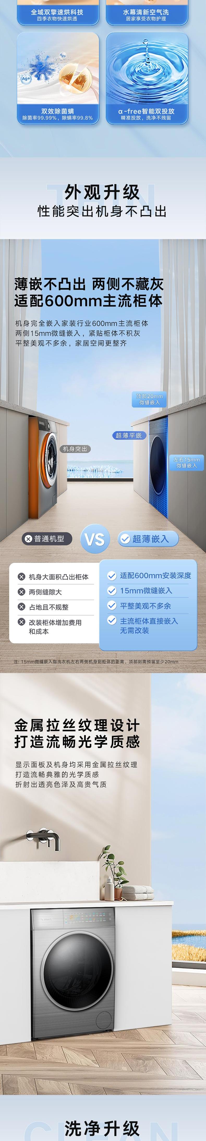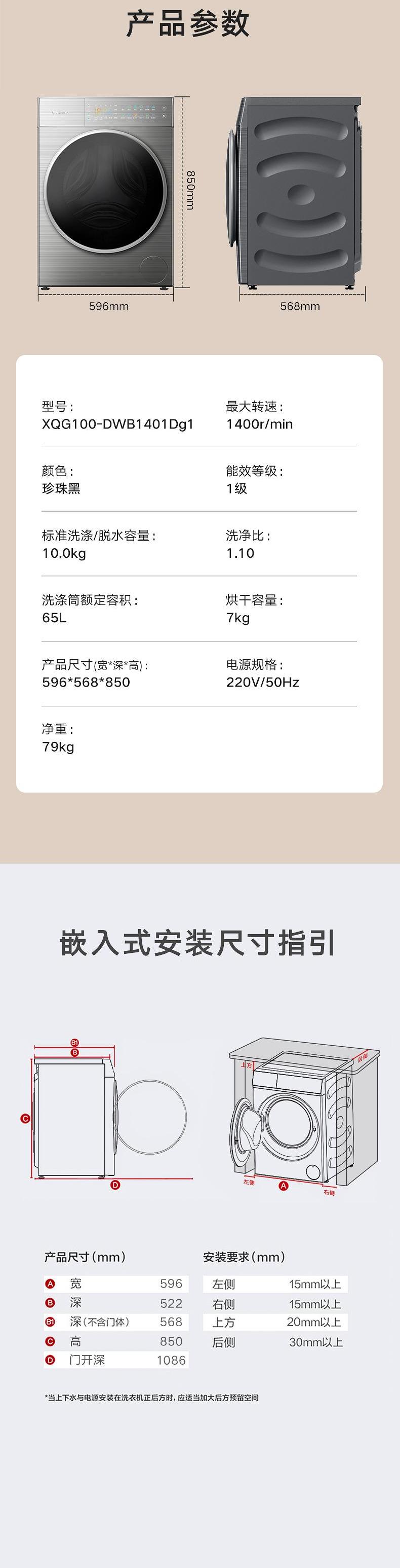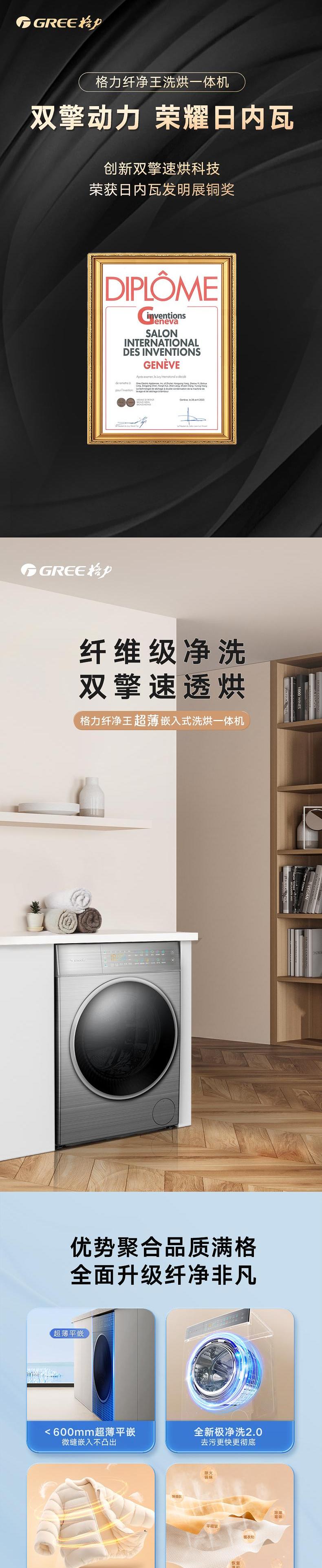 格力纤净王超薄嵌入式洗衣机 洗烘一体 10kg XQG100-DWB1401Dg1 (珍珠黑)