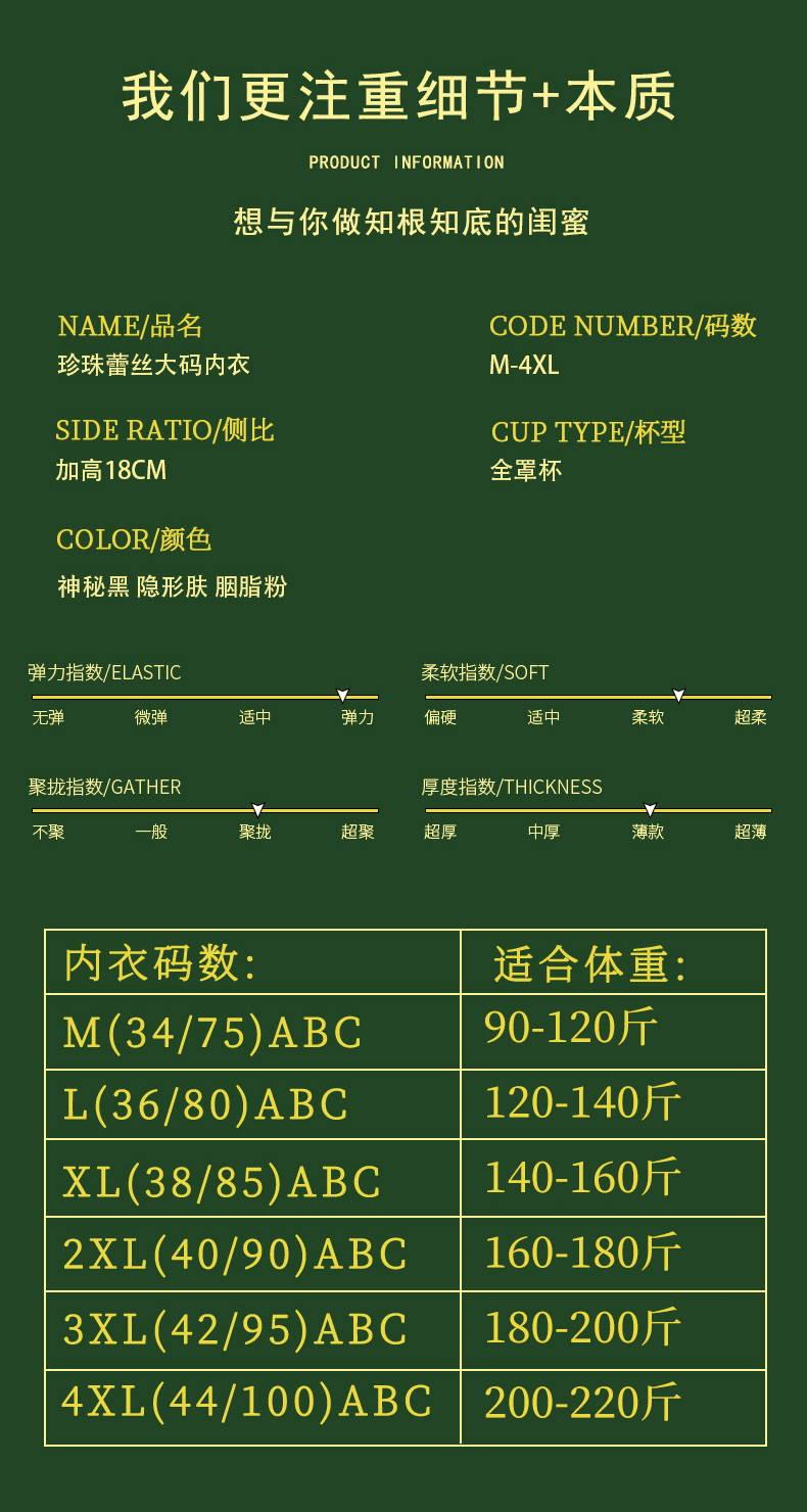 【卡码拍小】巨包容-珍珠蕾丝大码内衣2219#