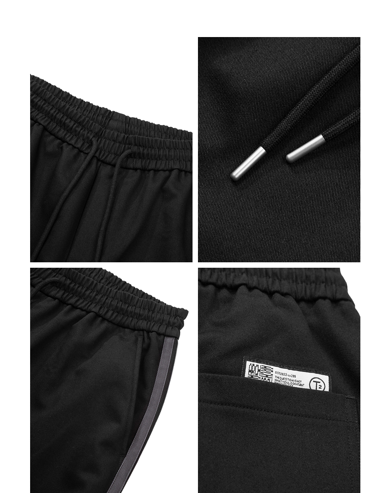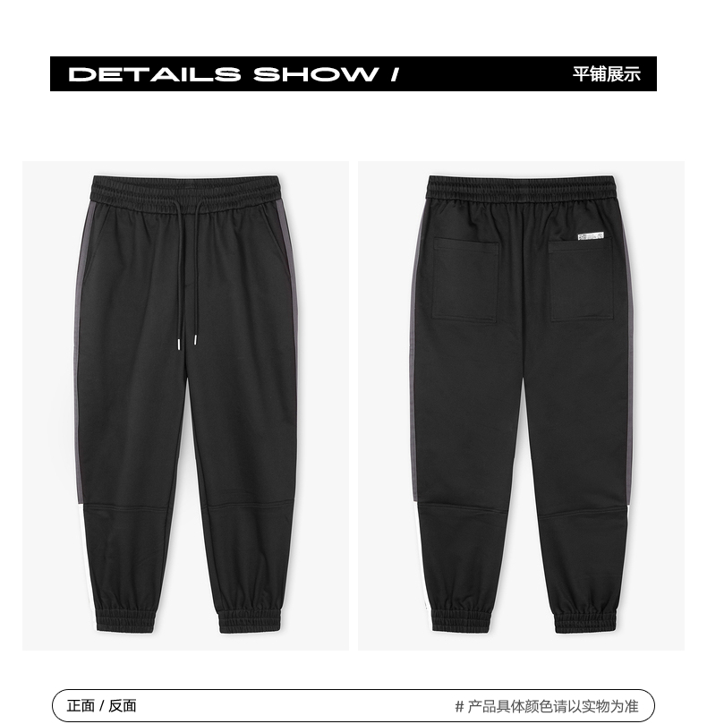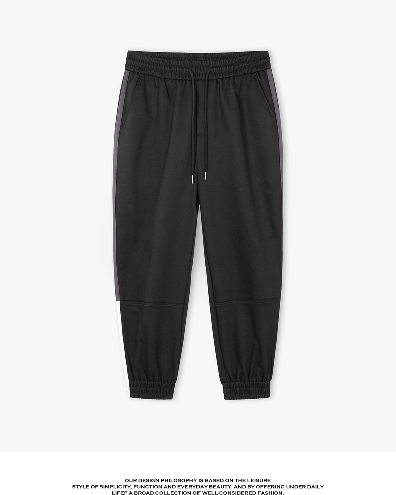gxg.jeans男装冬季侧缝拼接松紧腰黑色束脚休闲裤男