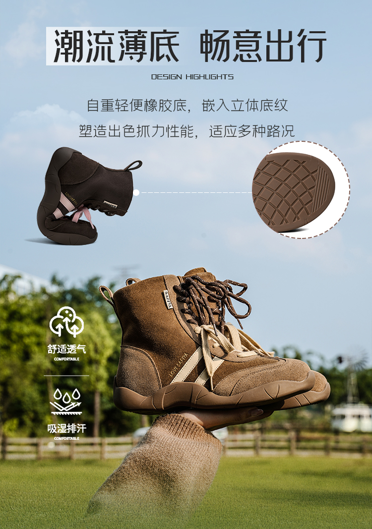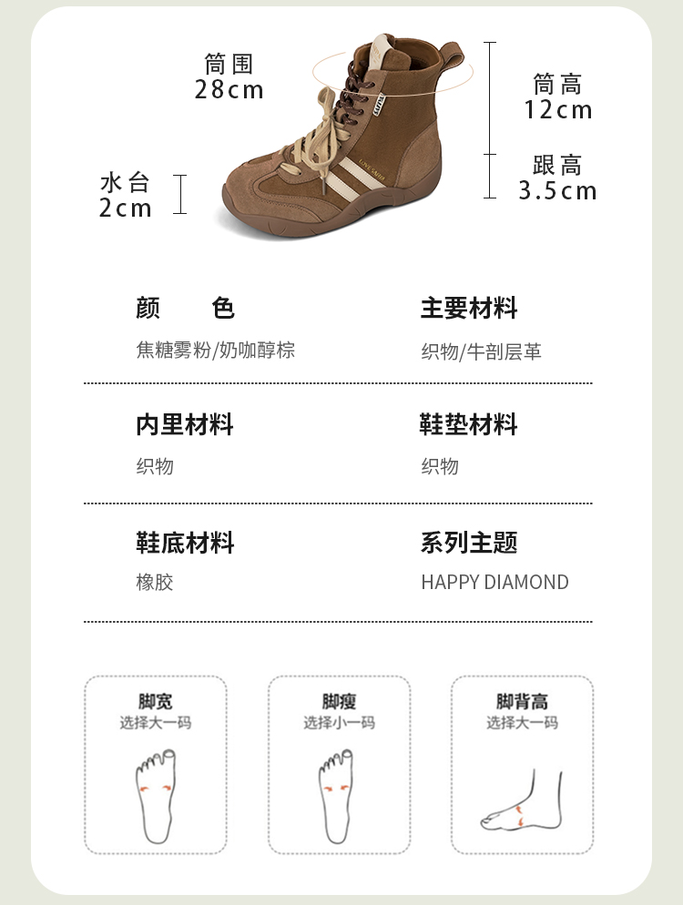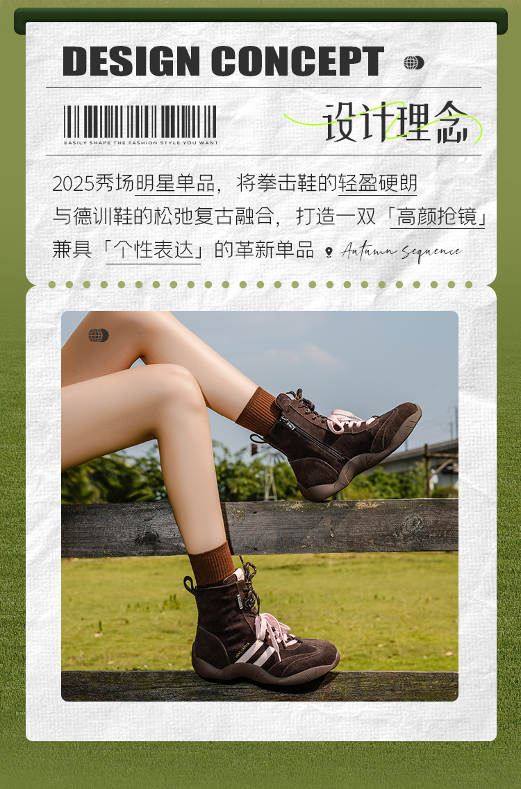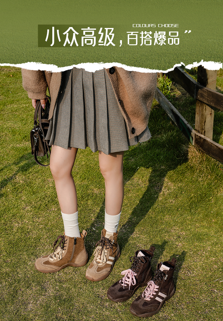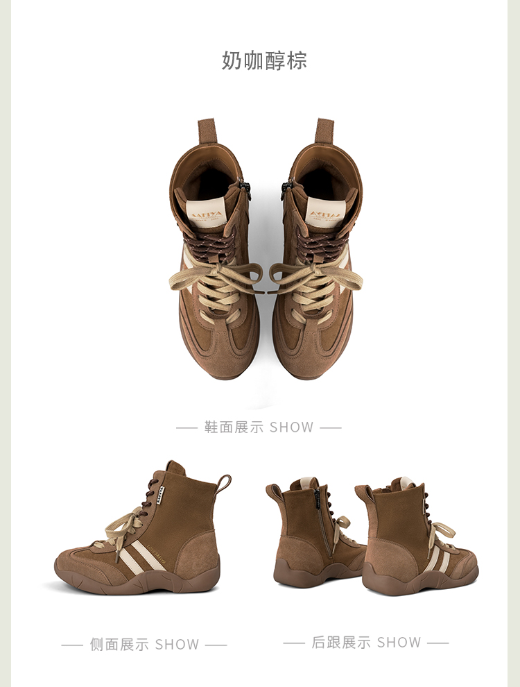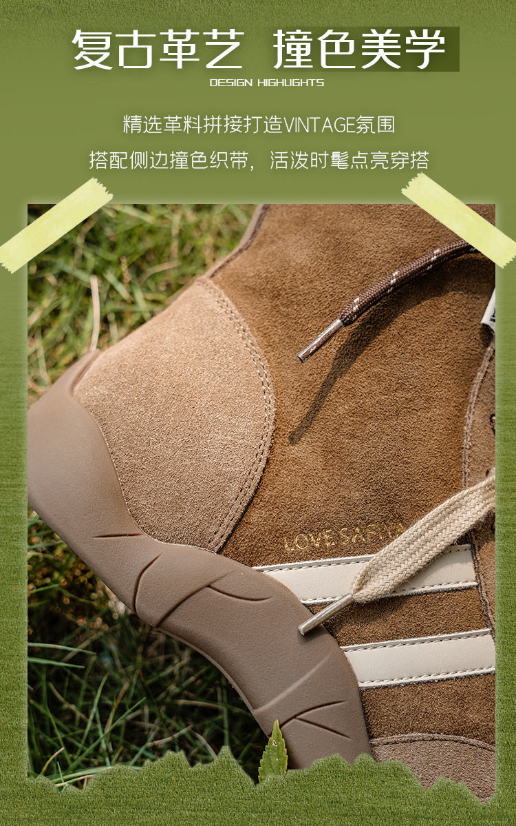 Safiya/索菲娅2025时尚拳击靴复古反绒休闲百搭运动高帮德训鞋SFD4116060