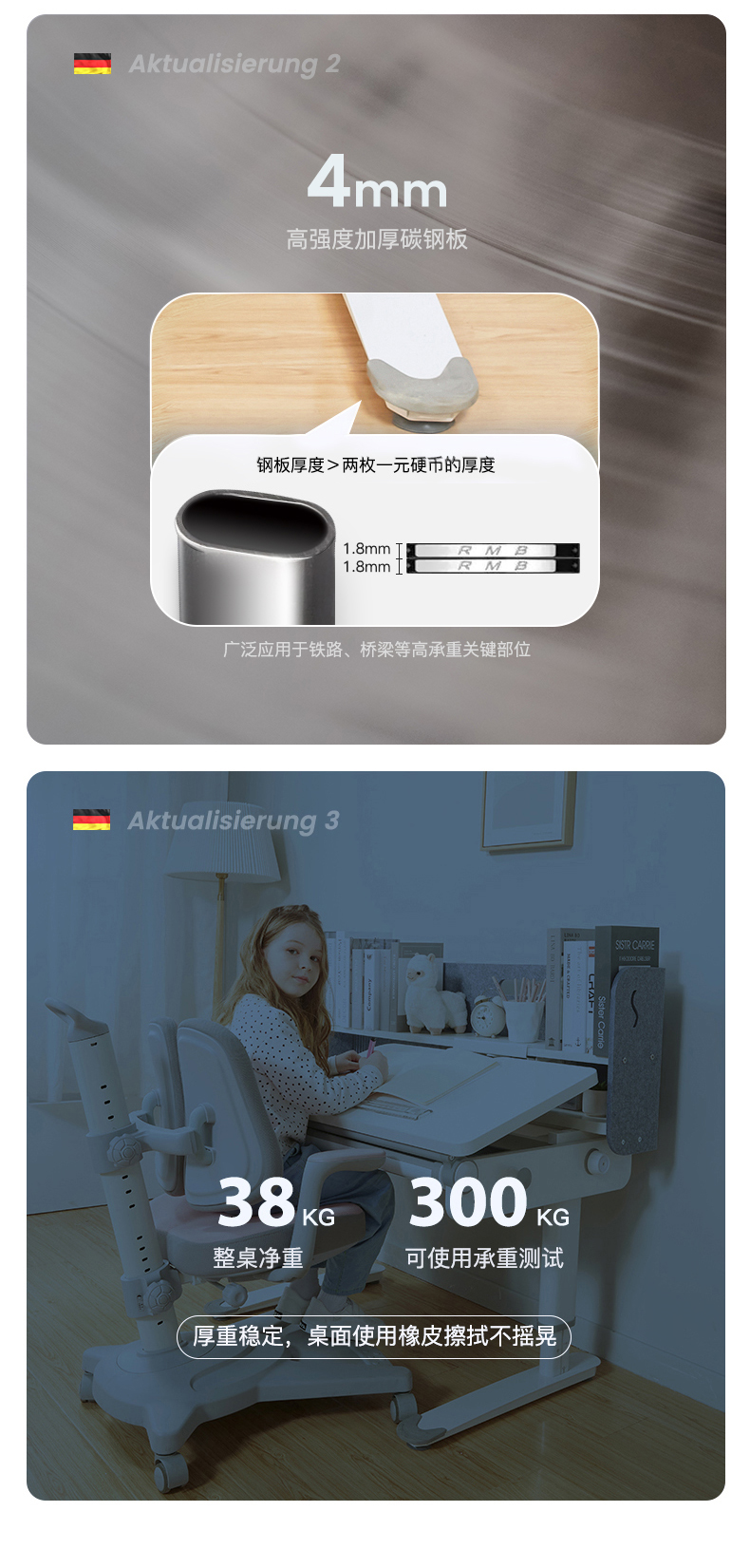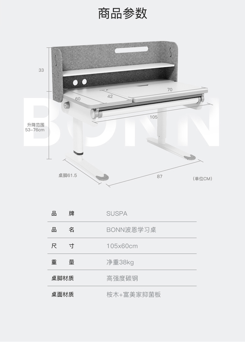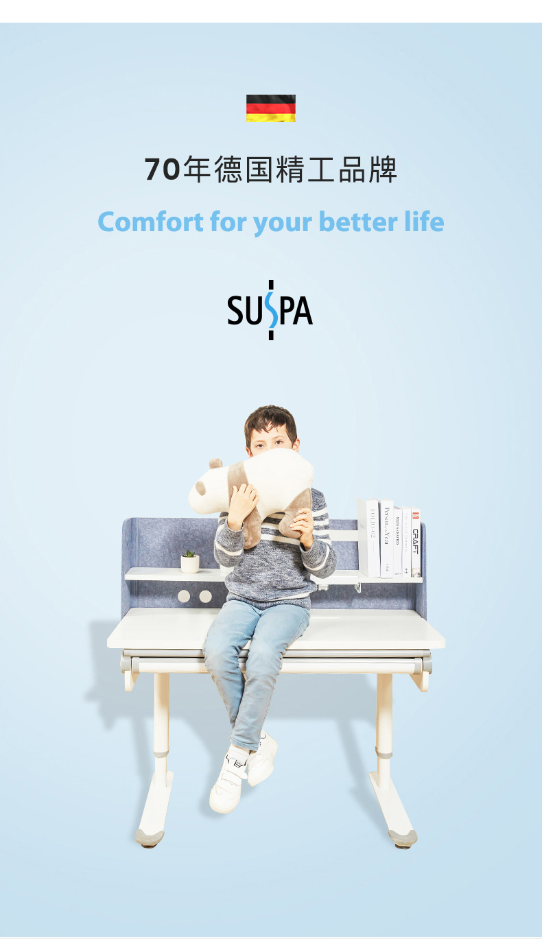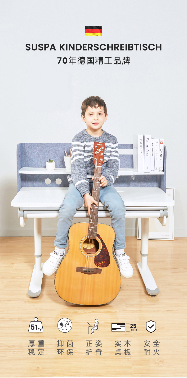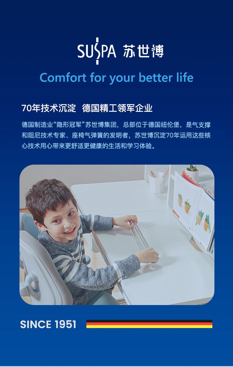 德国SUSPA苏世博波恩巴赫儿童学习桌可升降实木学生桌椅套装