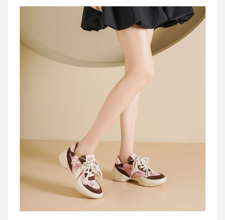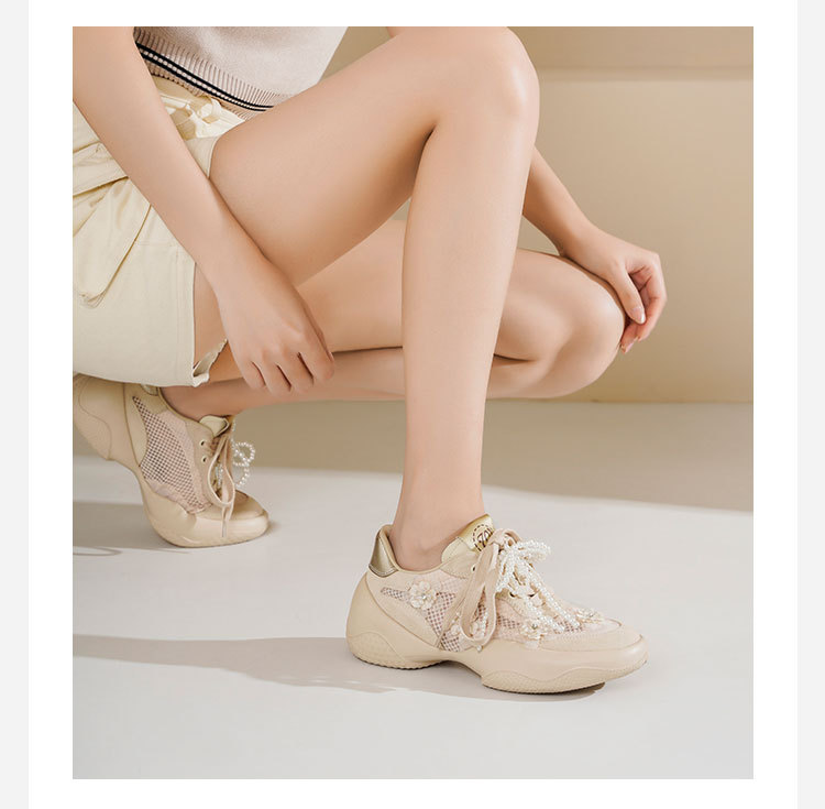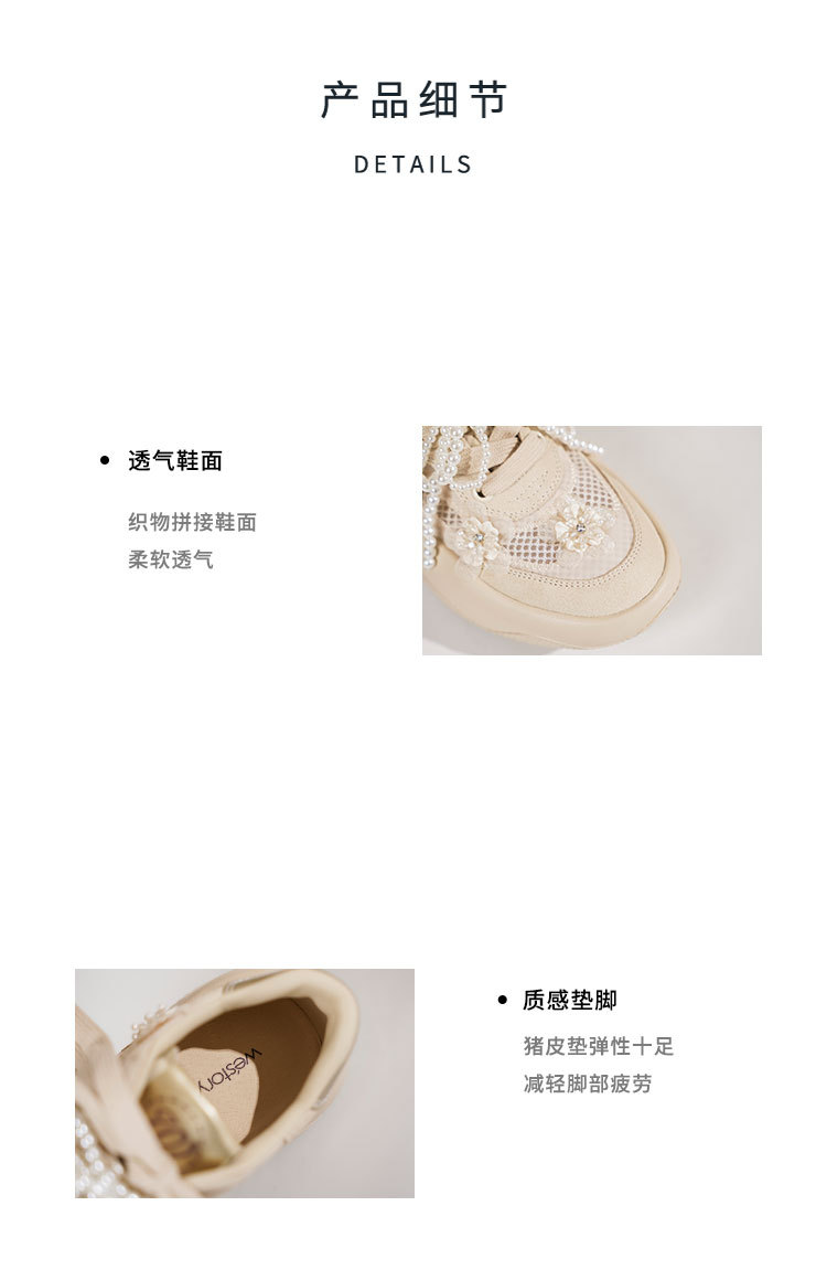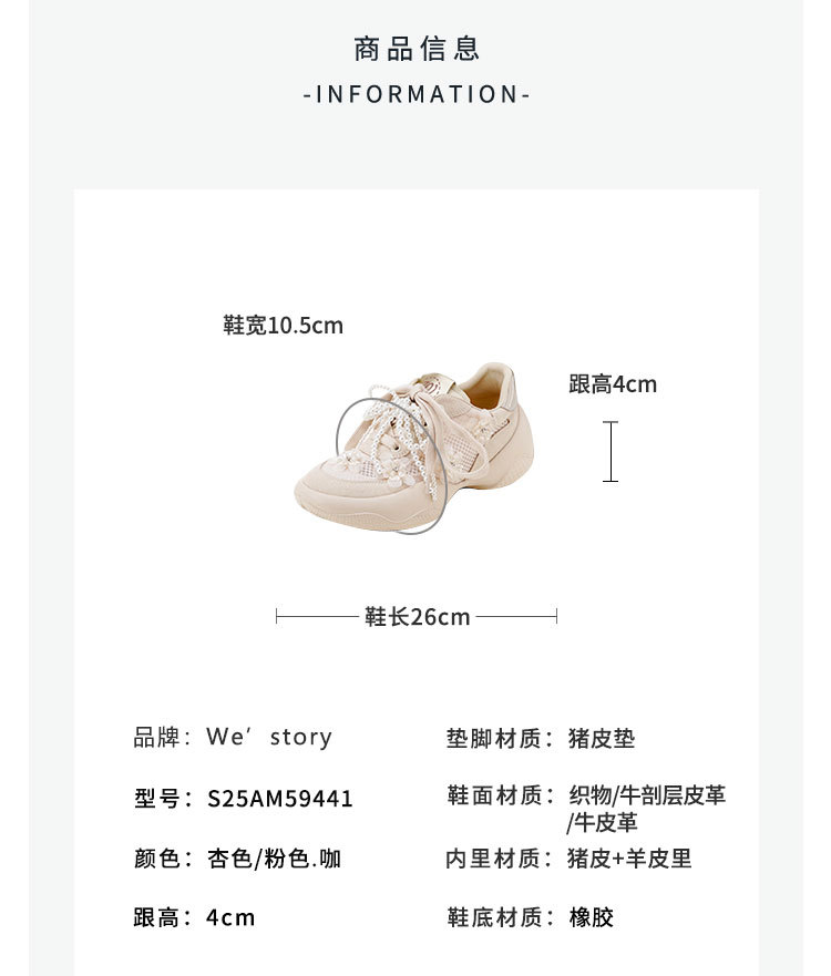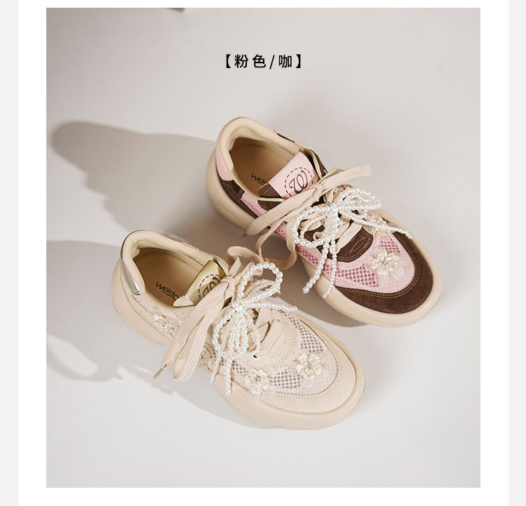 Westory2025年春季网纱镂空运动鞋板鞋系带花朵装饰深口鞋S25AM59441