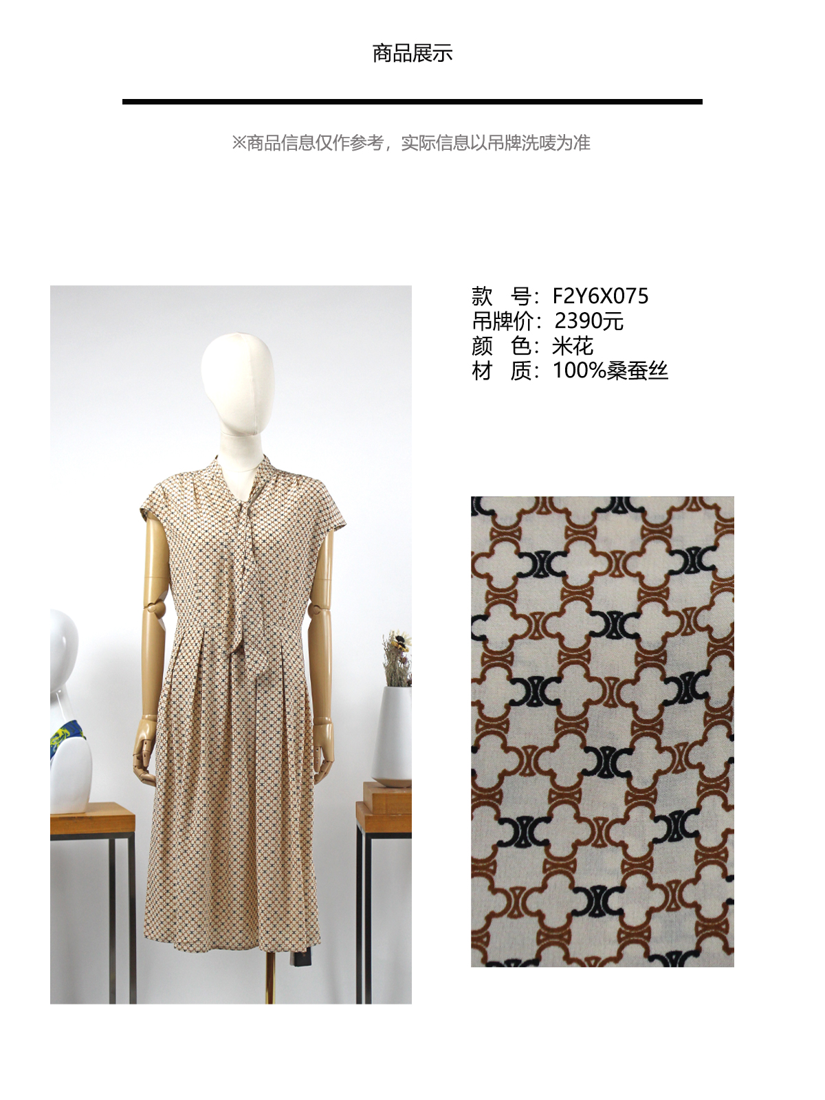 FOCALS福柯斯秋季桑蚕丝短袖飘带桑蚕丝印花连衣裙2Y6X075MV