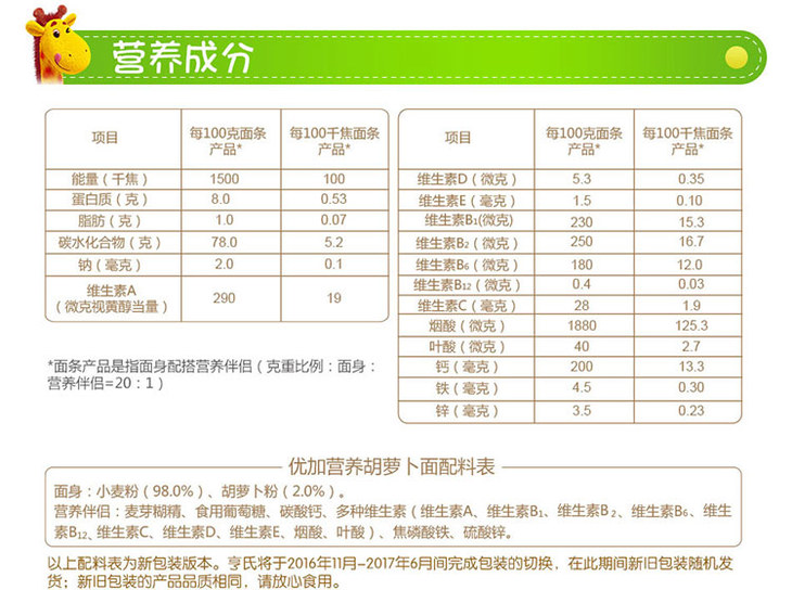 亨氏优加营养胡萝卜面条