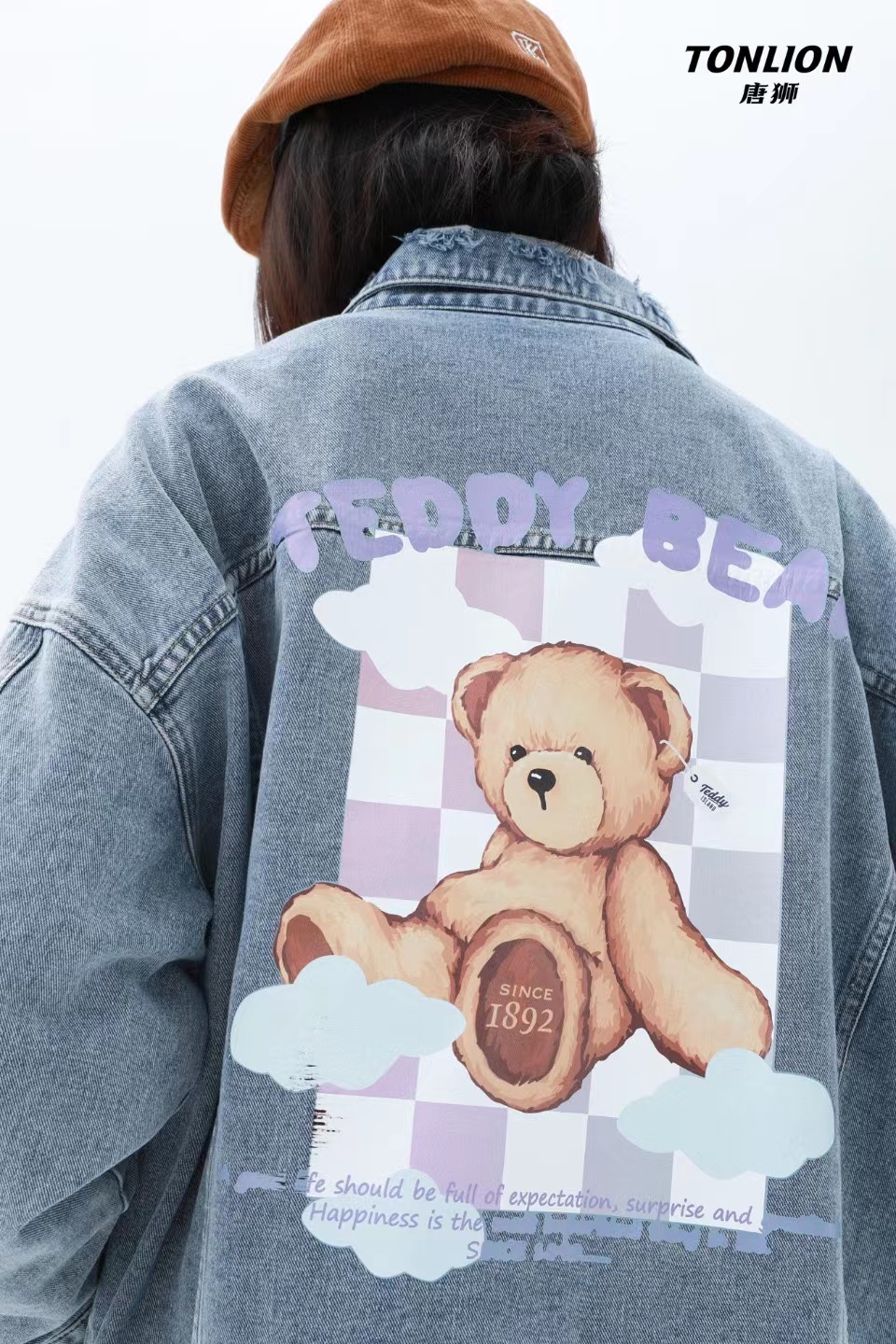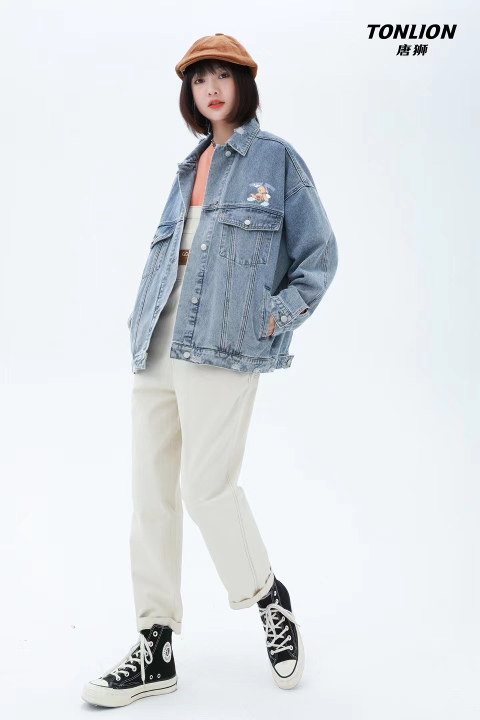 卖点:经典牛仔面料,触感柔软挺拓有型,耐磨耐脏,好打理;版型是很酷的oVersize风,不挑人的版型,藏起小赘肉,后背印花色彩丰富趣味十足,可搭配牛仔裤和短裙。