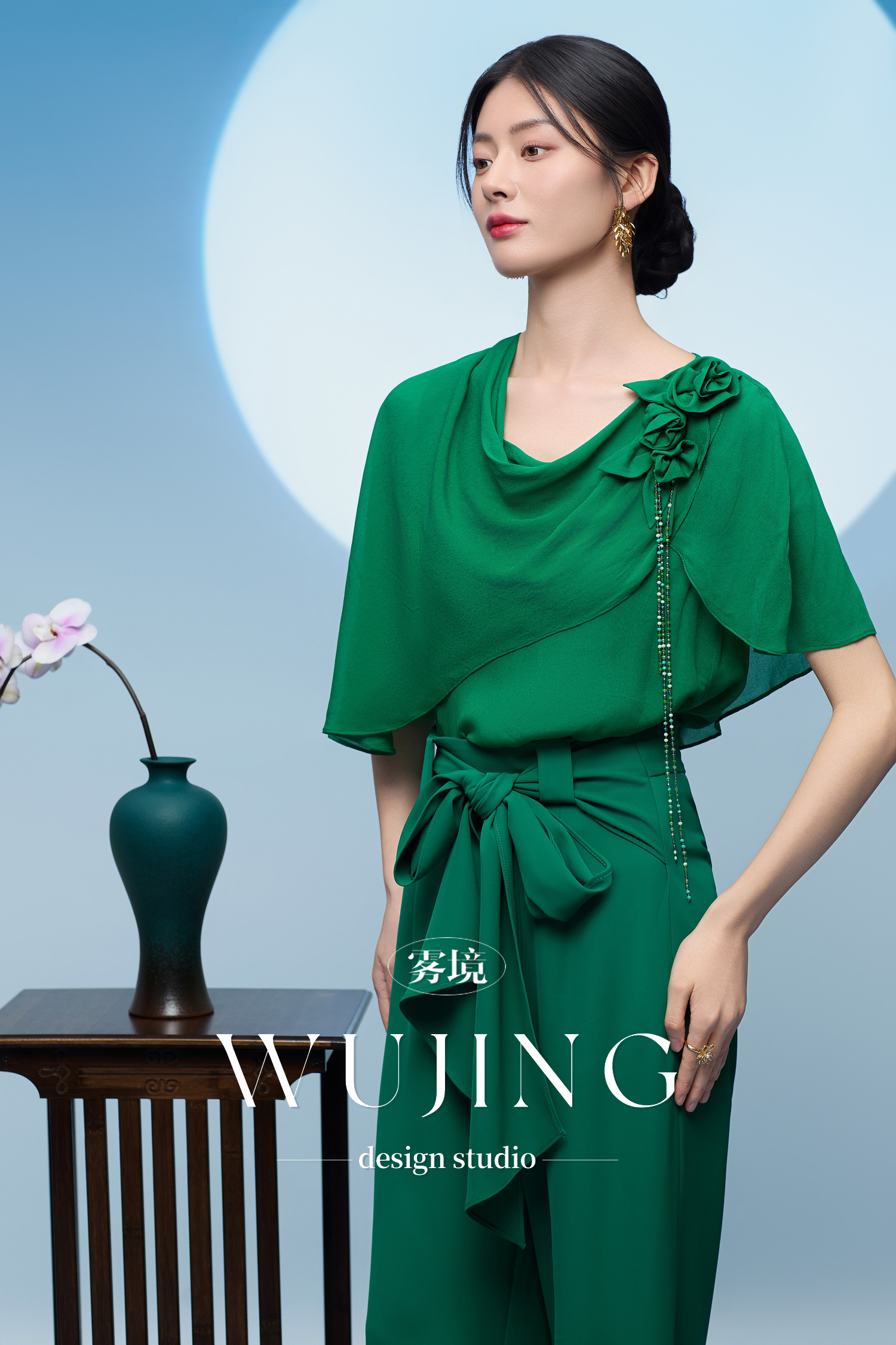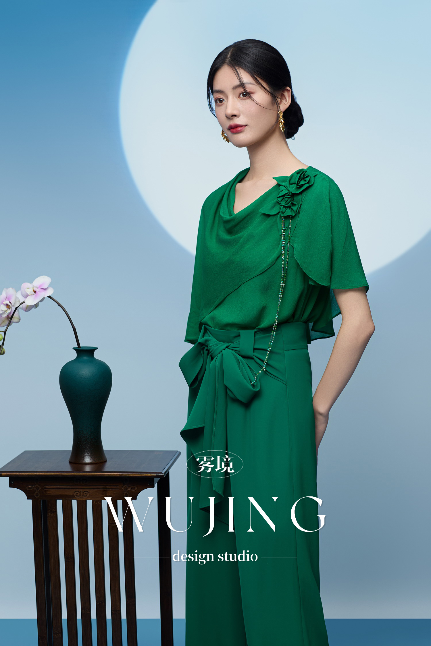 3205109 浮岚暖翠 进口乔其上衣 雾境