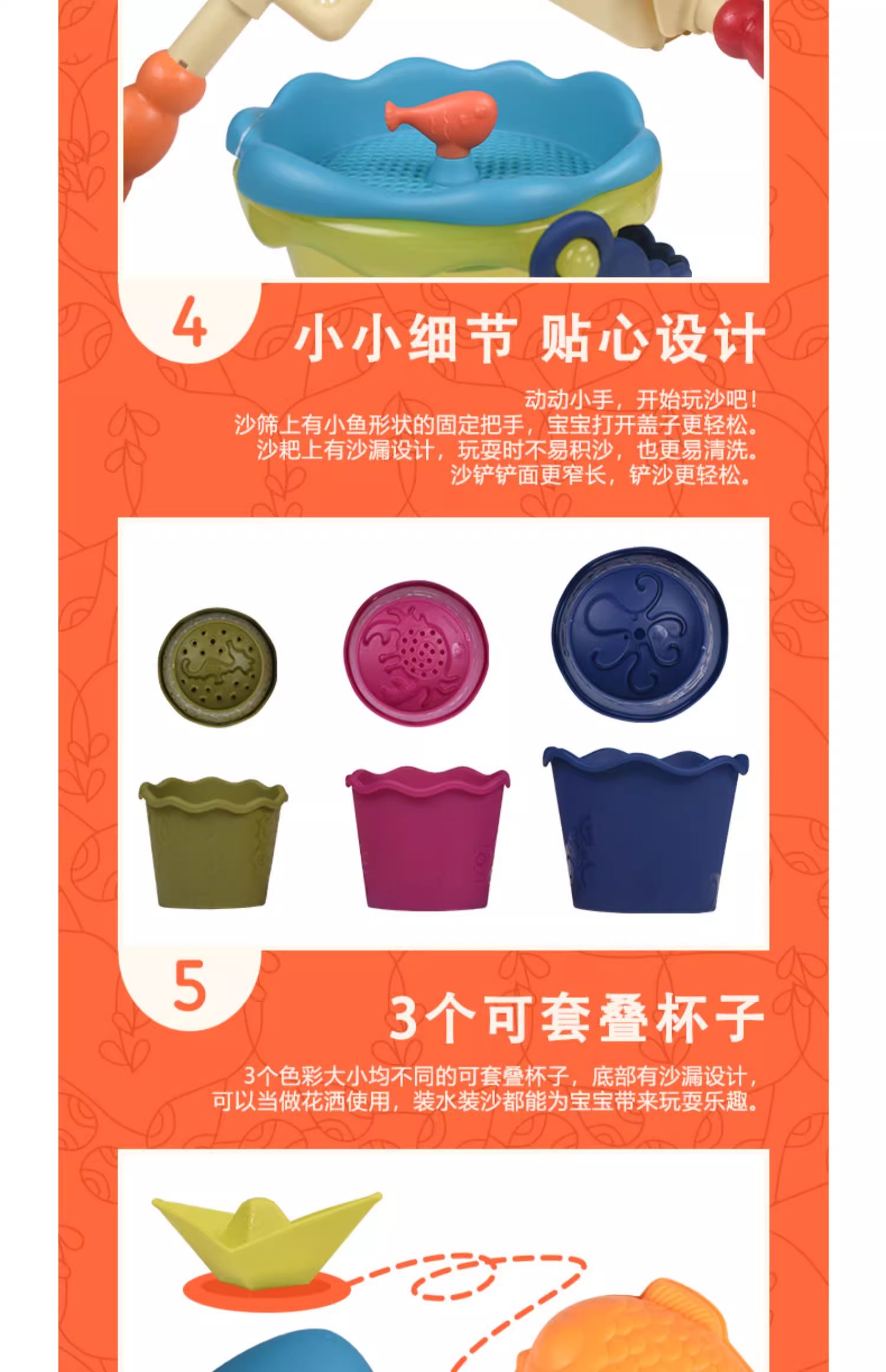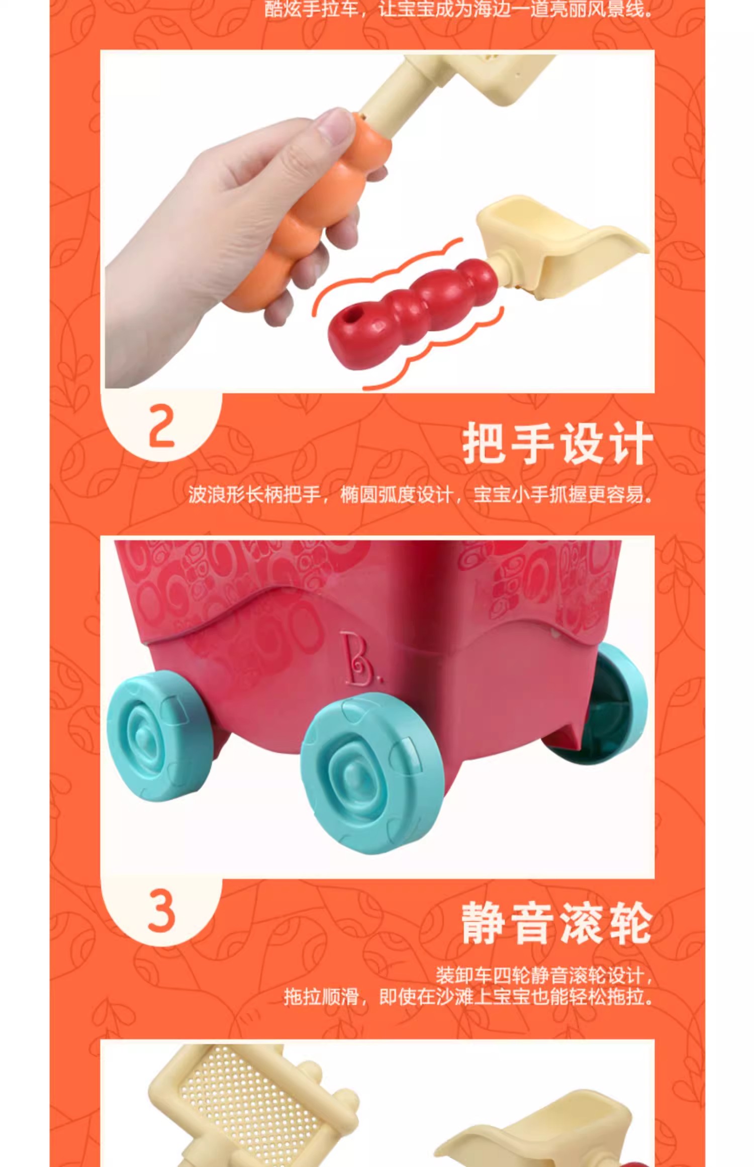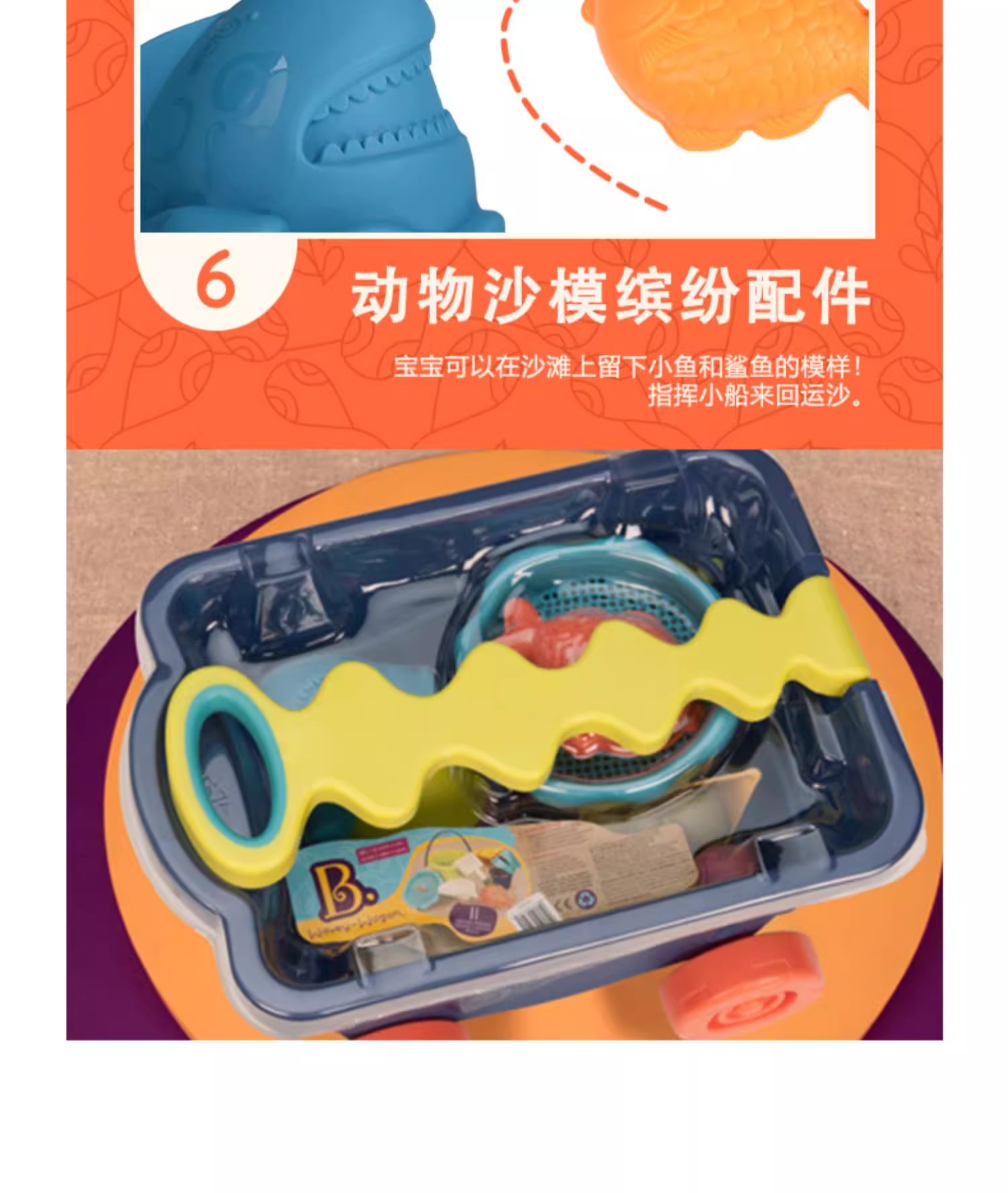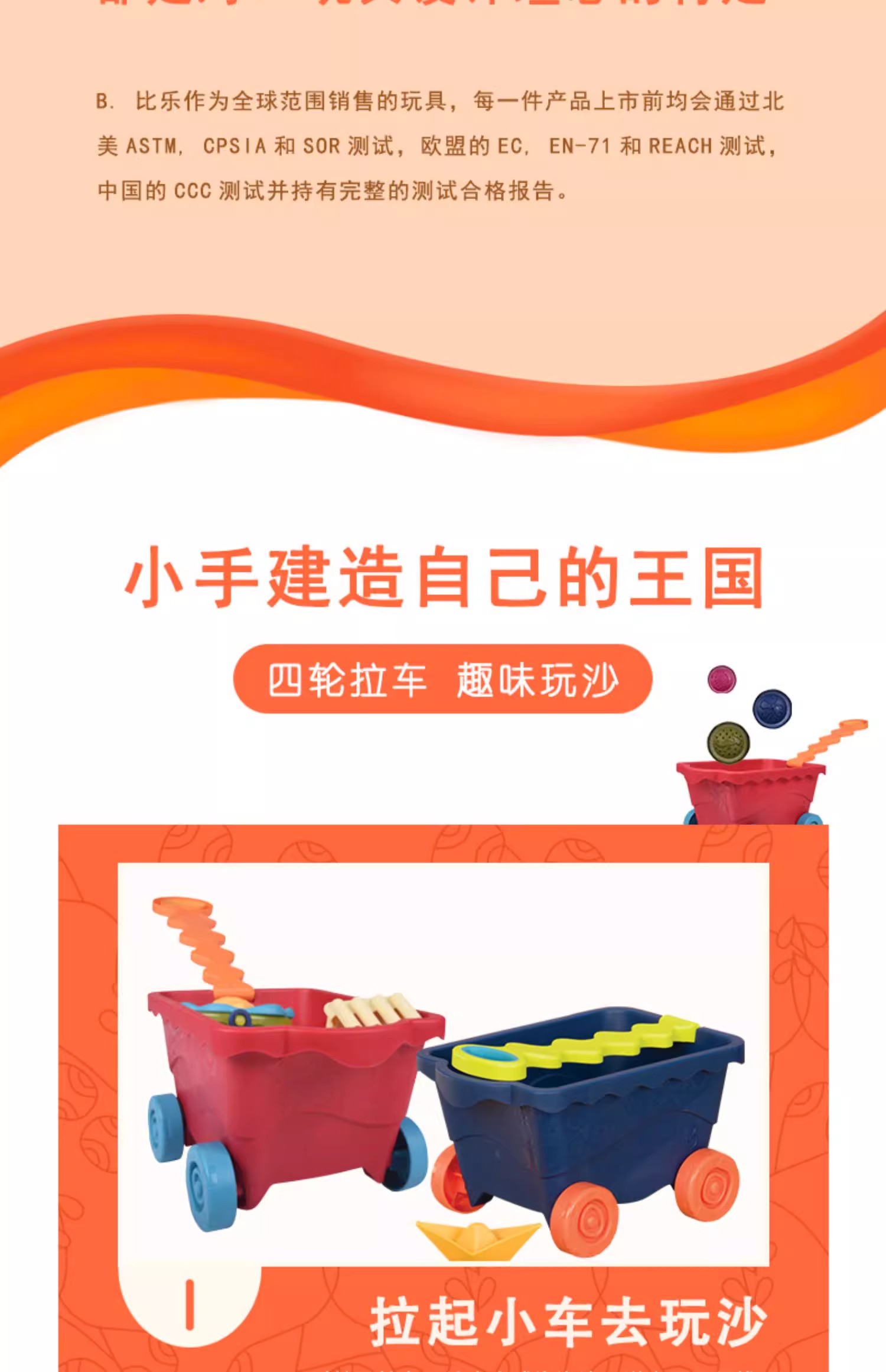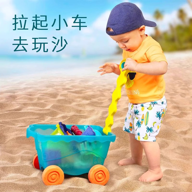 2岁+ | 美国B-toys比乐 海滩旅行车(蓝色) 玩具套装儿童沙桶铲子宝宝玩沙工具