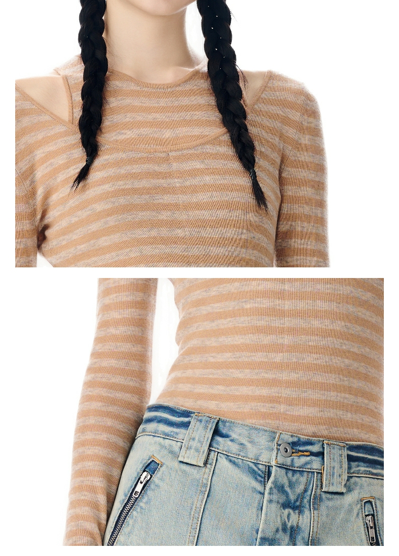 【SHORT SENTENCE×LABELHOOD】联名款条纹双层修身针织上衣