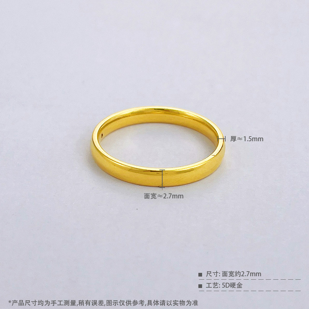 【限时克减150元】足金 #微硬金 无氰5D空心光面素圈固口戒指(AR5DJZ00066)(预售产品下单后不退款不退货不换货不补差价)
