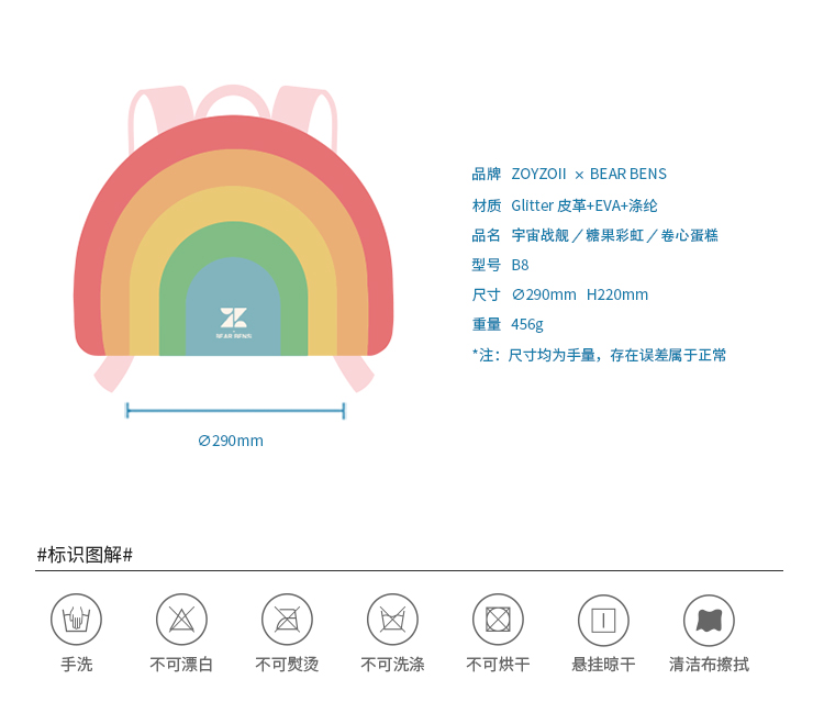 zoyzoii儿童书包幼儿园3-5岁糖果彩虹可爱一年级女双肩包BEARBENS