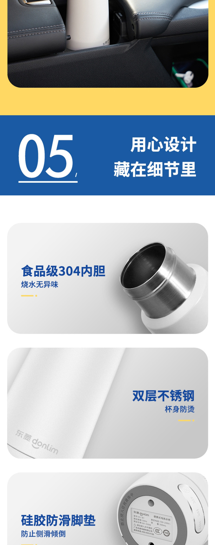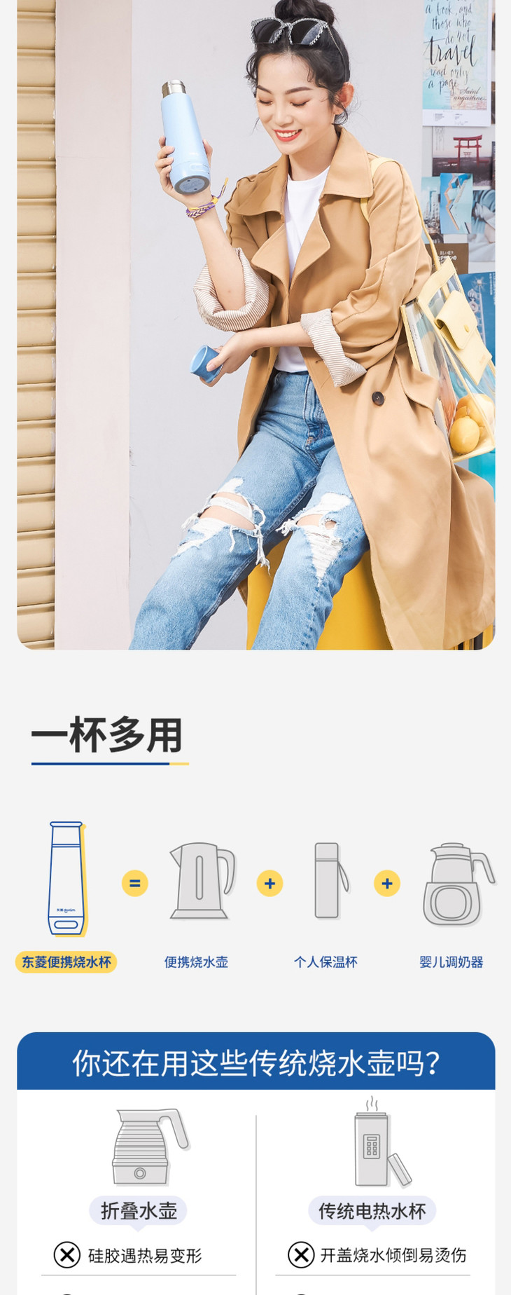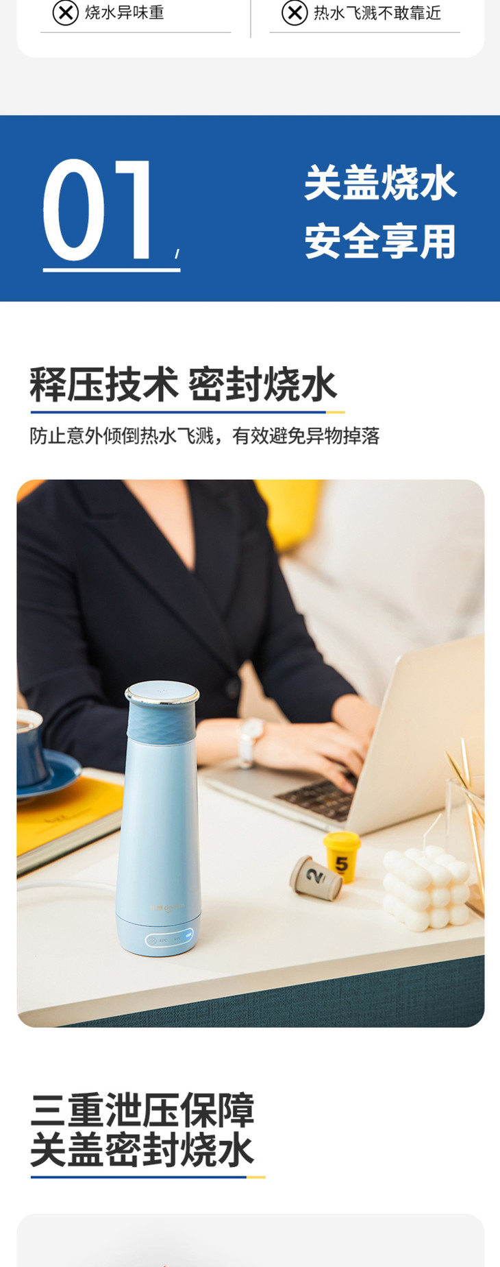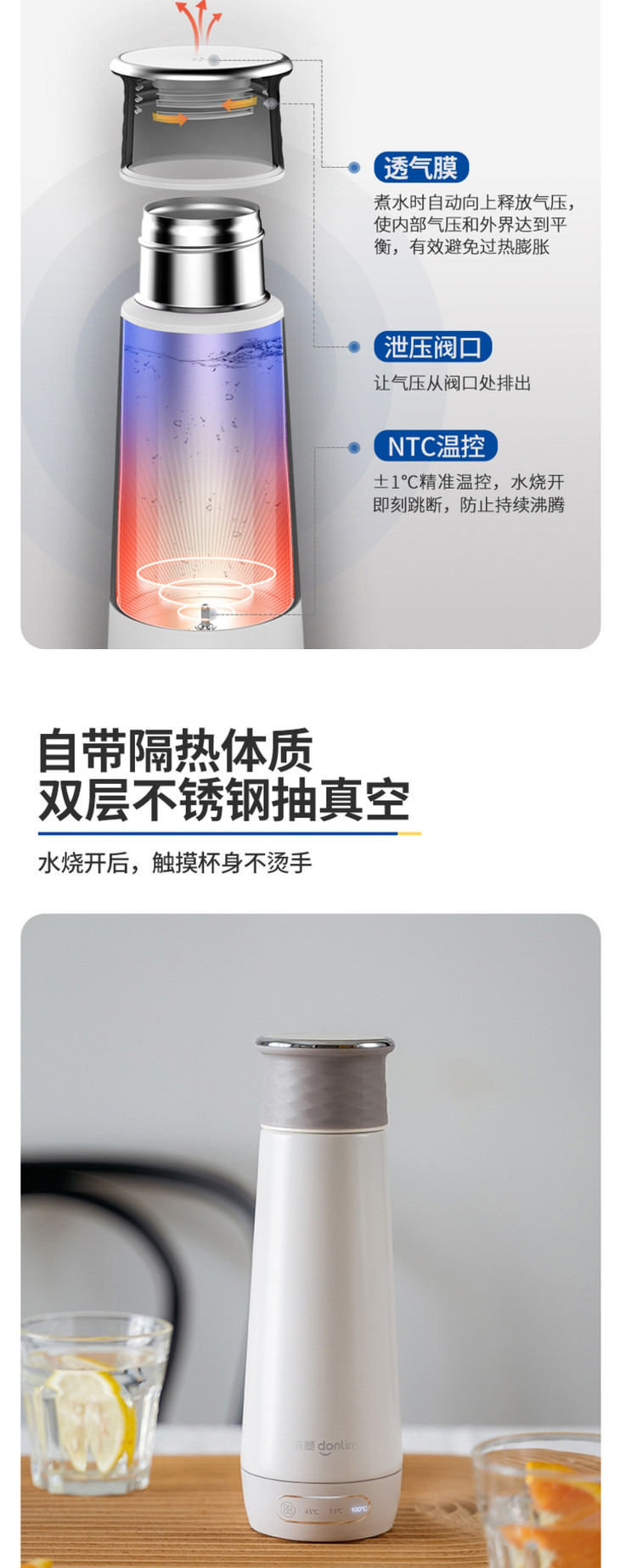 【东菱】东菱DL-B1电热烧水壶保温杯全自动小型迷你旅行便携式家用加热水杯水壶