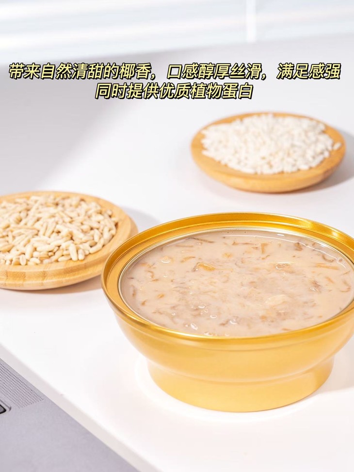 融合东南亚厚椰乳的香醇与超级谷物藜麦的高营养,打造清润不腻、滋养身心的现代轻食养选 厚椰乳:带来自然清甜的椰香,口感醇厚丝滑,满足感强,同时提供优质植物蛋白。