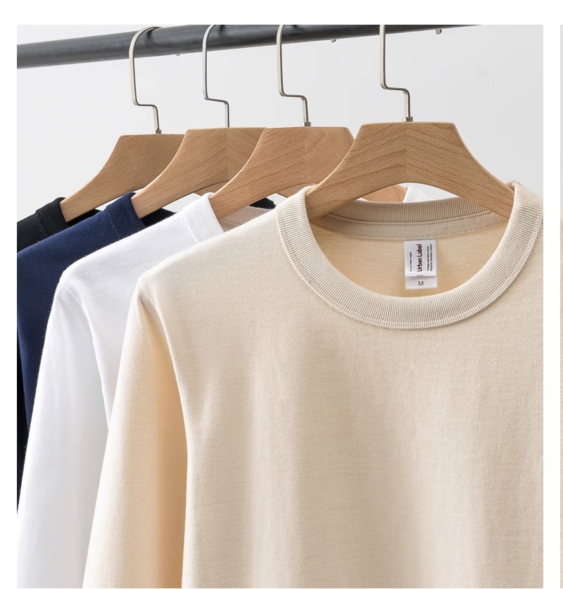 【2件男女款任意选】三本针重磅纯棉圆领长袖T恤 男女同款纯色秋冬打底衫 正肩直筒设计 上身挺拔舒适