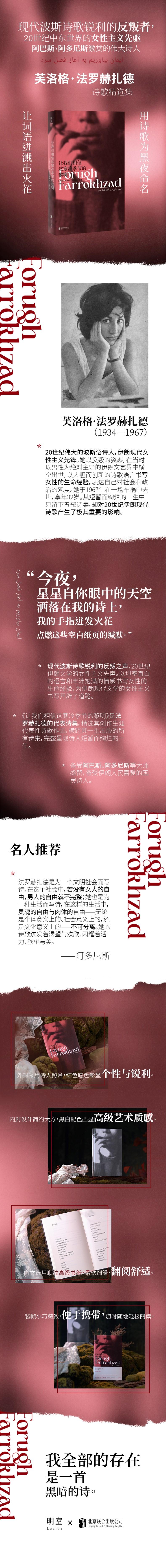 芙洛格·法罗赫扎德是伊朗现代诗歌目前杰出的诗人,她以大胆叛逆的生活方式和坦率直白的诗歌语言,在以男性为绝对主导的伊朗诗坛横空出世。法罗赫扎德的诗歌充盈着磅礴的生命力,并以其独有的视野和感受力书写女性的生命经验。 《让我们相信这寒冷季节的黎明》是法罗赫扎德的中译本,精选其创作生涯代表性诗歌作品,横跨其一生出版的所有诗集。尽管英年早逝,但法罗赫扎德短暂而绚烂的一生却在社会和艺术两个领域领风气之先,并在诗歌领域达到了一个绝对高度。其作品不仅为伊朗文学,也为世界文学带来了崭新的气象,在世界范围内得到广泛传播。