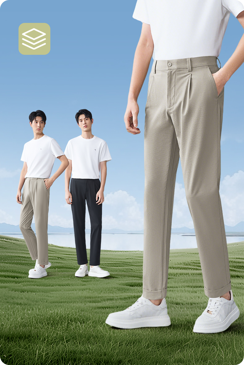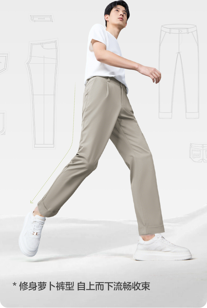 【萝卜裤】柒牌男装2026春季九分锥型都市休闲商务中青年梭织长裤130H70200