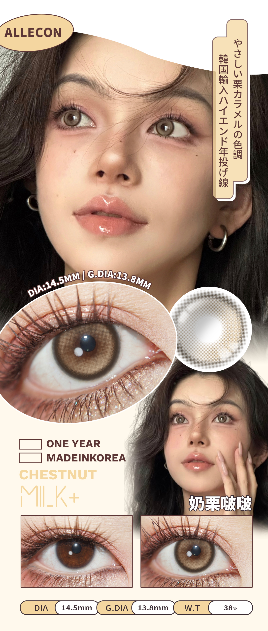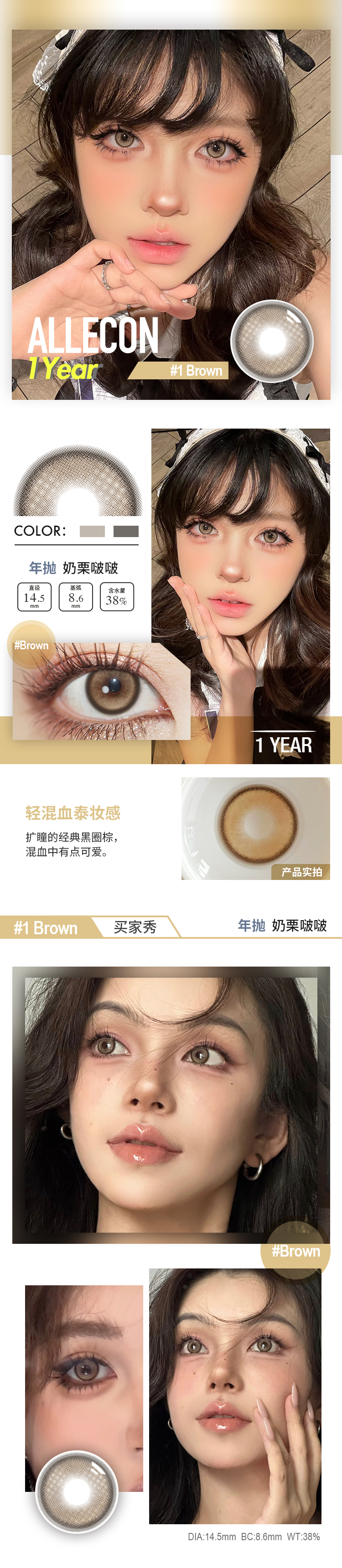 AlleCon 年抛 奶栗啵啵 (棕 14.5mm,最高1000度)
