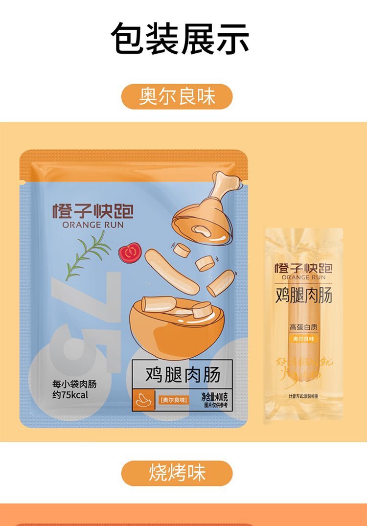 橙子快跑鸡肉肠 烧烤/奥尔良等口味 8根/400g