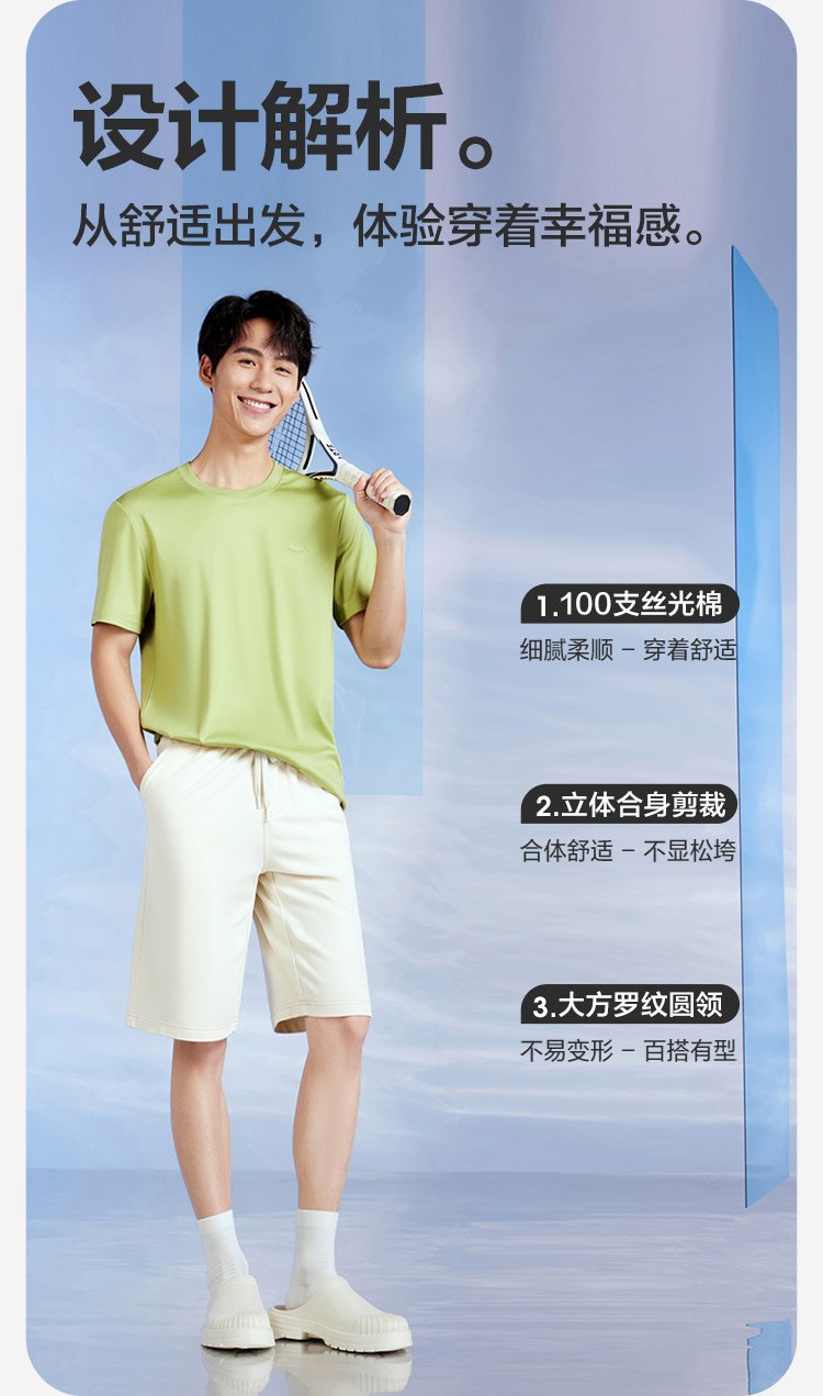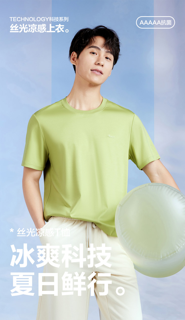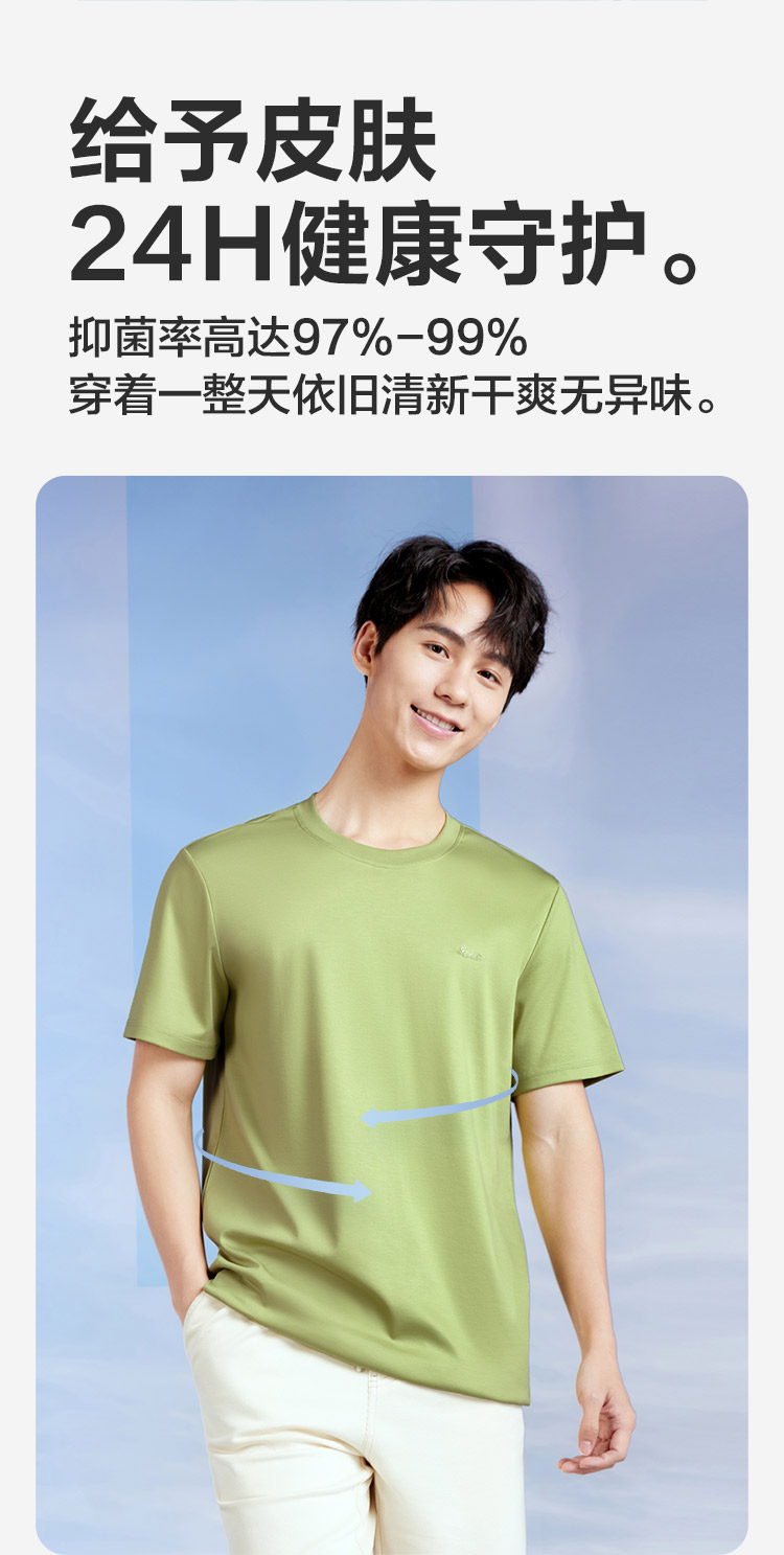 柒牌短袖T恤男2024夏季凉感5A抗菌时尚休闲打底内衣男士圆领上衣 126F70050
