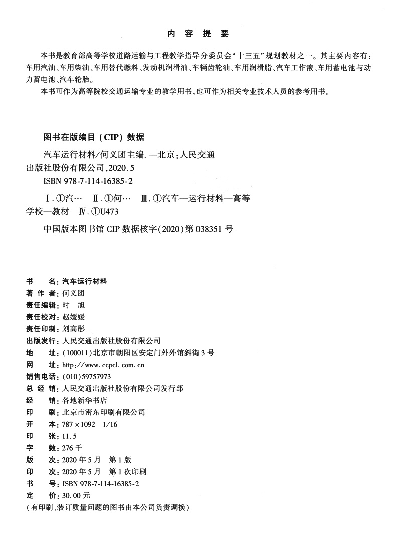 书名:汽车运行材料