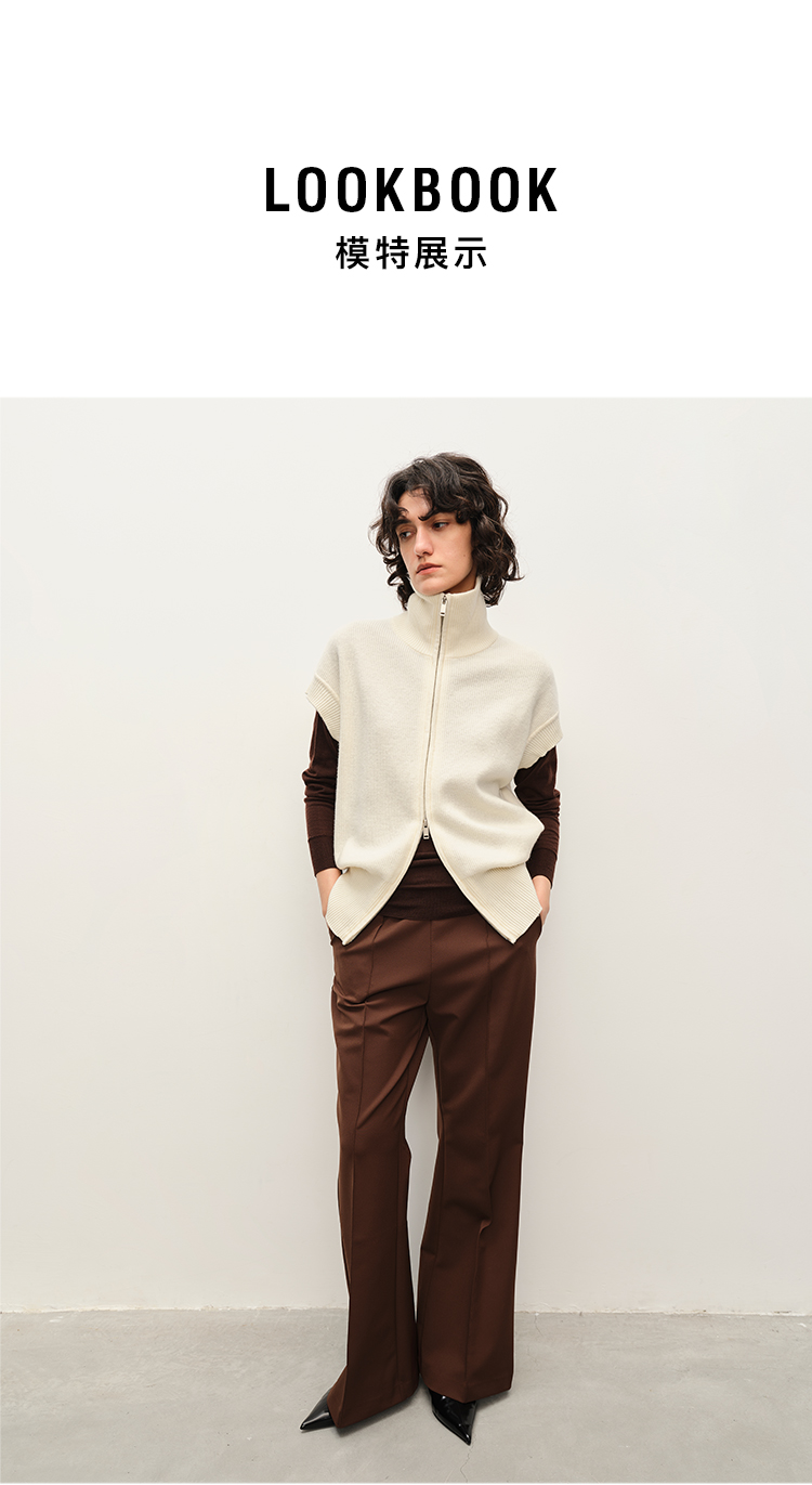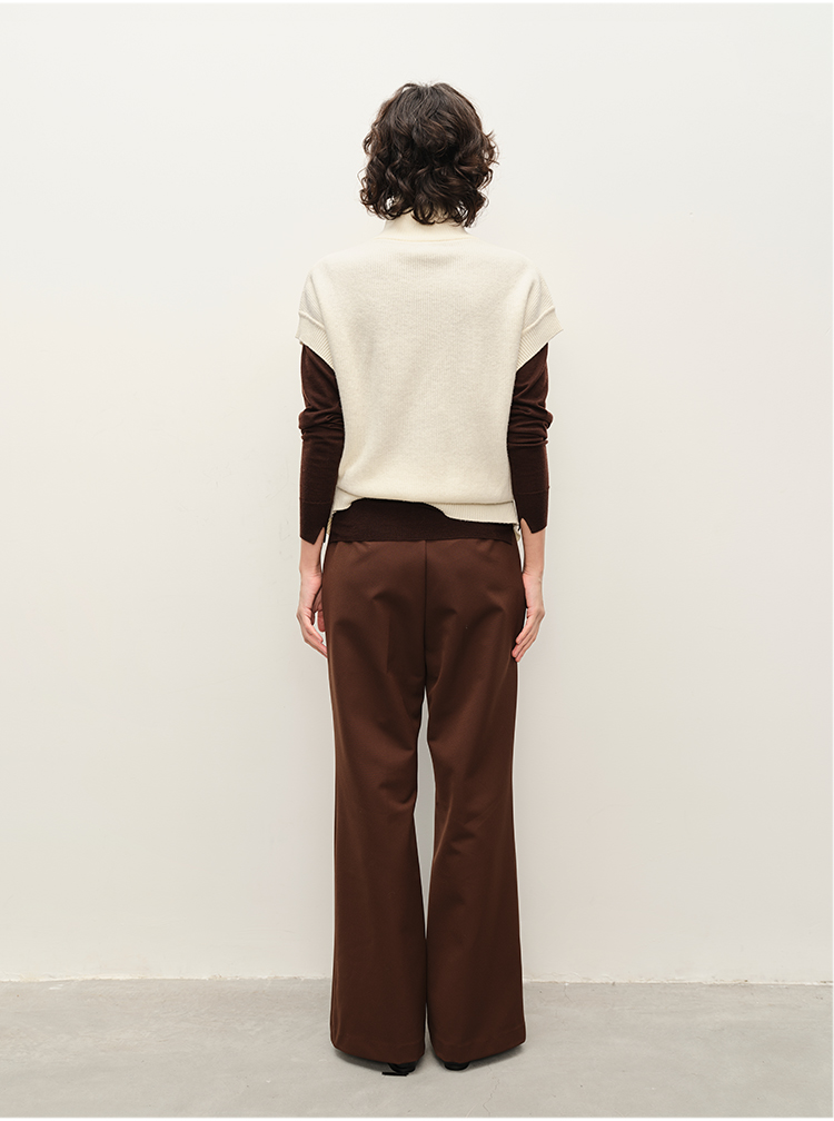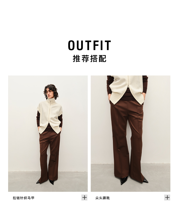 HIDEMI 懒人必备/奶昔白肌理感亚麻套装 圆领衬衫/垂直感侧开衩长裤
