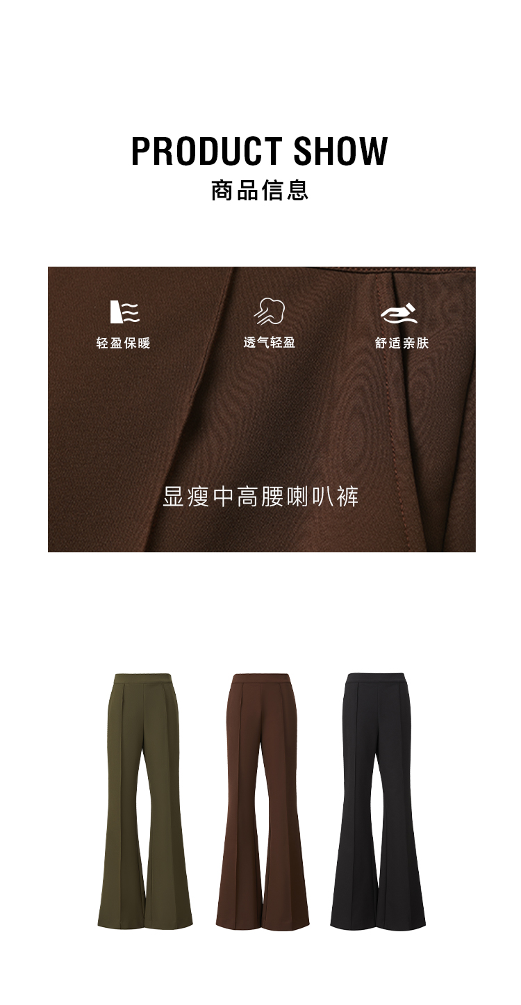 HIDEMI 显瘦中高腰喇叭长裤神裤 军绿色/咖啡色/黑色