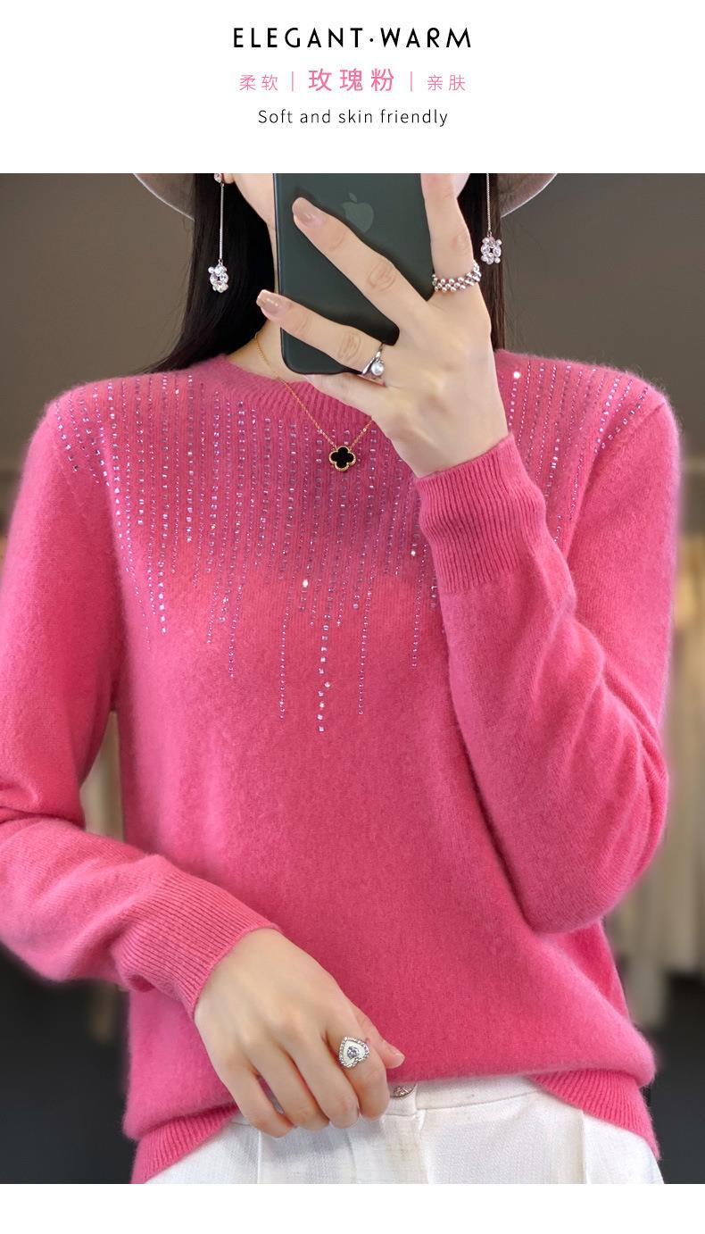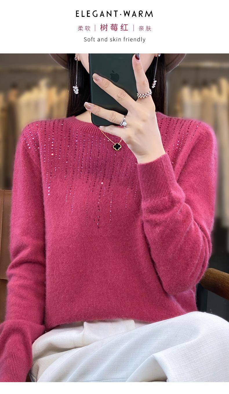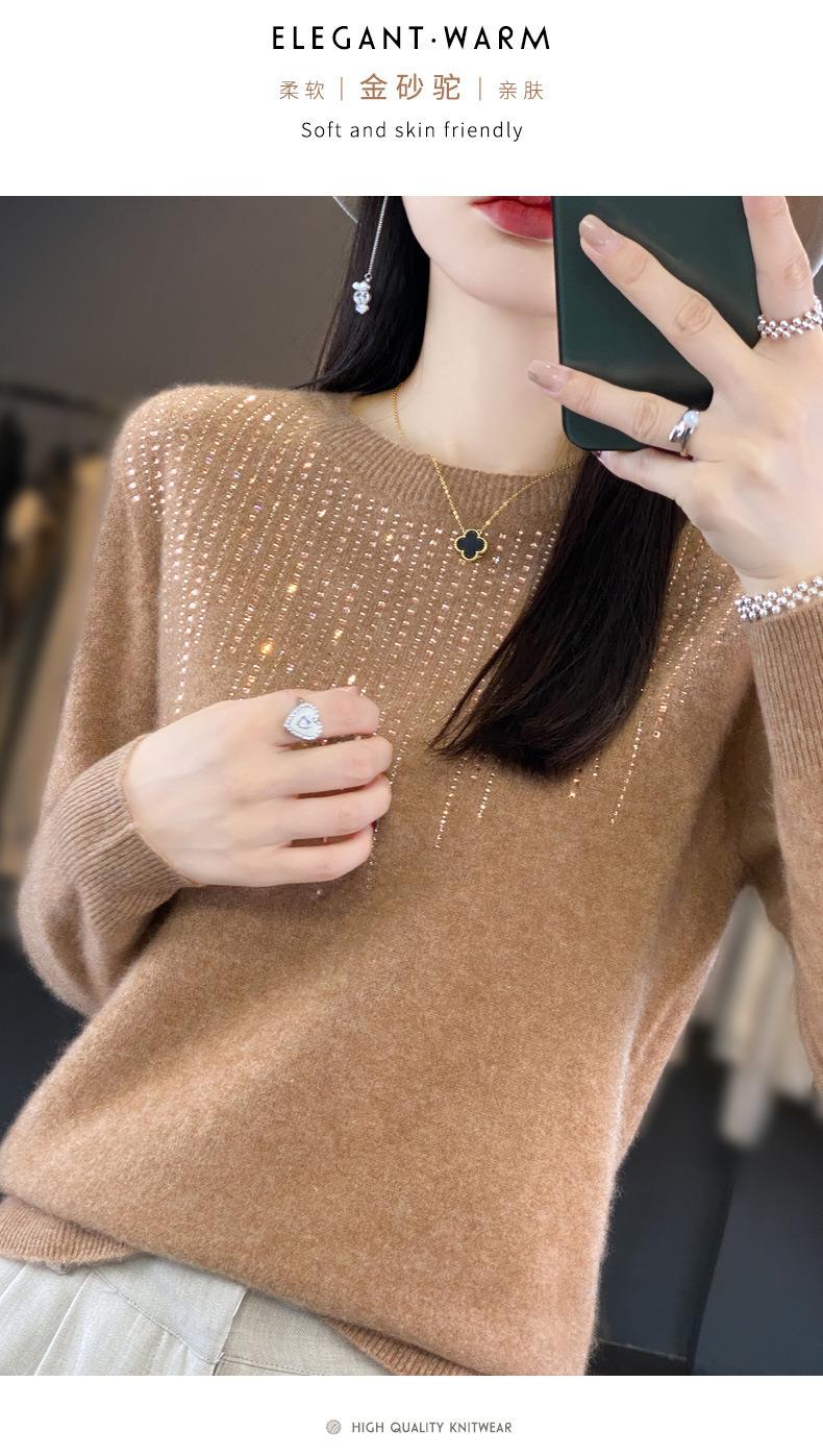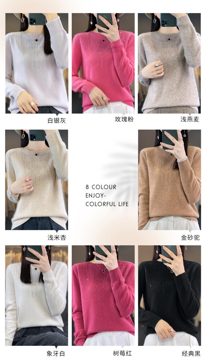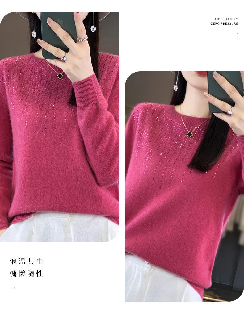 2023秋冬新款女圆领长袖套头亮片针织打底衫 安迪绒一线成衣无缝