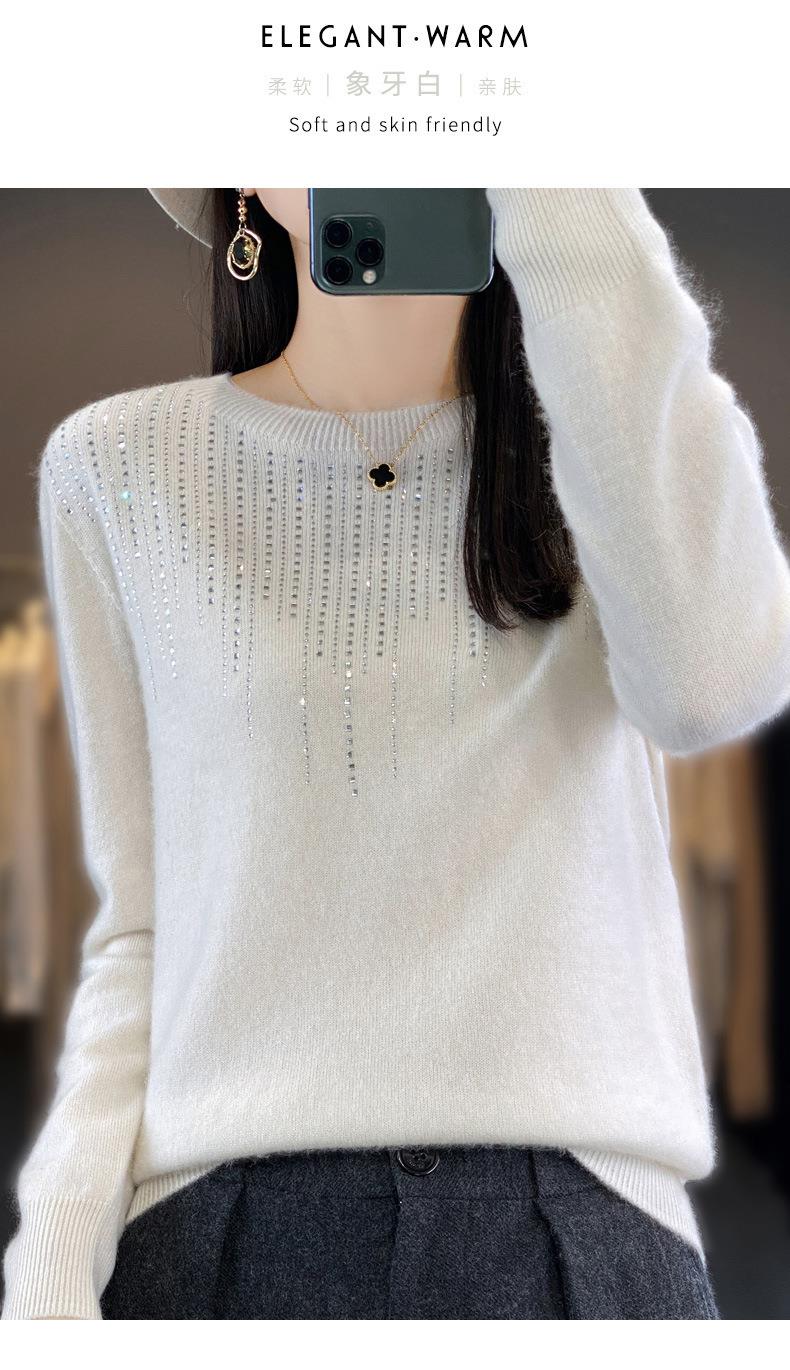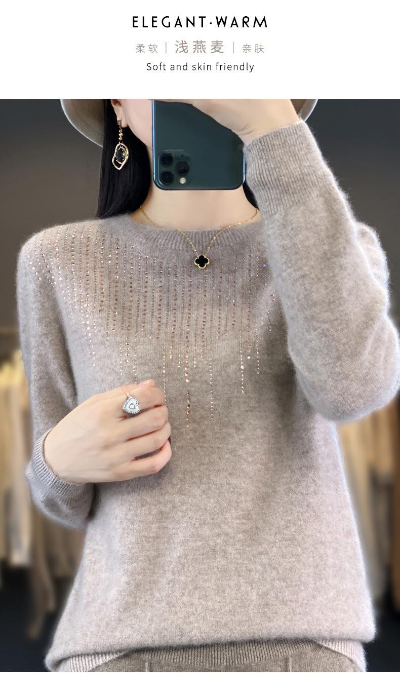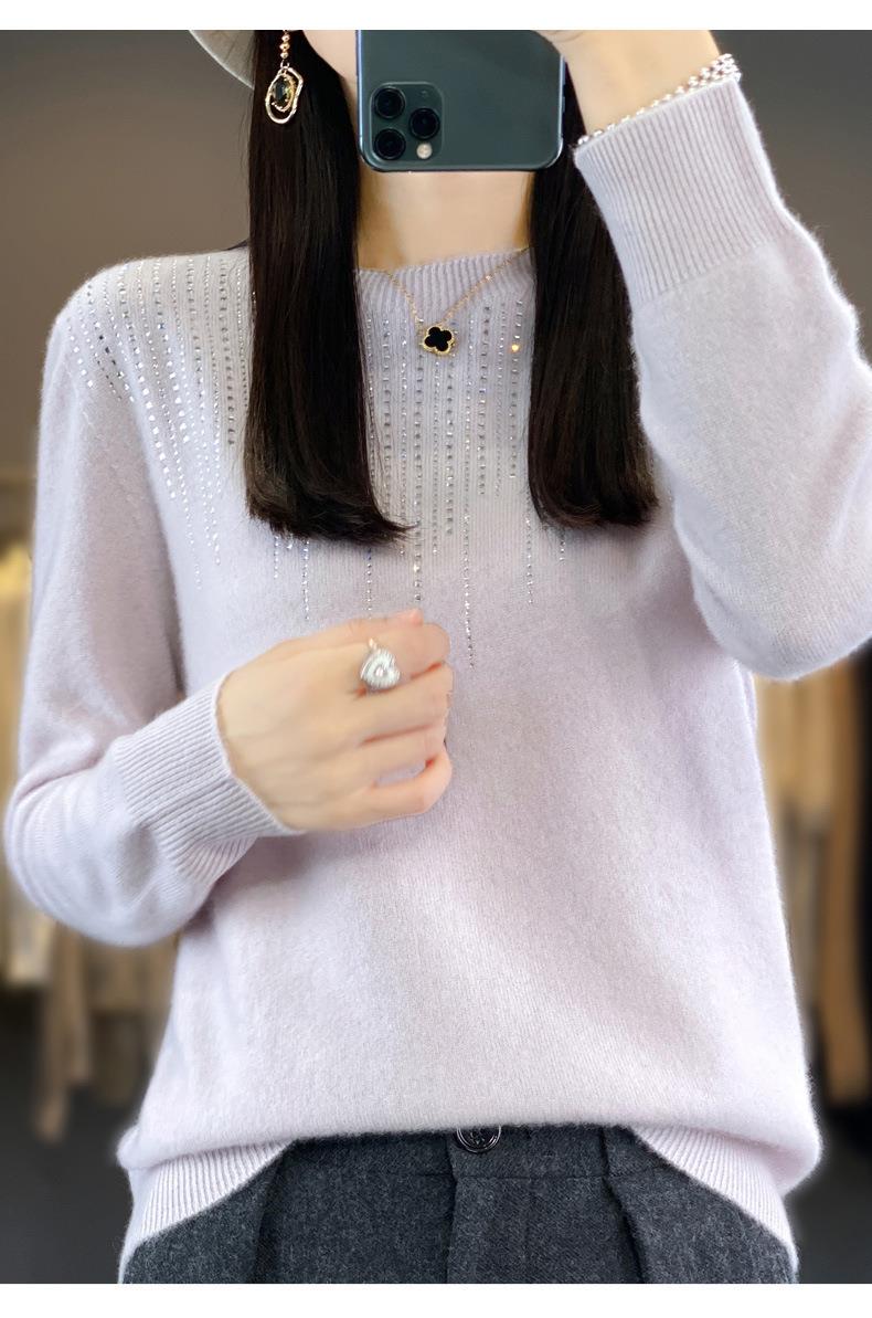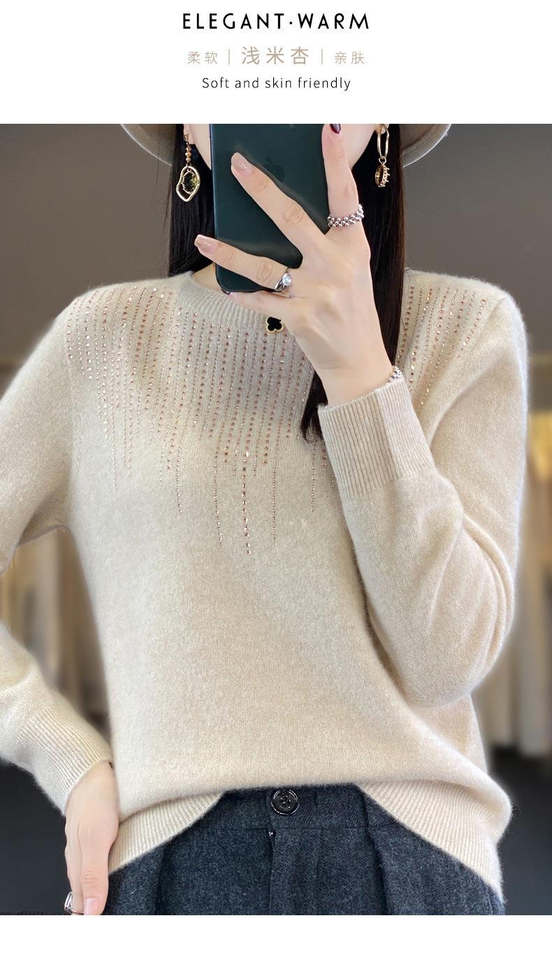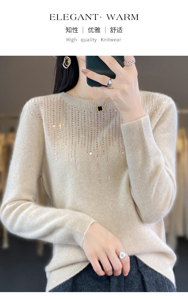 2023秋冬新款女圆领长袖套头亮片针织打底衫 安迪绒一线成衣无缝