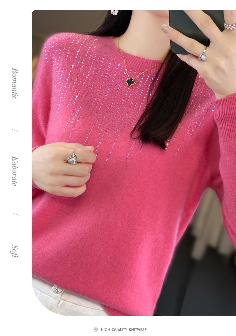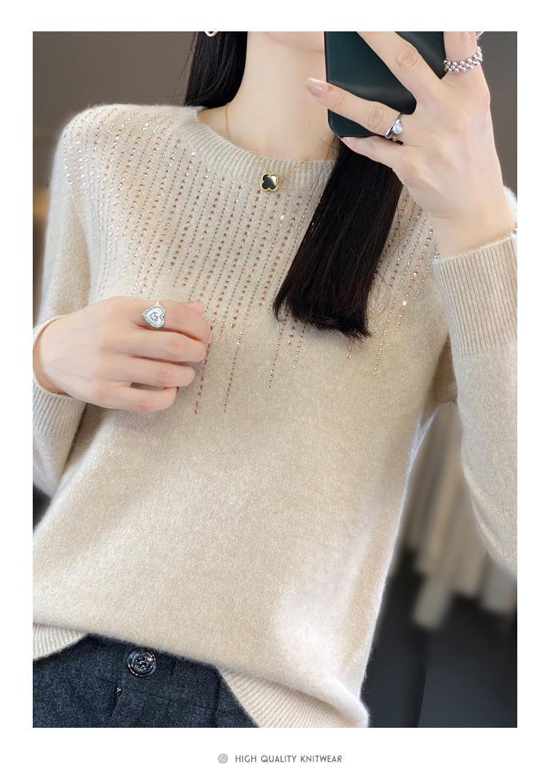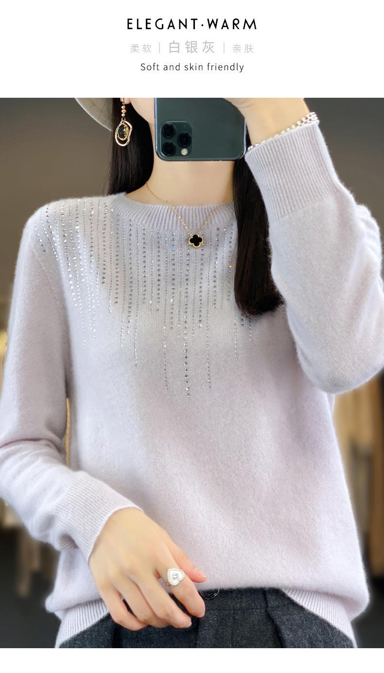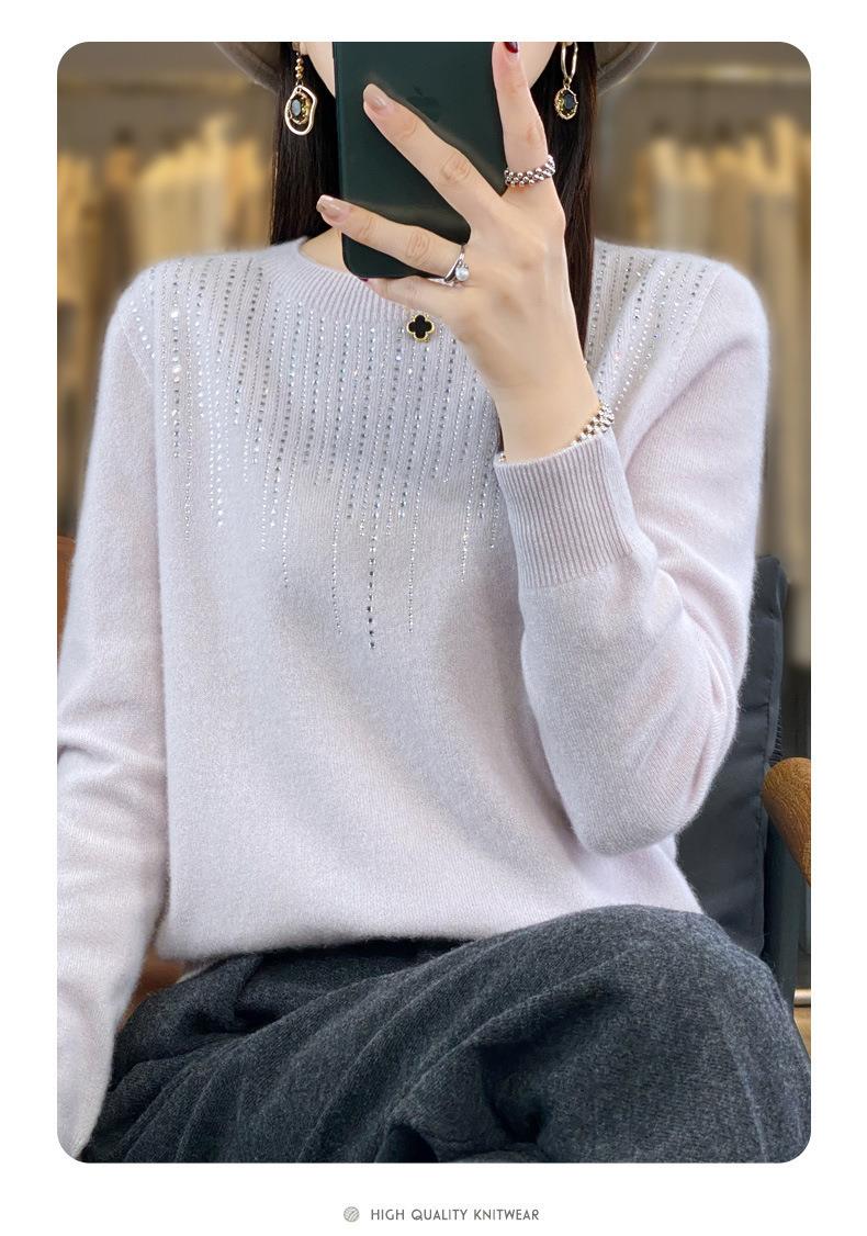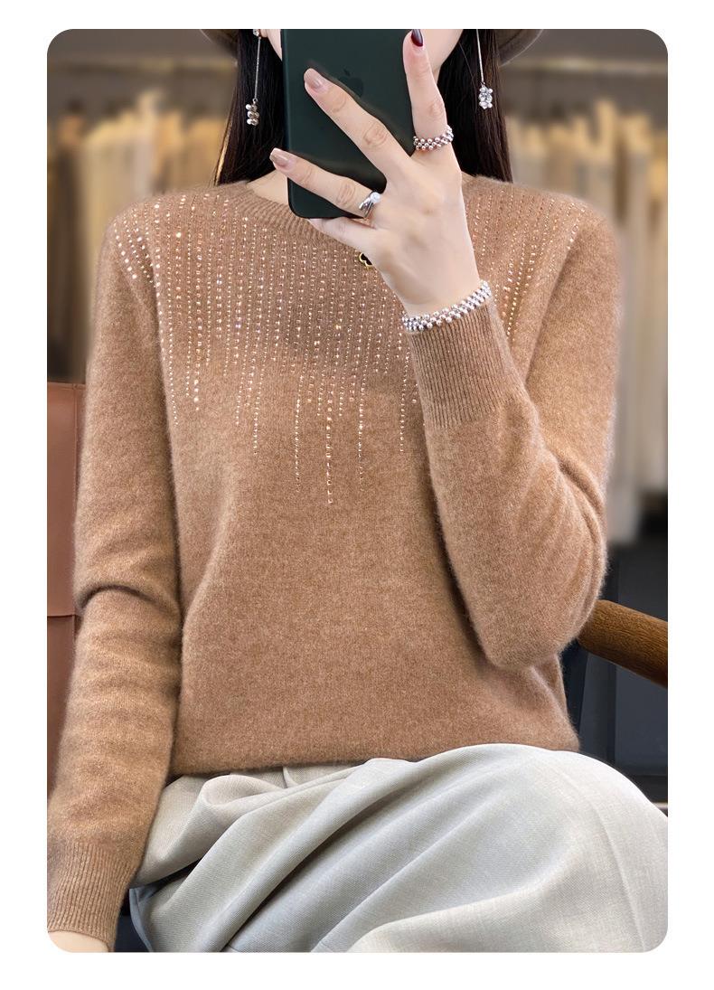 2023秋冬新款女圆领长袖套头亮片针织打底衫 安迪绒一线成衣无缝