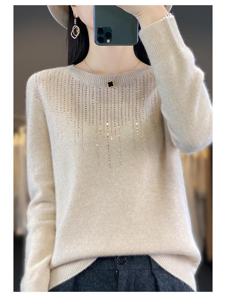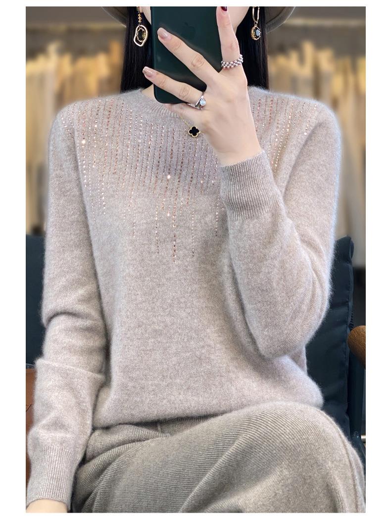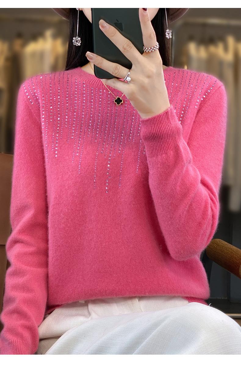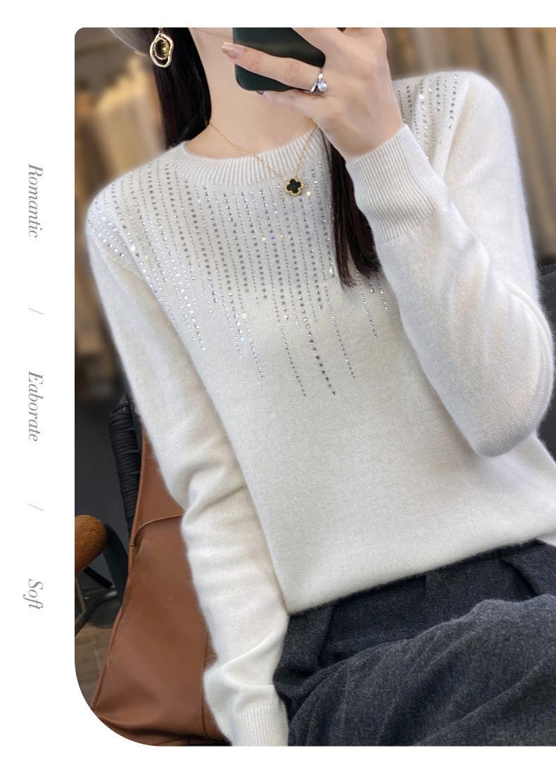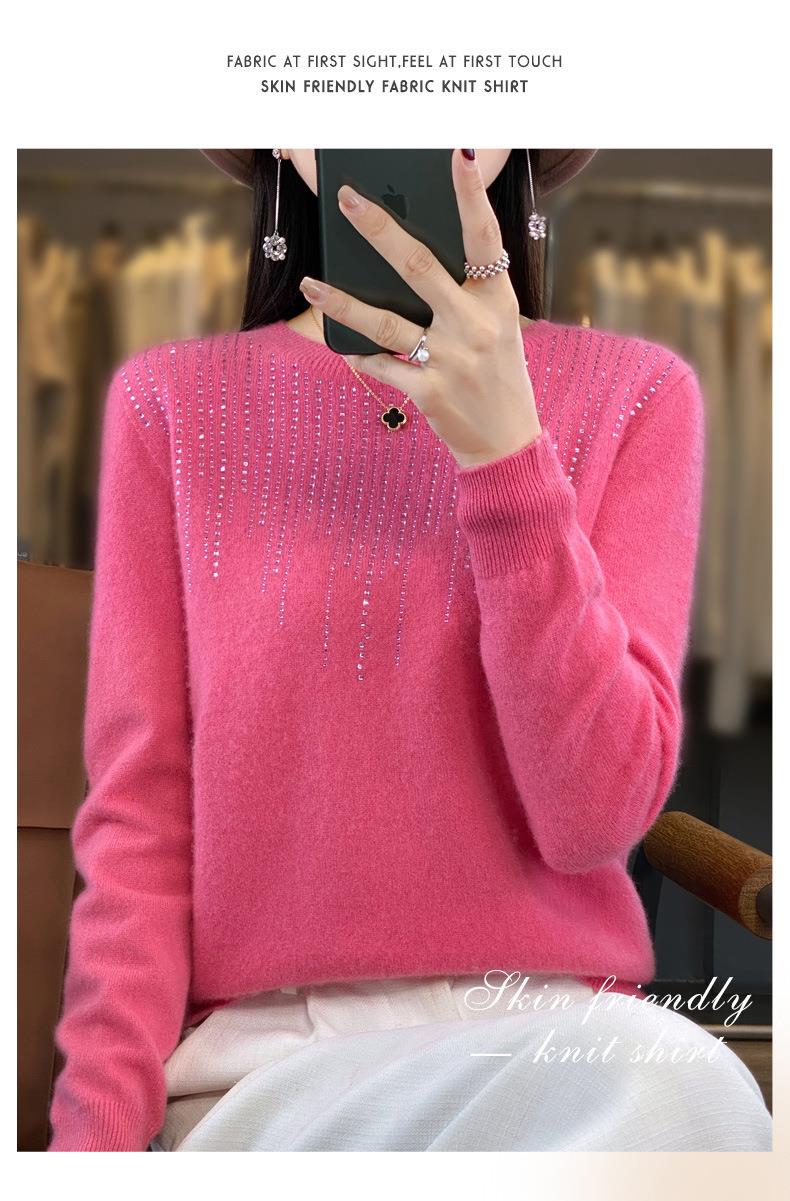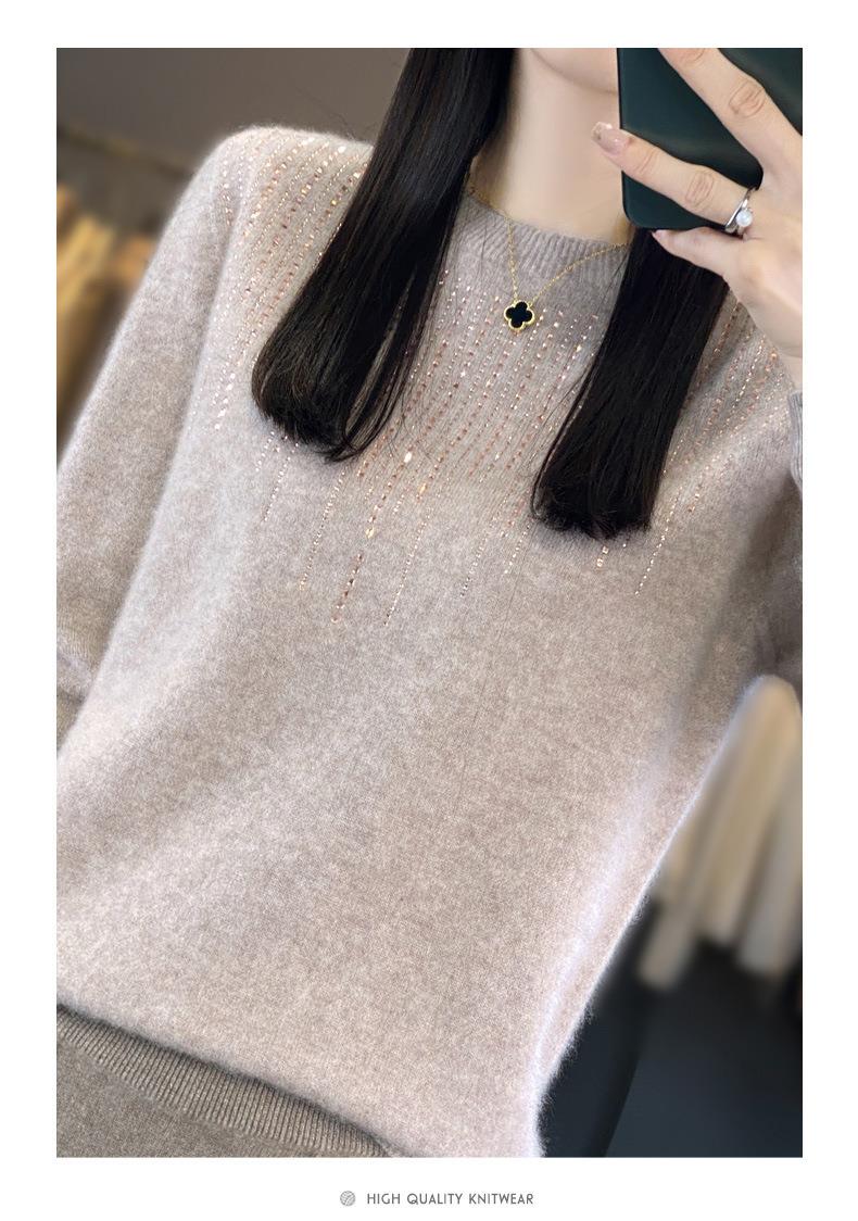 2023秋冬新款女圆领长袖套头亮片针织打底衫 安迪绒一线成衣无缝