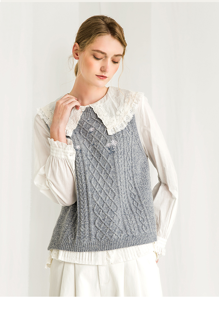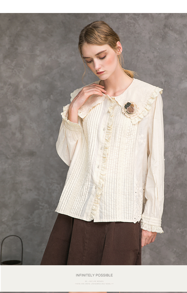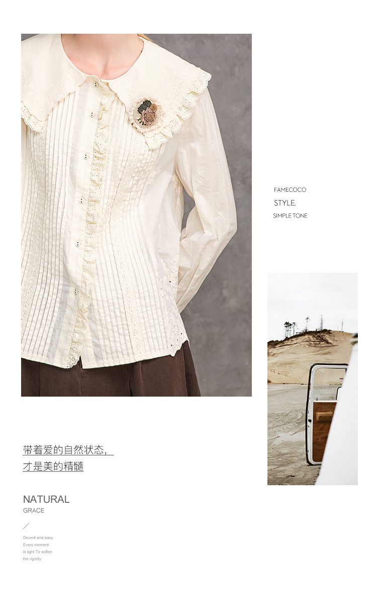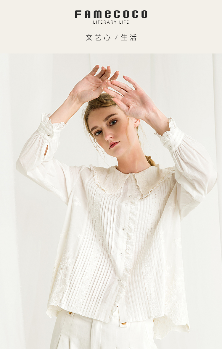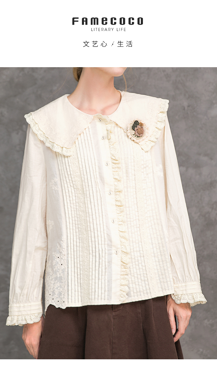 Famecoco范可儿娃娃领衬衫秋冬洋气时尚气质衬衣F218BA003