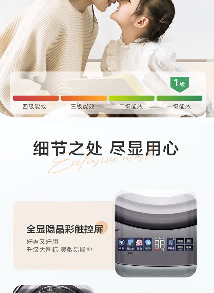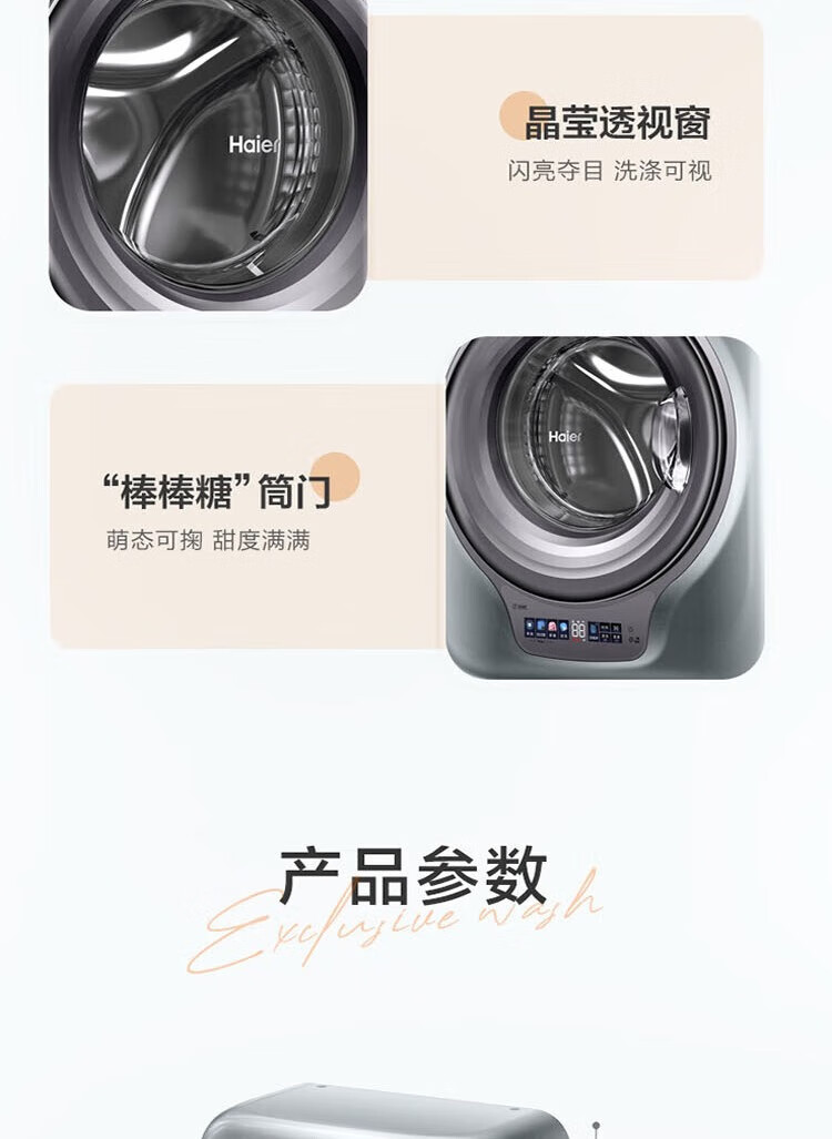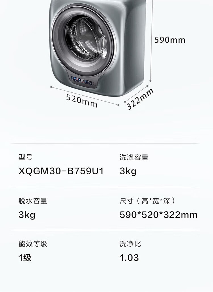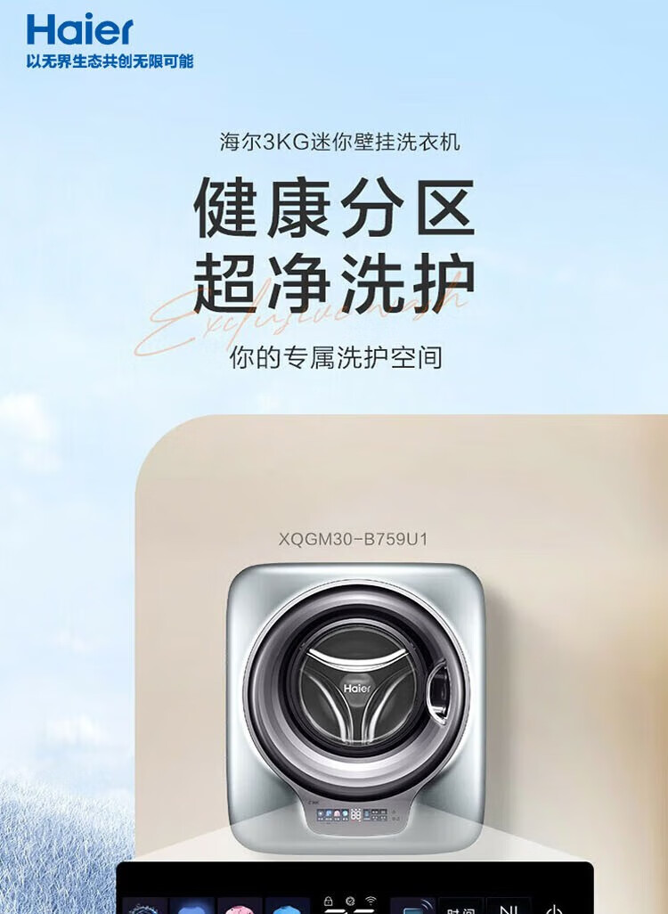 海尔壁挂洗衣机洗衣机小型内衣裤婴儿洗衣机全自动3公斤超净洗晶彩屏除菌螨99.99% XQGM30-B759U1