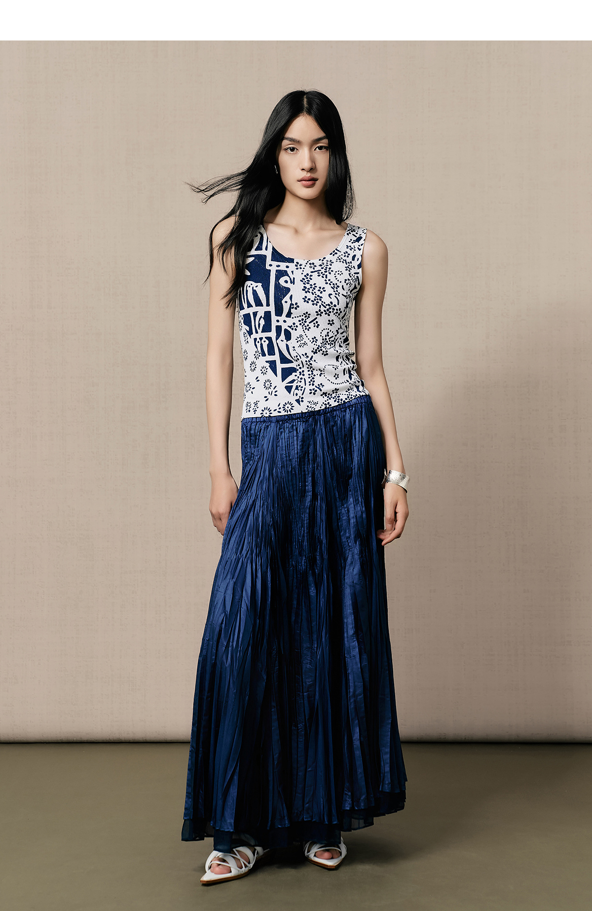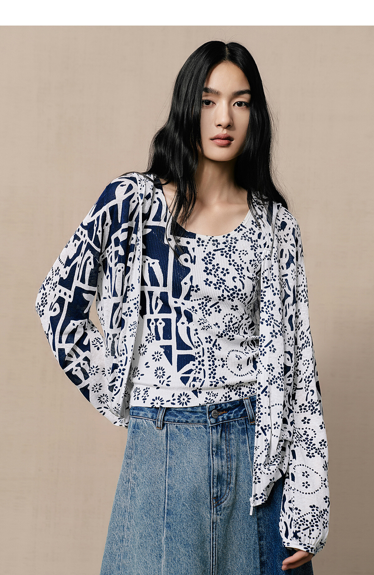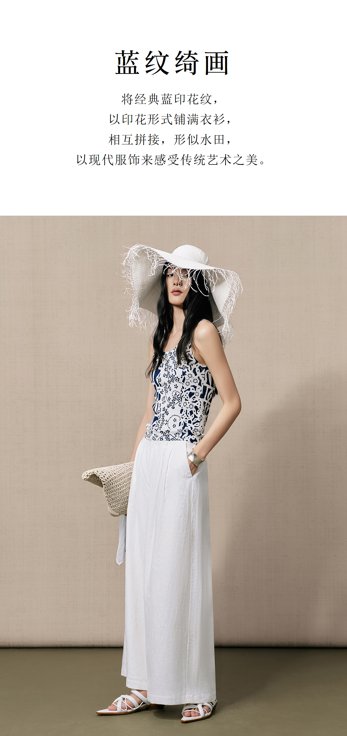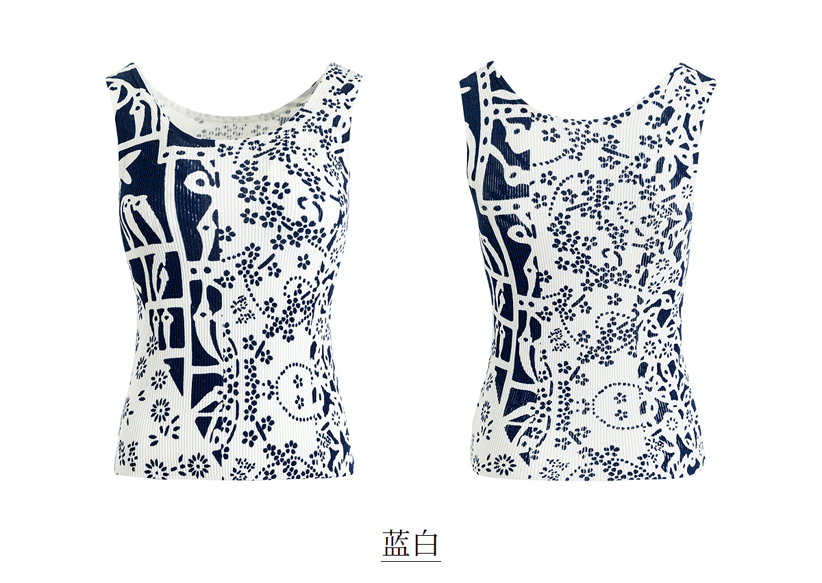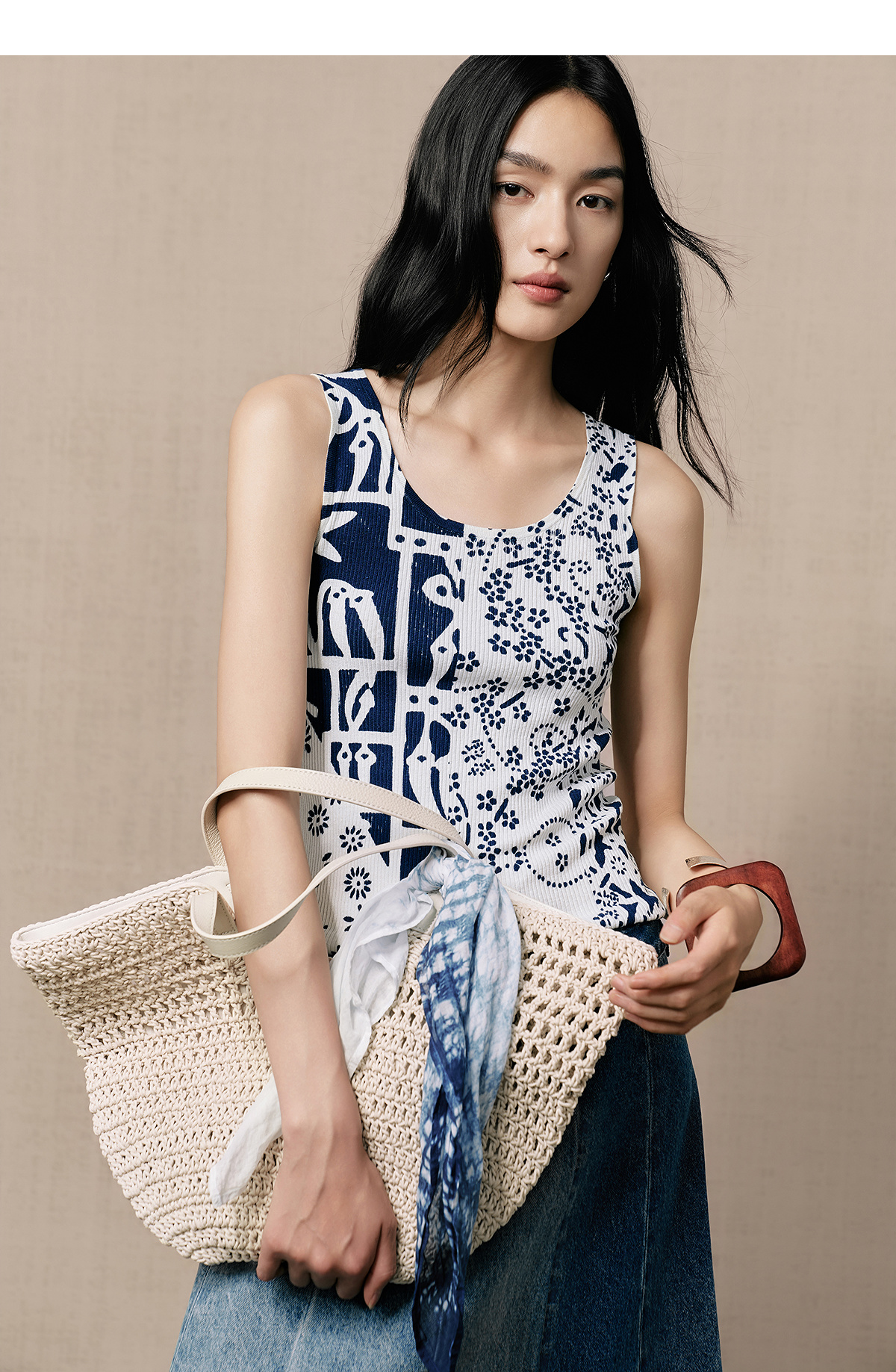 【林栖设计小店】桑蚕丝混纺毛织背心传统蓝印花纹2025夏季新款无袖上衣女1952526