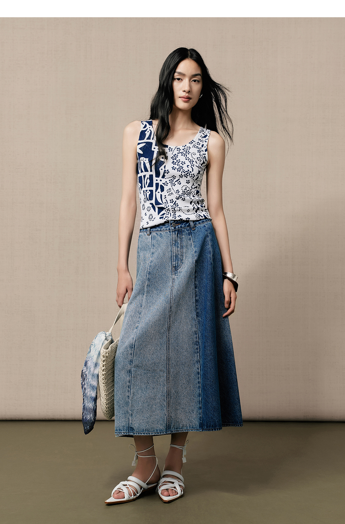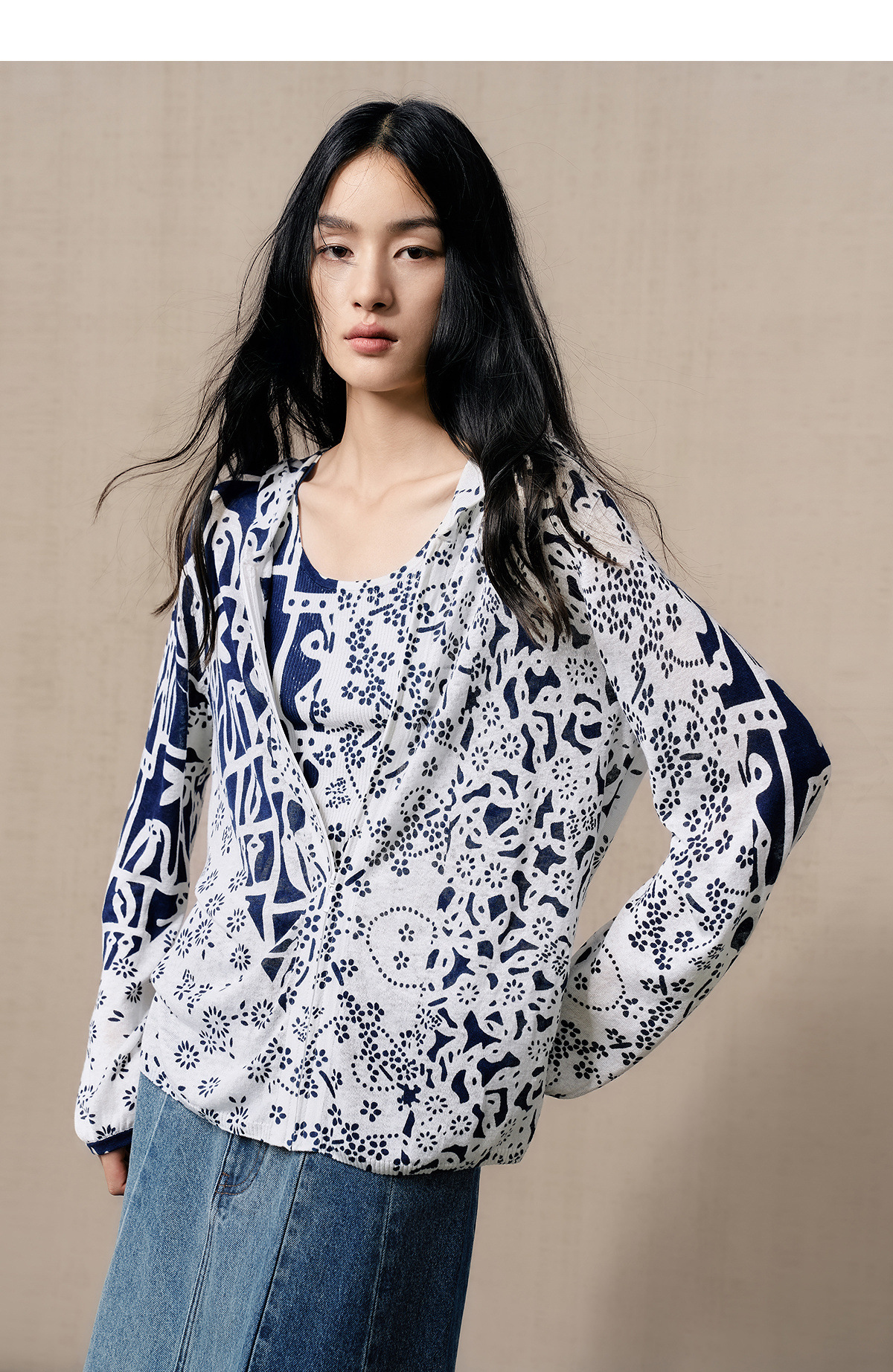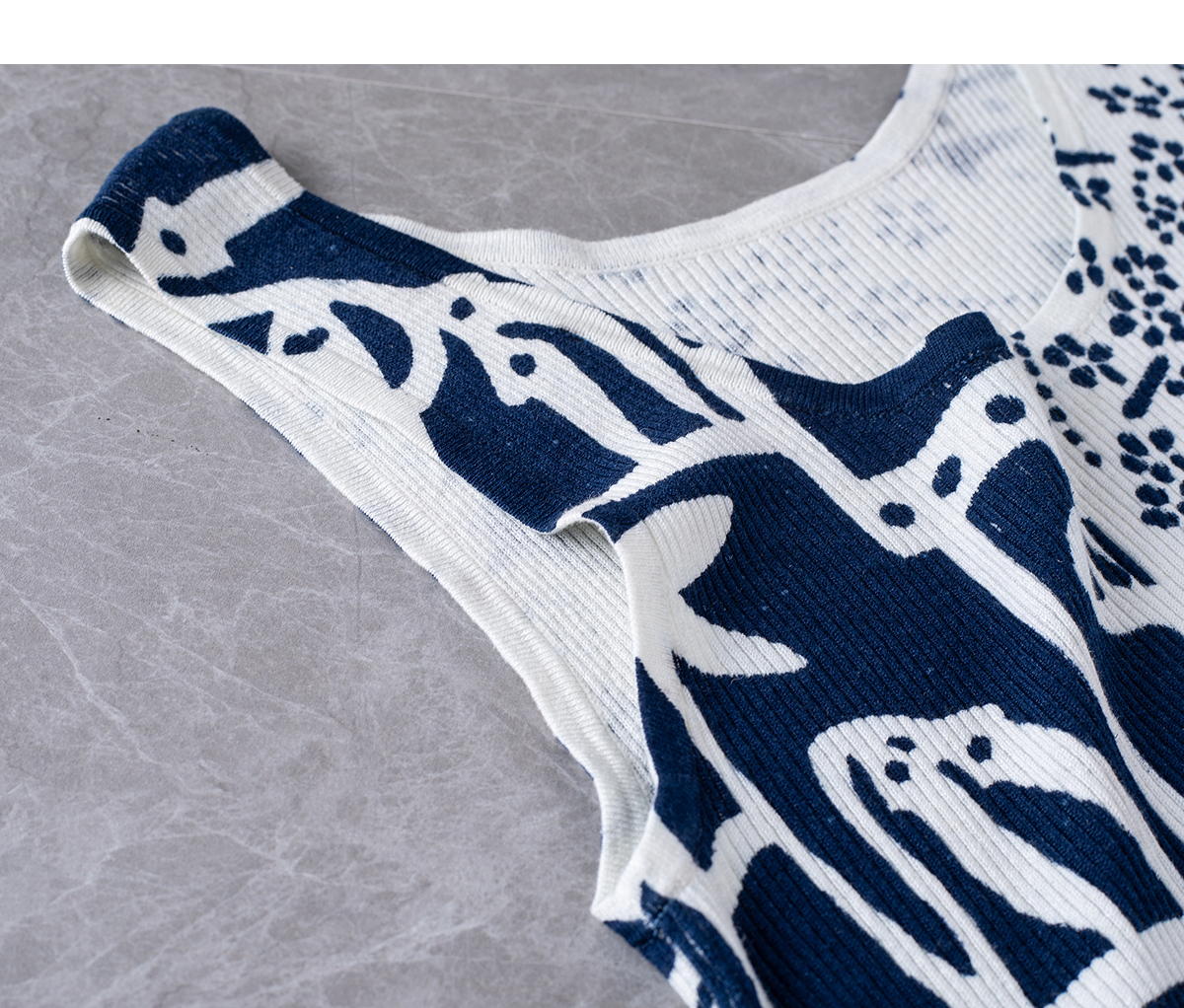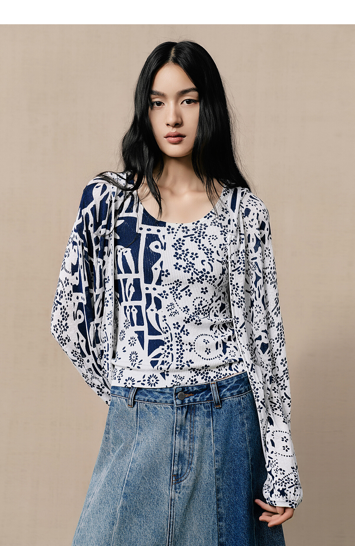 【林栖设计小店】桑蚕丝混纺毛织背心传统蓝印花纹2025夏季新款无袖上衣女1952526