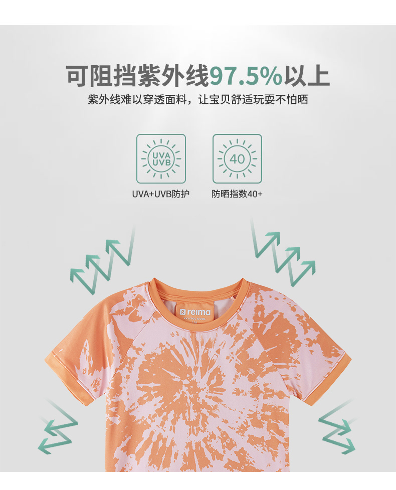 reima女孩儿童大童t恤春夏新款印花休闲防晒凉感运动圆领短袖