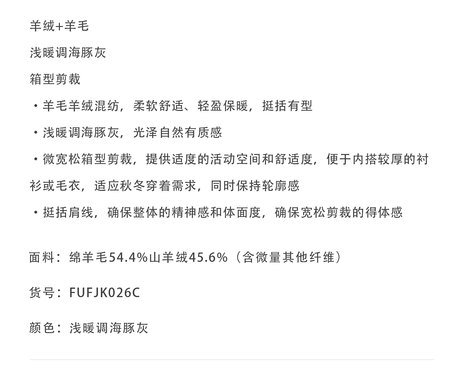callisto海豚灰羊毛羊绒混纺便西