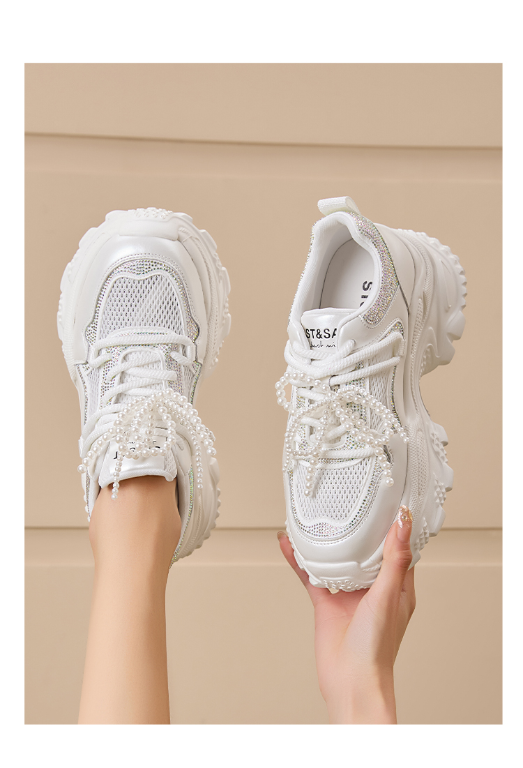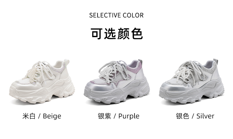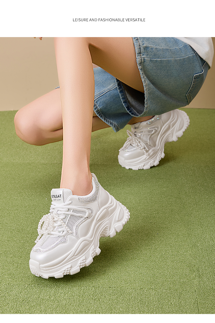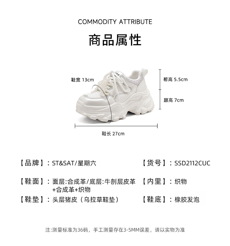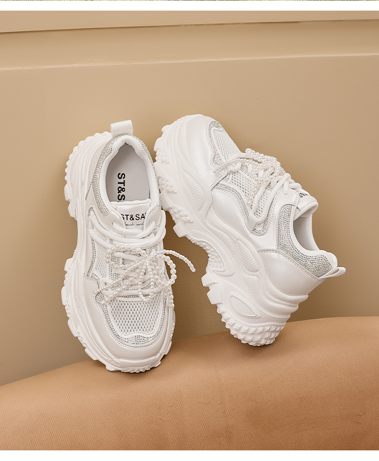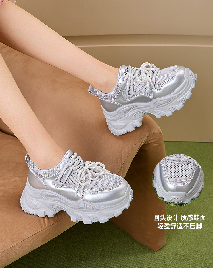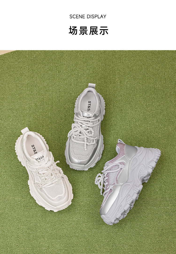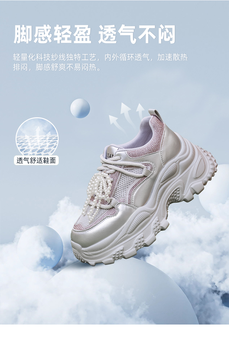 星期六珍珠闪钻网面透气厚底增高老爹鞋SSD2112CUC