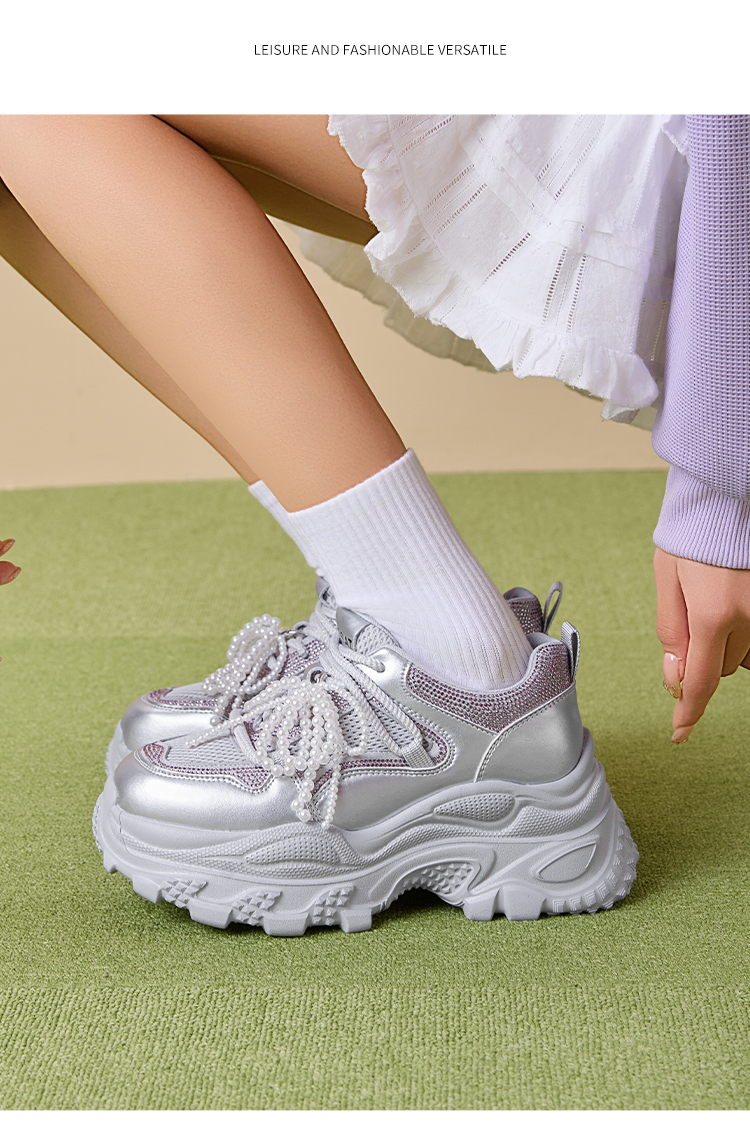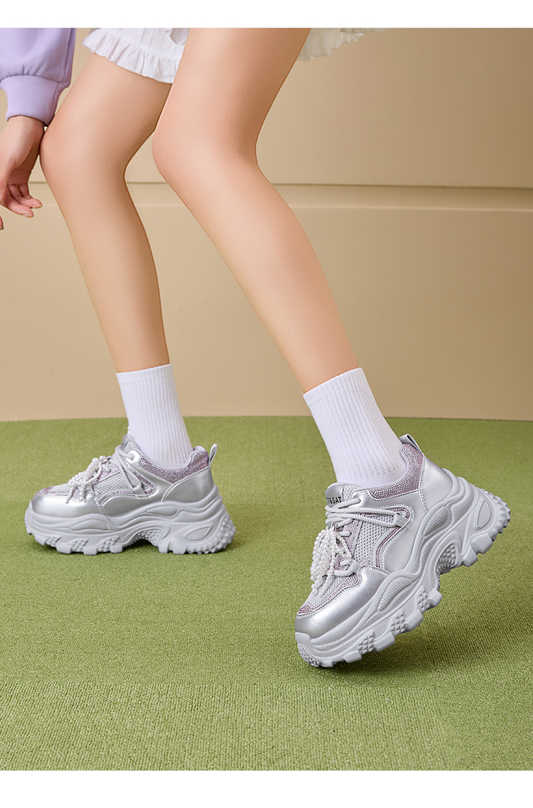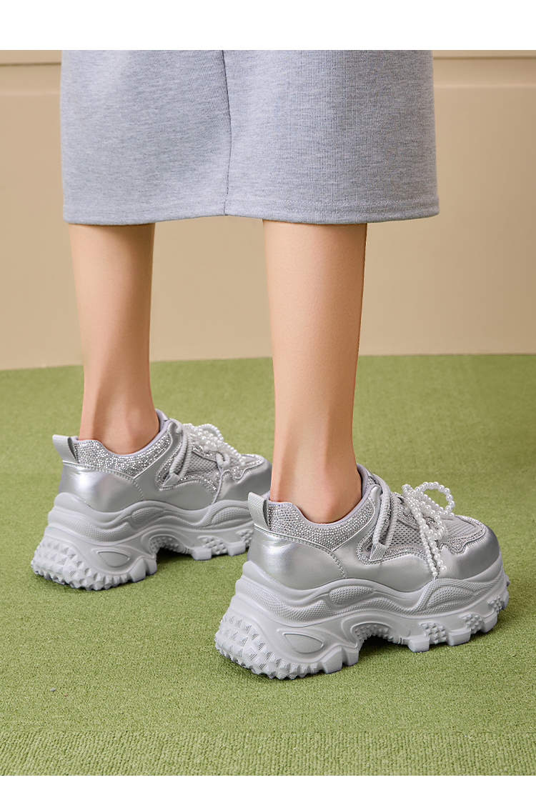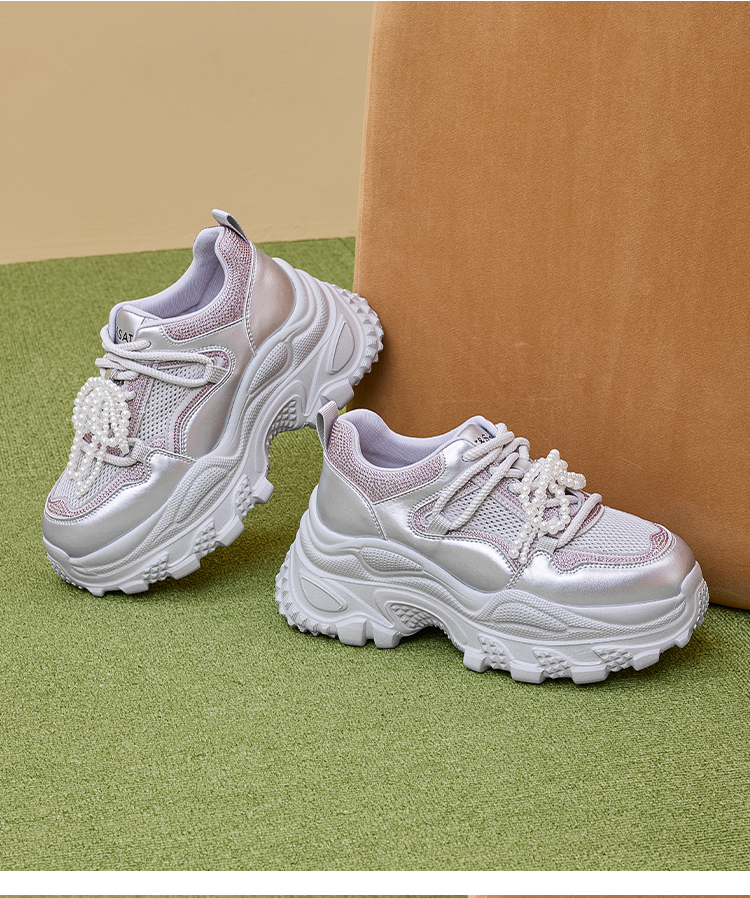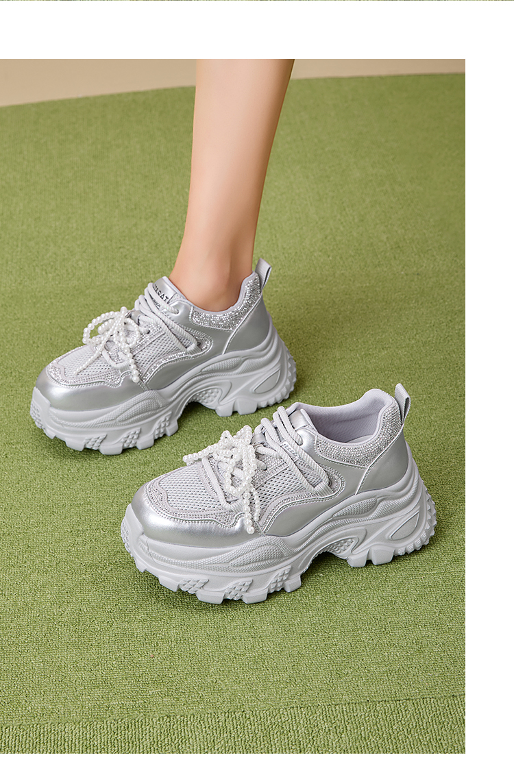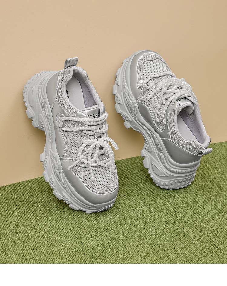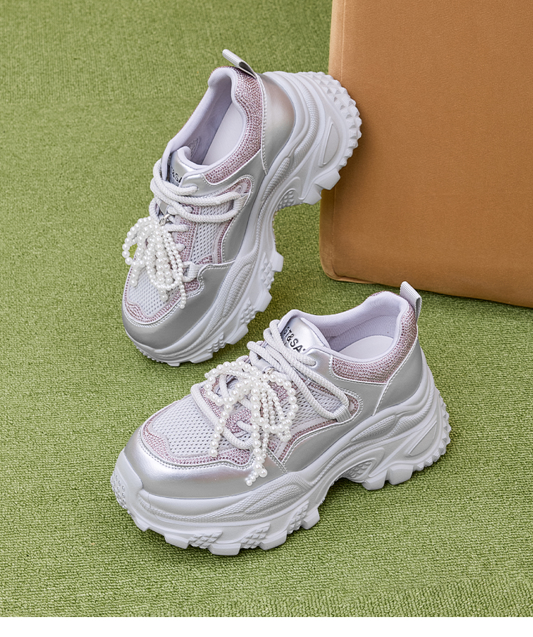 星期六珍珠闪钻网面透气厚底增高老爹鞋SSD2112CUC