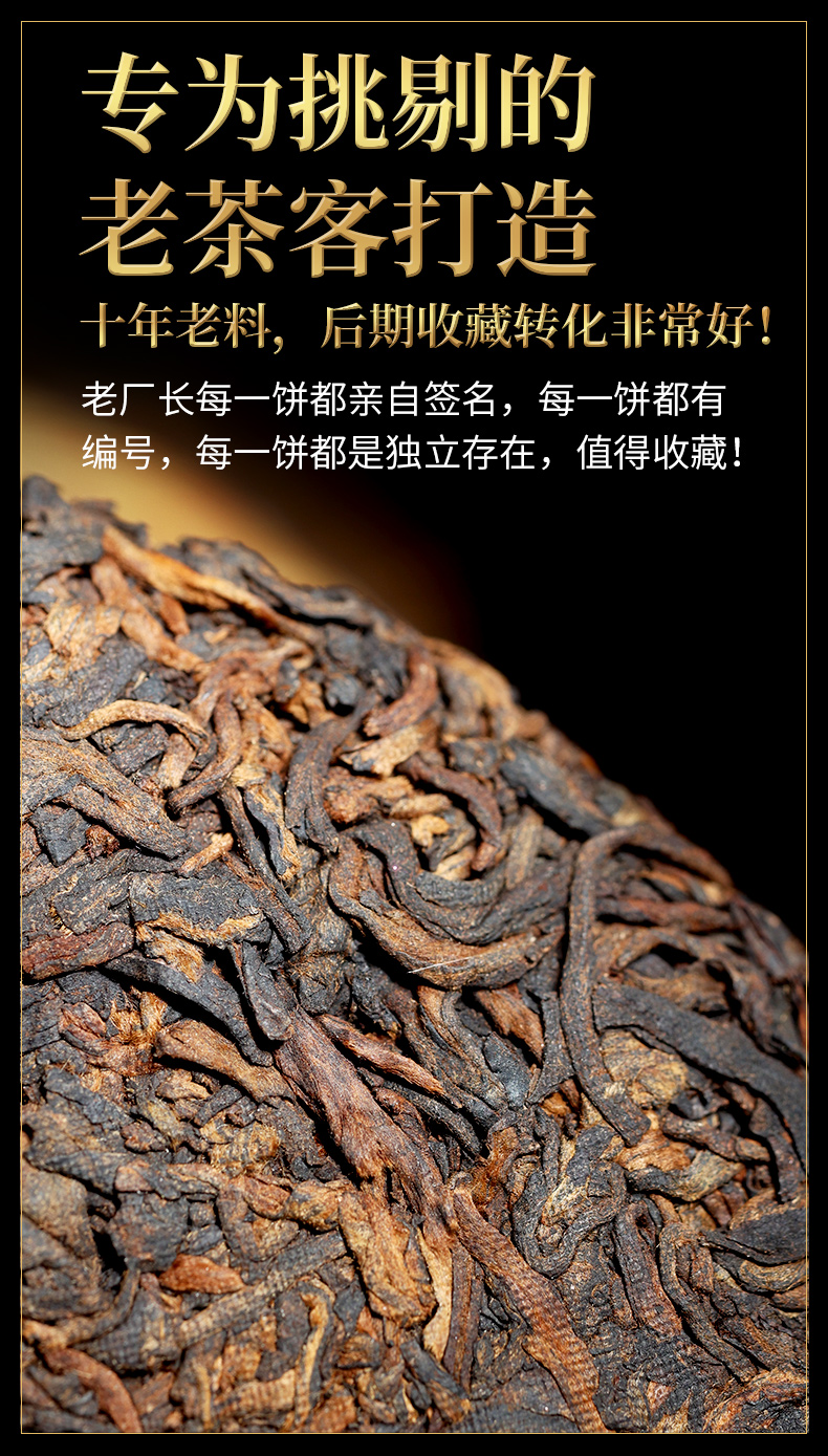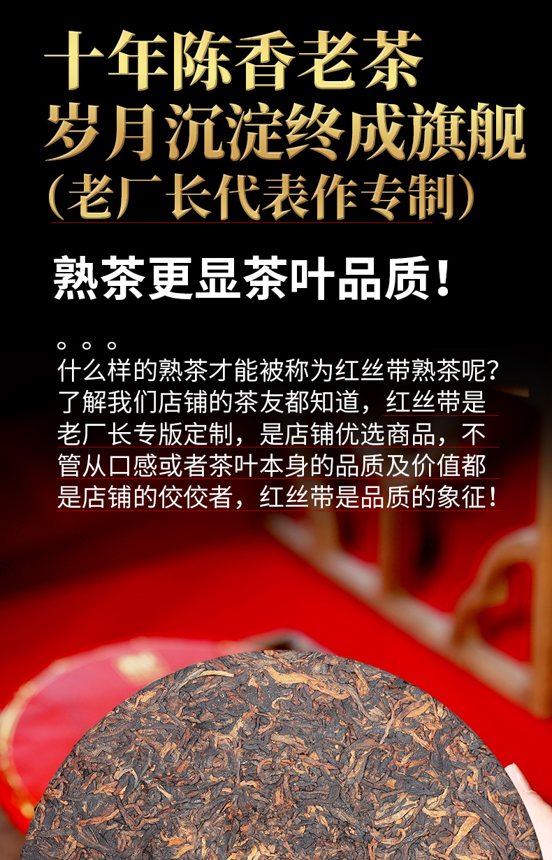 137 老厂长代表作之红丝带熟茶●亲笔签名旗舰版●请拿市场2000元以上的茶饼来PK。