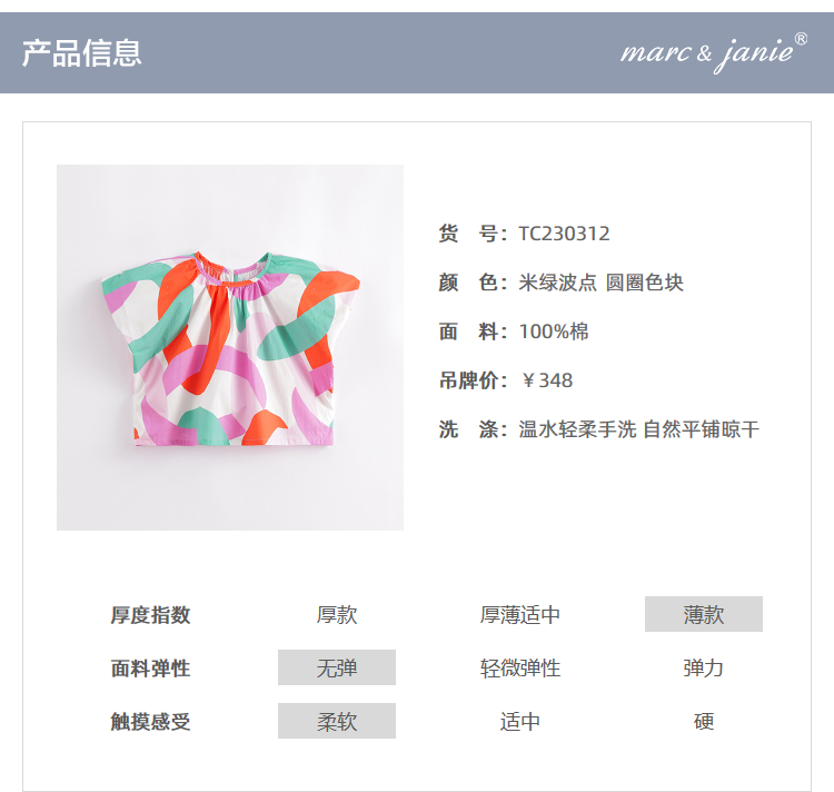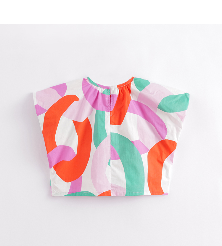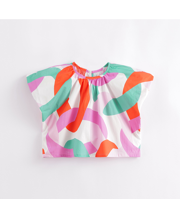 马克珍妮夏装新款 女童北欧风微鼓泡泡袖小衫230312