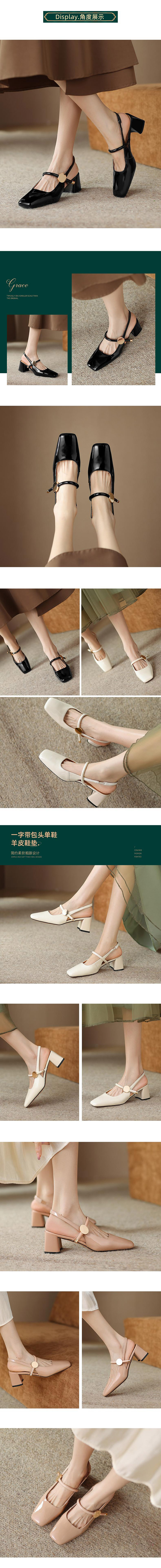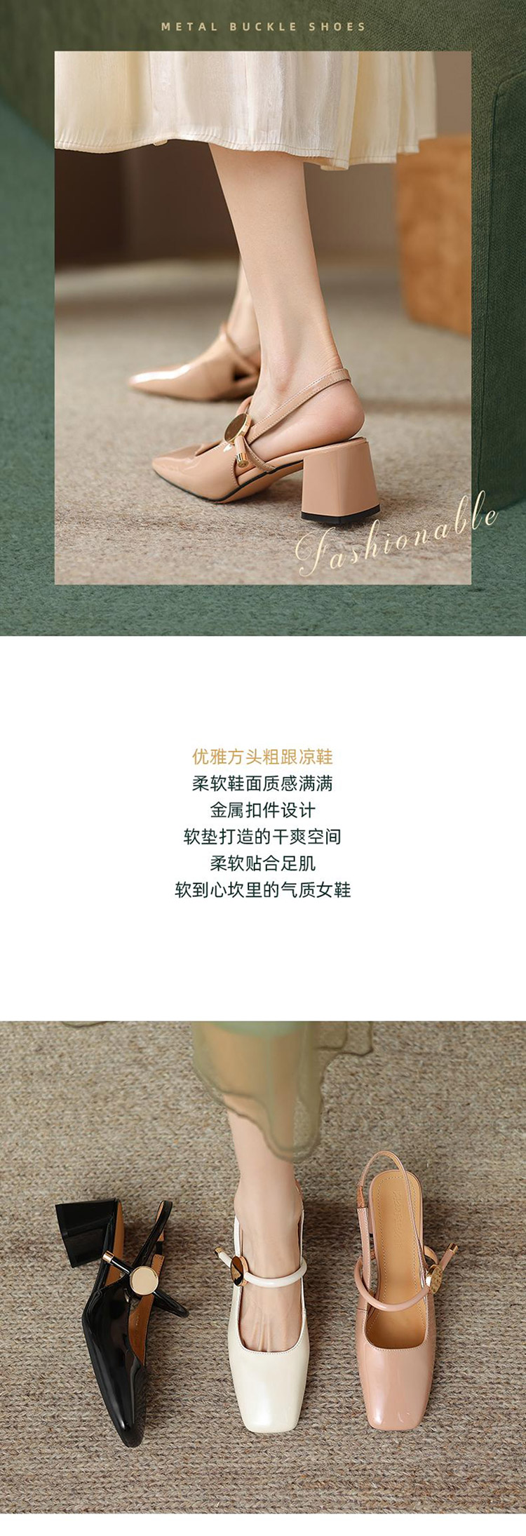 【单鞋】方头粗跟凉鞋夏时尚不累脚2024新款法式一字带5.5CM 商品图2